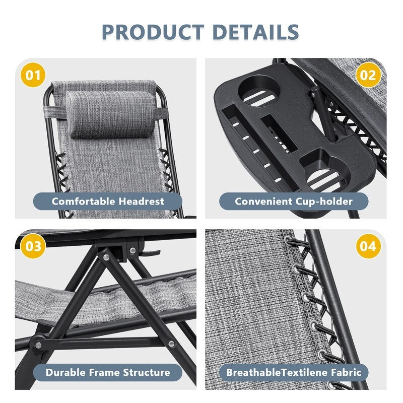 - Contenu de l'emballage : 2 chaises de patio zéro gravité