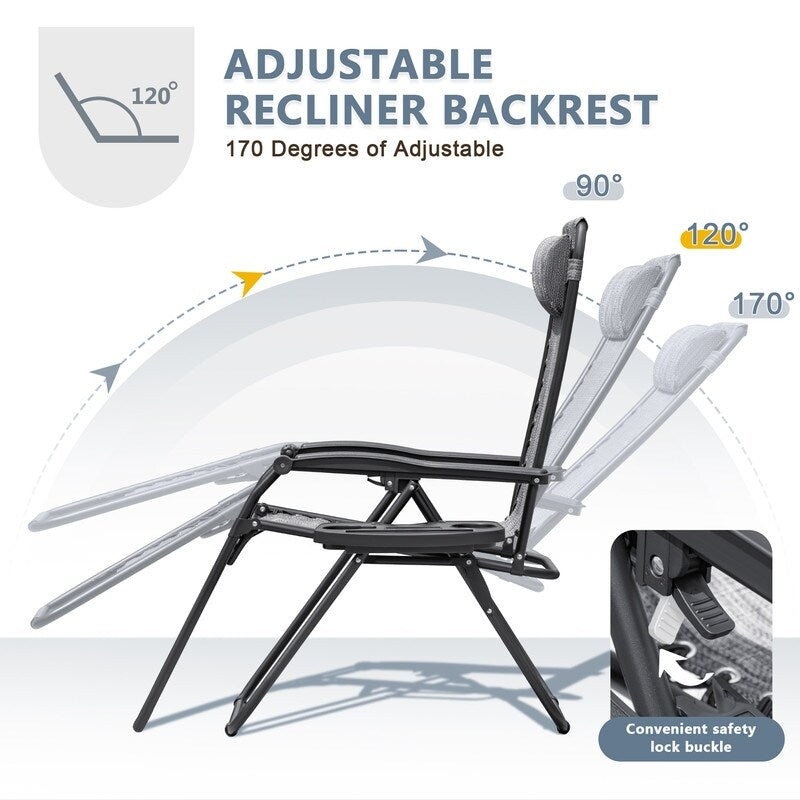 - Veuillez vous asseoir sur le fauteuil zéro gravité de terrasse et inclinez-vous à l'angle souhaité, puis verrouillez l'appareil.