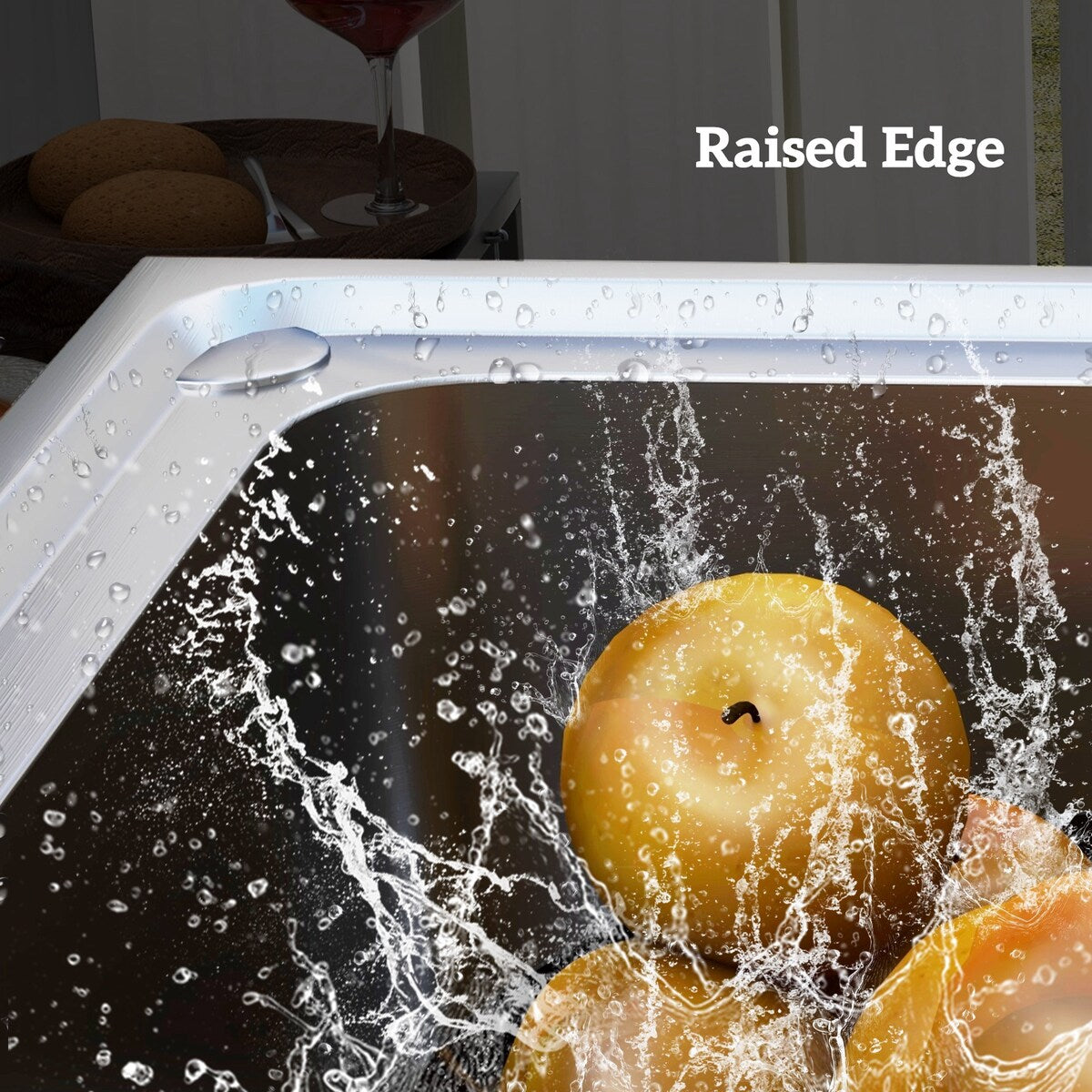 ● Le bord surélevé de l'évier empêche l'eau de s'écouler