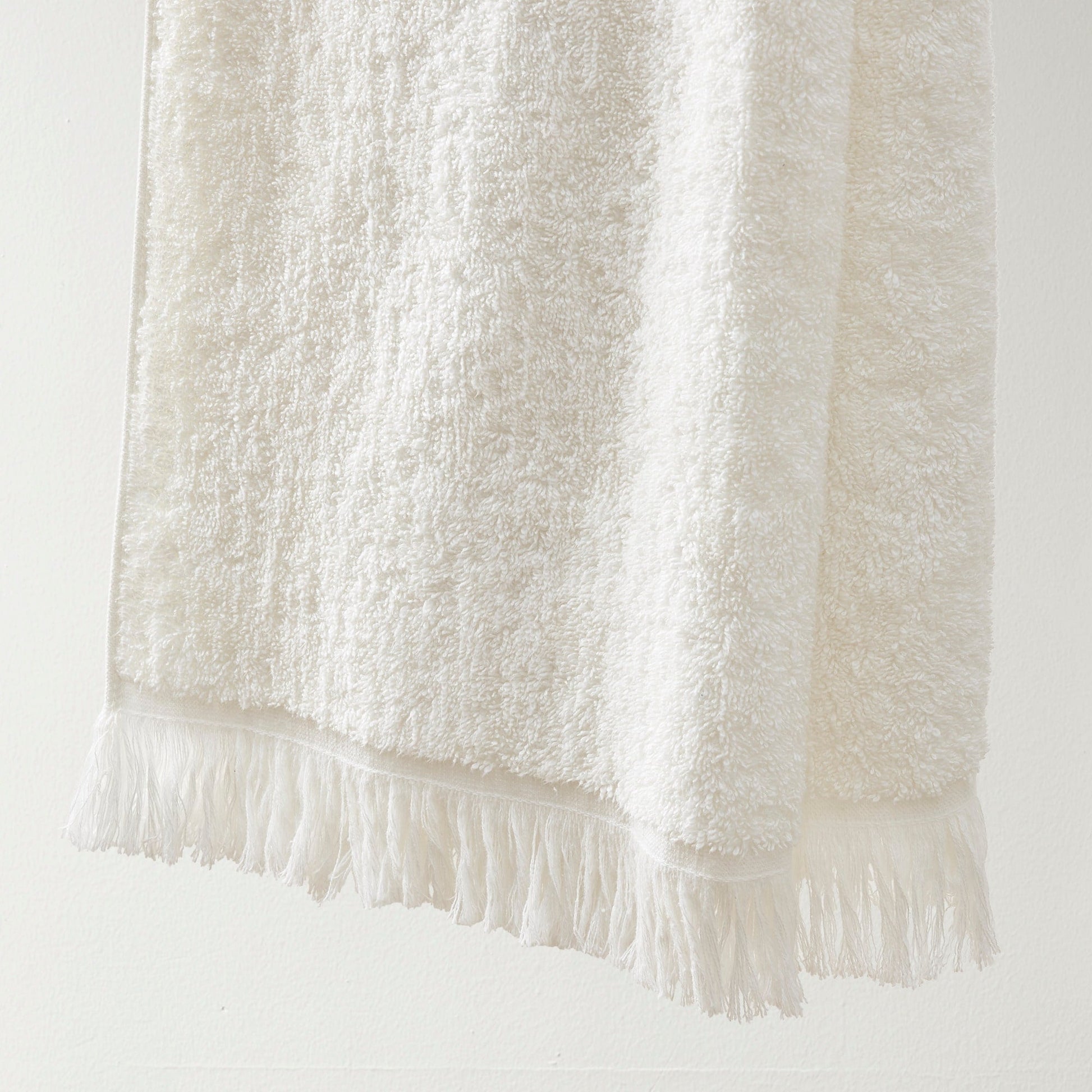 - 100% coton dobby teint en pièce, éponge - fil flammé 1 brin 630 g/m² avec franges assorties