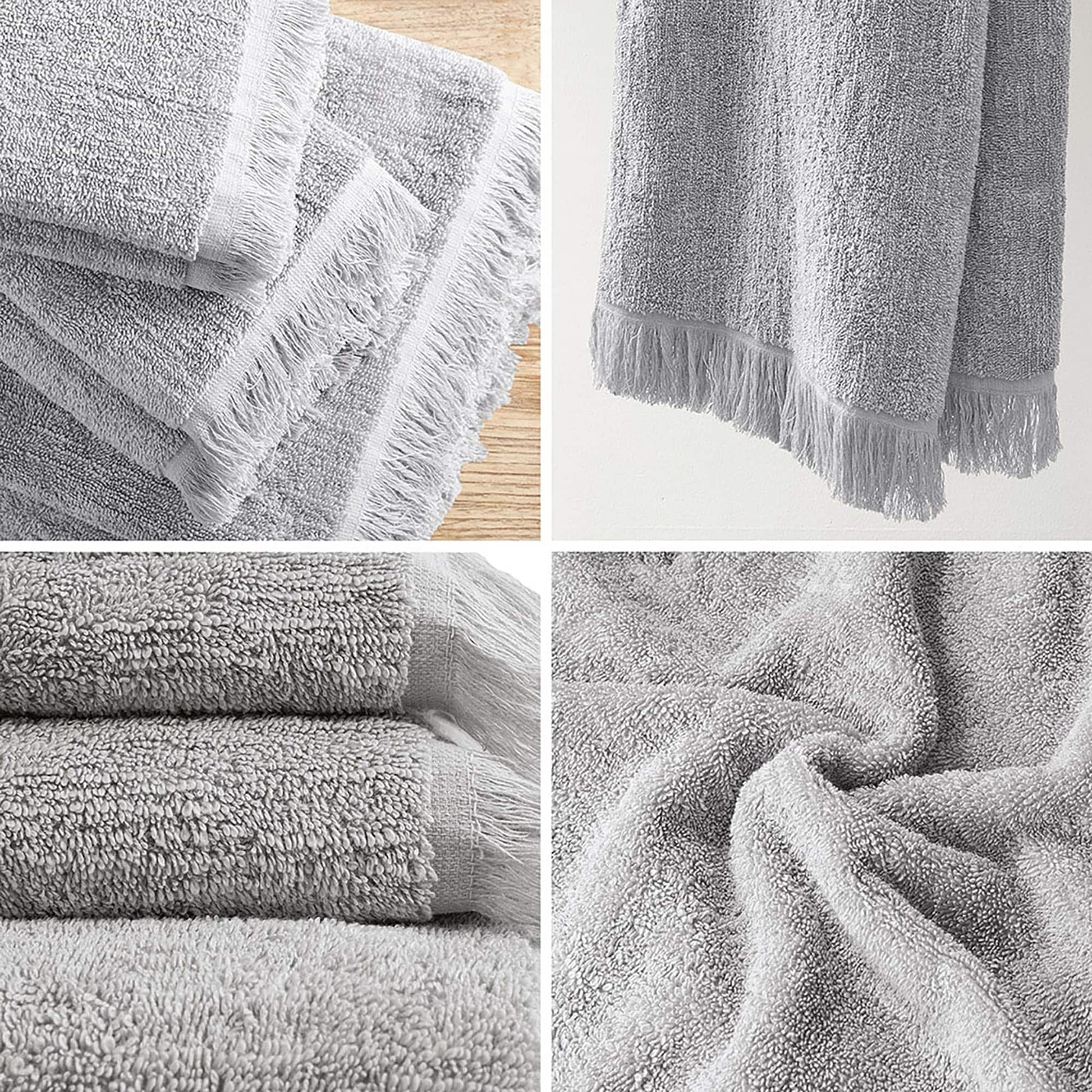- Ensemble de 6 pièces comprenant : 2 serviettes de bain (30 x 54 pouces), 2 serviettes pour les mains (16 x 28 pouces), 2 serviettes pour le lavage (13 x 13 pouces)