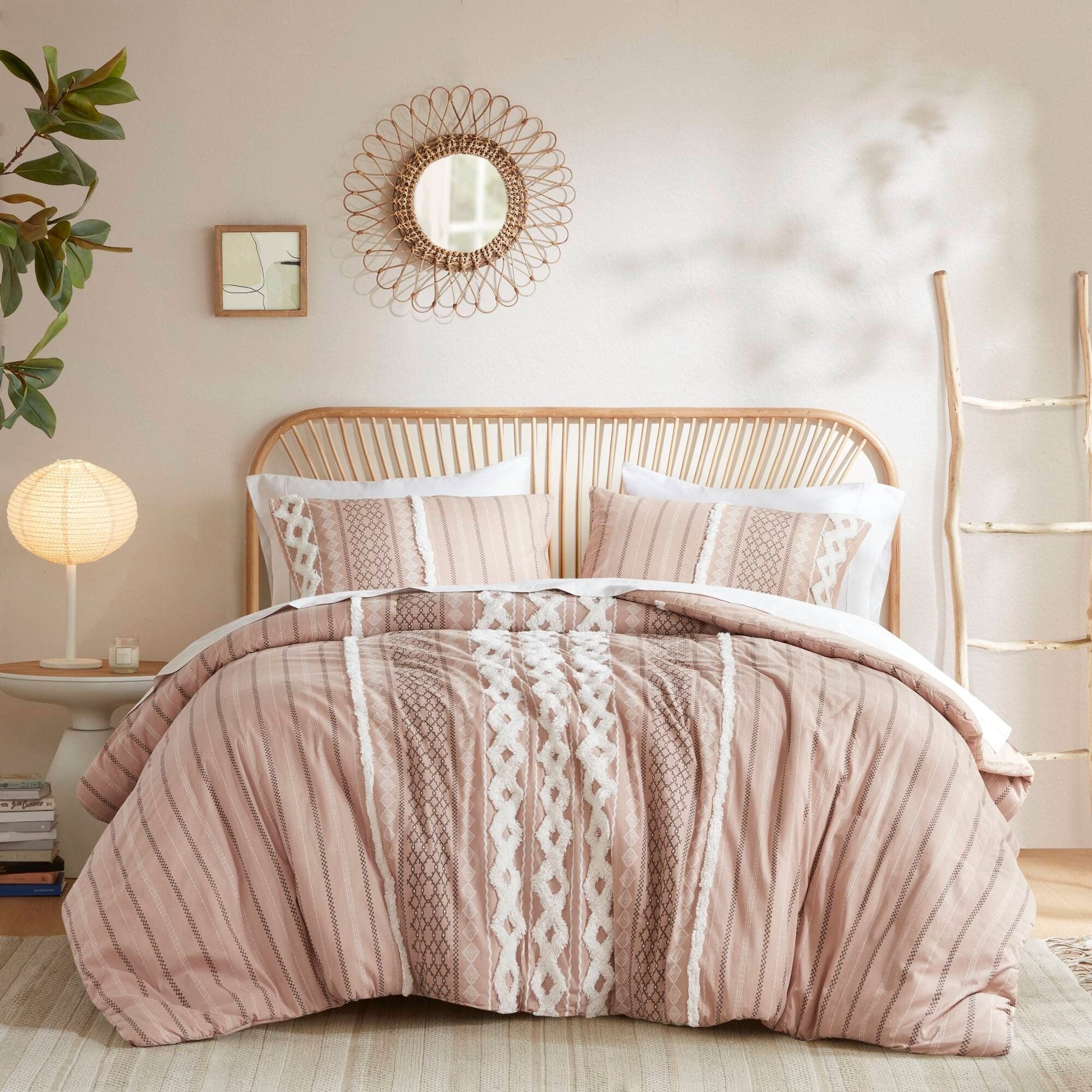 Apportez une touche de douceur et de charme vintage à votre chambre avec la mini-parure de lit en coton INK+IVY Imani. La housse de couette en coton arbore des imprimés géométriques et un effet chenille tufté qui lui confère relief et élégance, tandis que son revers uni met en valeur les motifs attrayants de la housse. Grâce à sa fermeture à boutons et à ses quatre liens intérieurs aux coins, vous pouvez insérer et maintenir votre couette en place pour un confort optimal. Deux taies d'oreiller en coton reprennent les motifs de la housse de couette, créant ainsi une harmonie parfaite. Fabriquée en 100 % coton, cette mini-parure est lavable en machine et apporte une touche de douceur et de fraîcheur à votre chambre. Certifiée OEKO-TEX, elle est garantie sans substances nocives ni produits chimiques, pour un confort et un bien-être absolus.