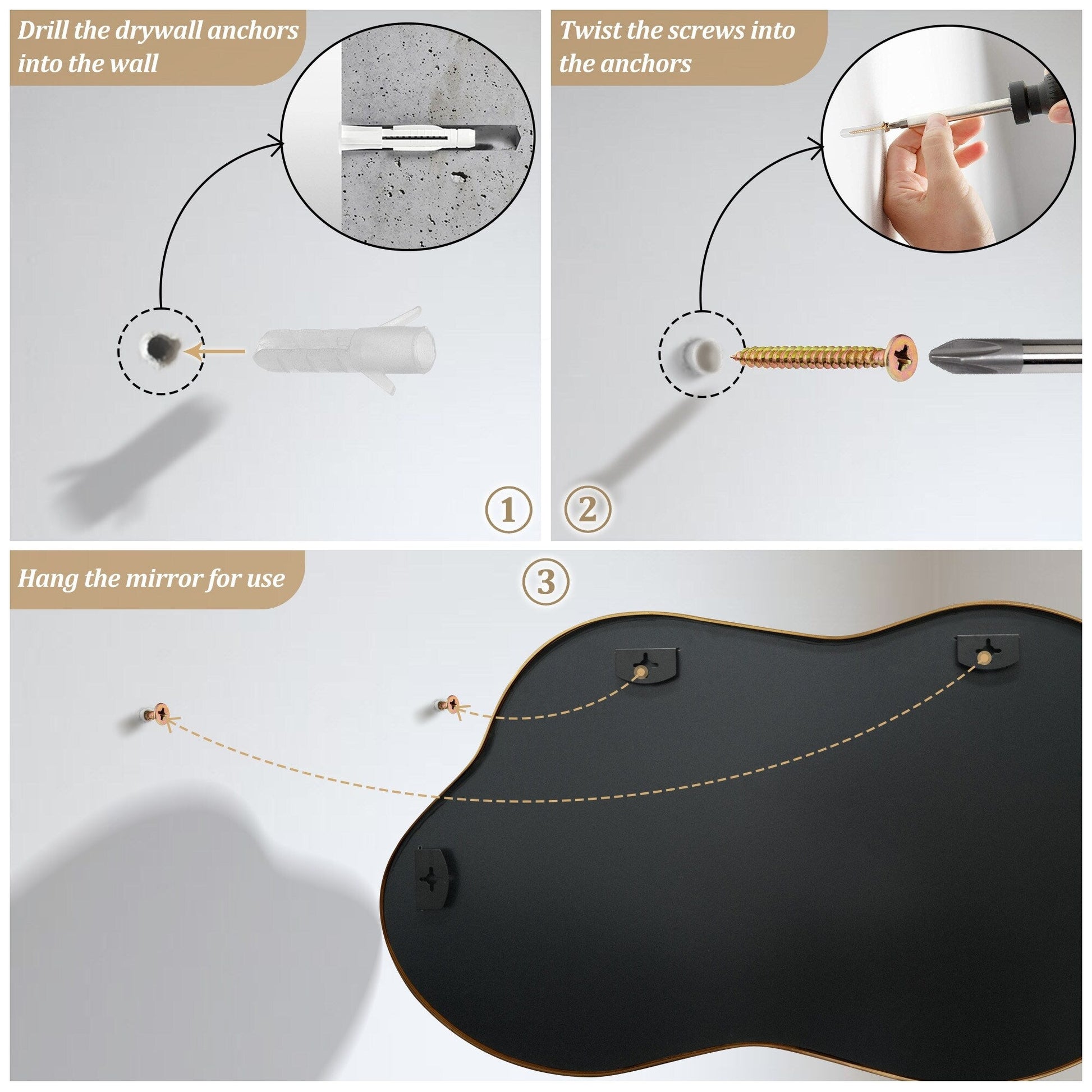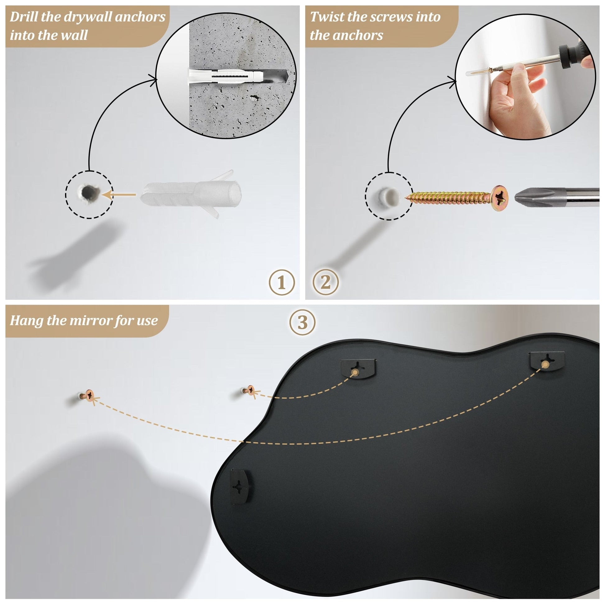 - Plusieurs options : Cet ornement mural irrégulier, à la fois fonctionnel et raffiné, est disponible en trois tailles et couleurs de cadre différentes, idéal pour sublimer l'esthétique de n'importe quel espace selon vos envies.