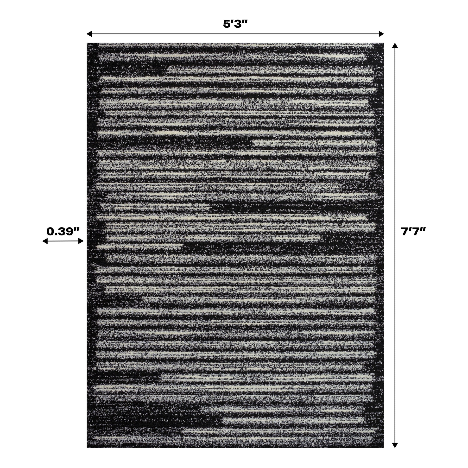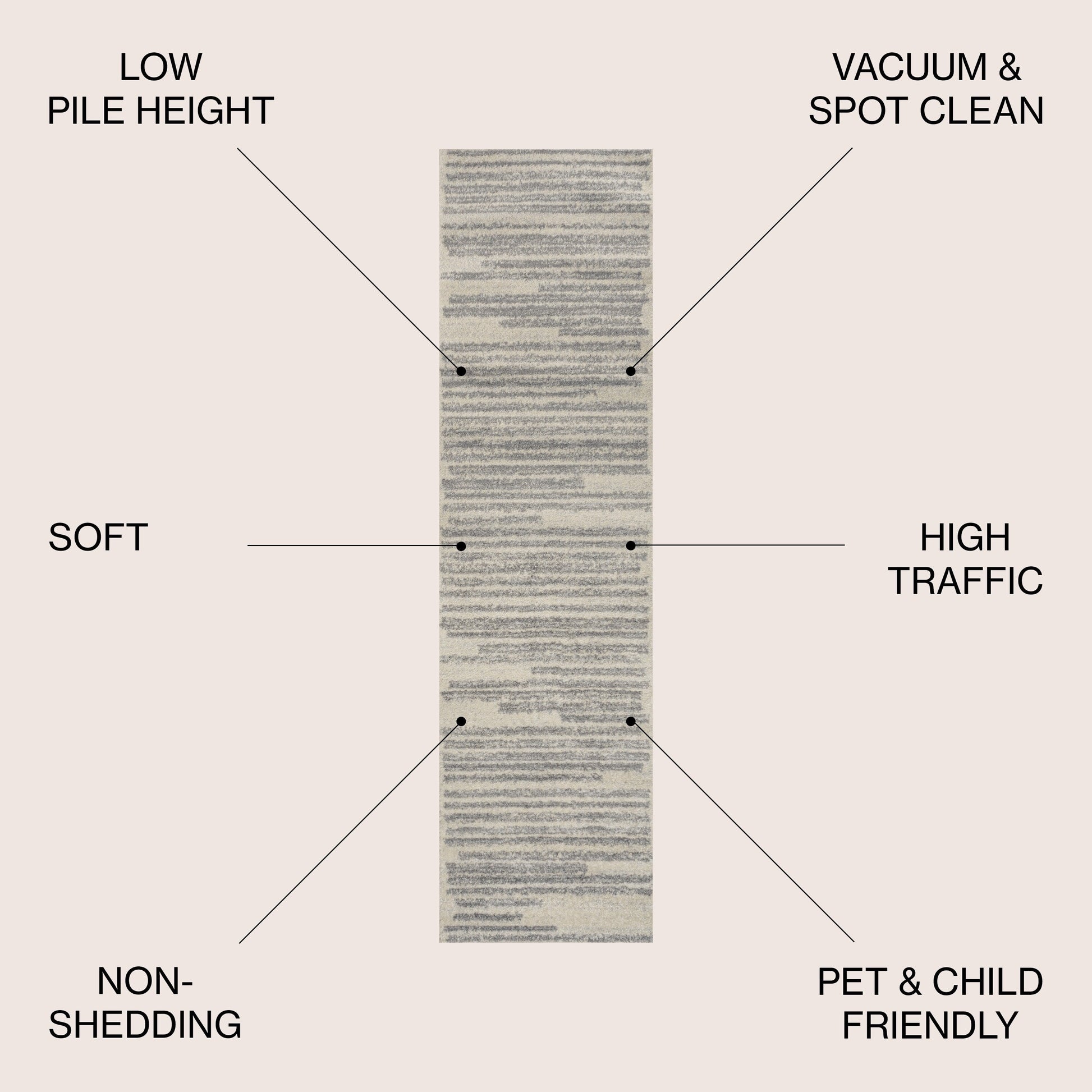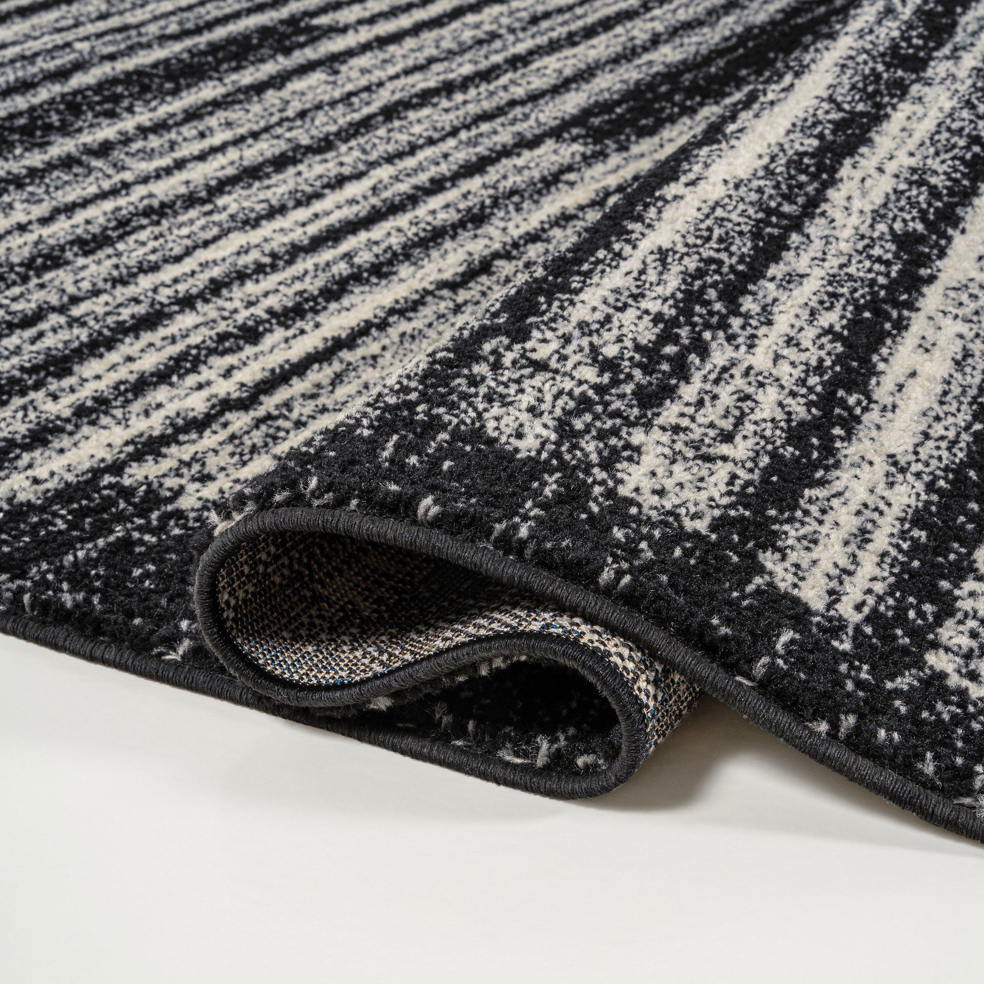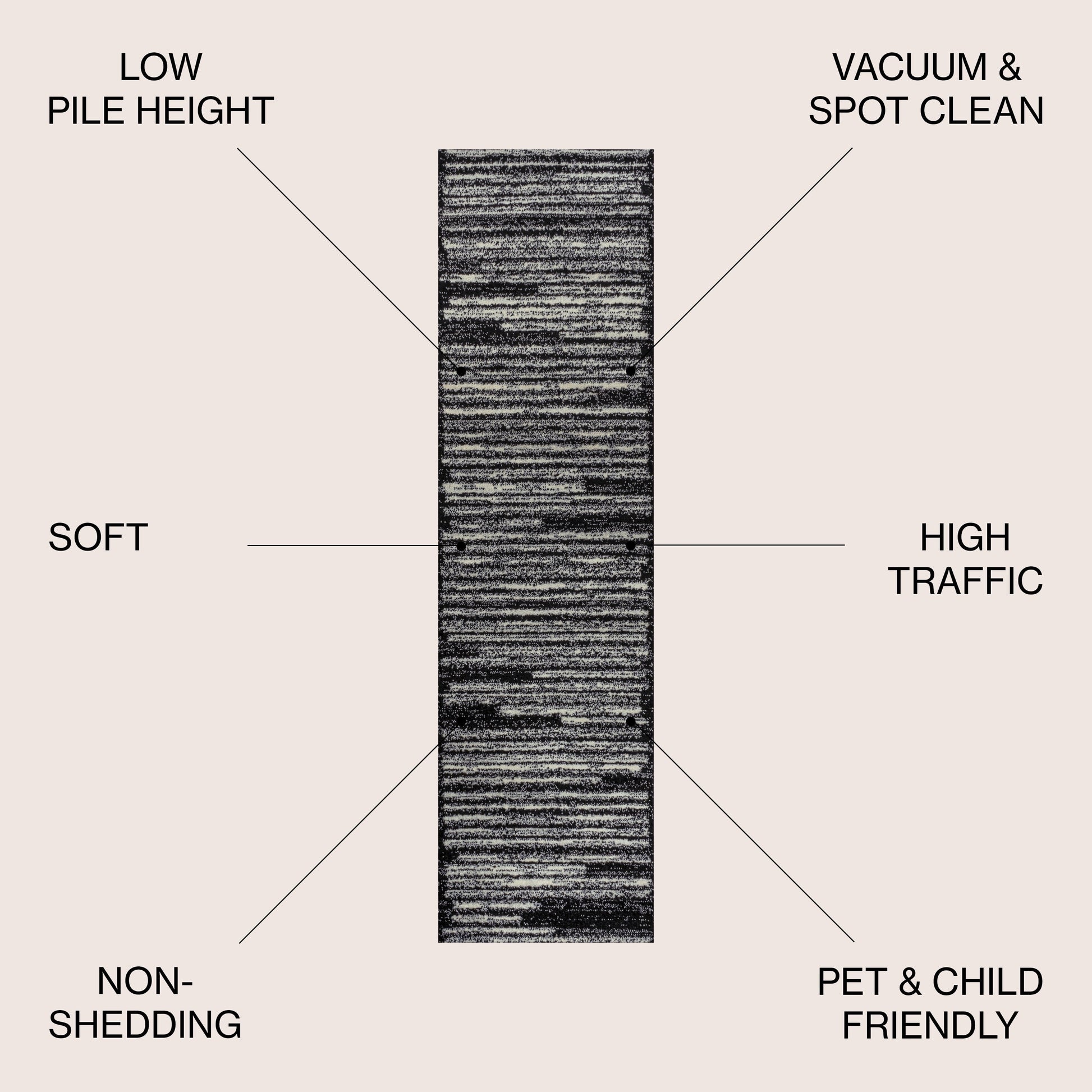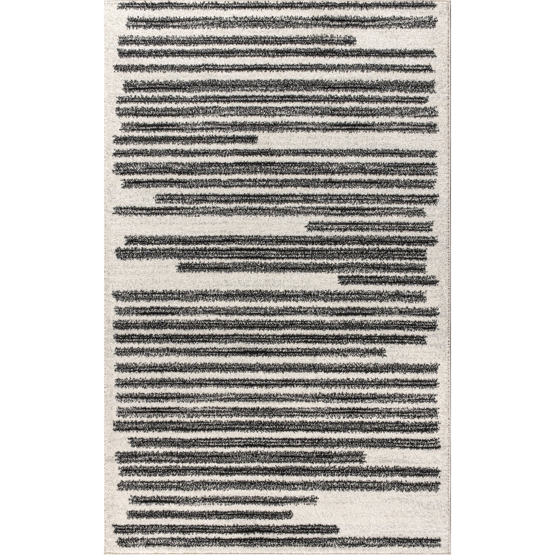 Inspiré des tapis marocains anciens, notre tapis à rayures modernes est tissé mécaniquement et possède un velours court. Les rayures décalées et le motif à barres sont tissés en noir sur un fond ivoire ; le mélange des fils évoque les tapis traditionnels tissés à la main. Apportez une touche vintage à votre intérieur avec ce tapis facile d'entretien.