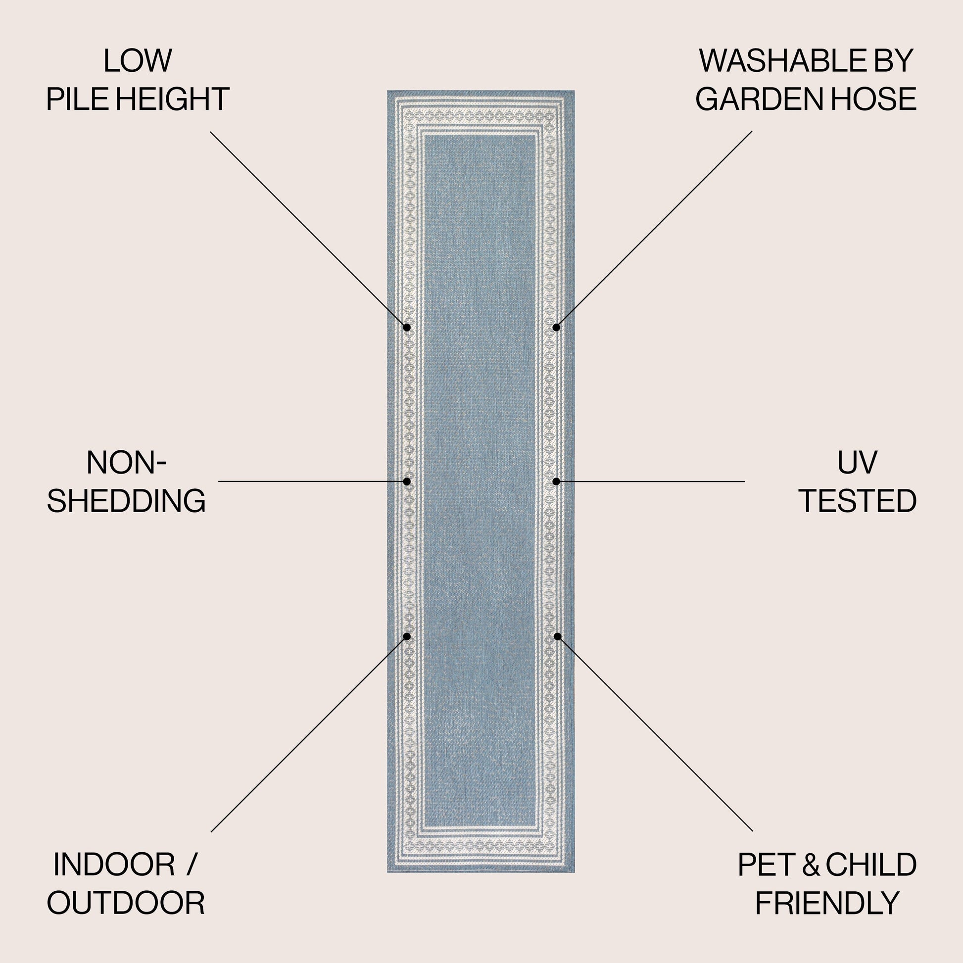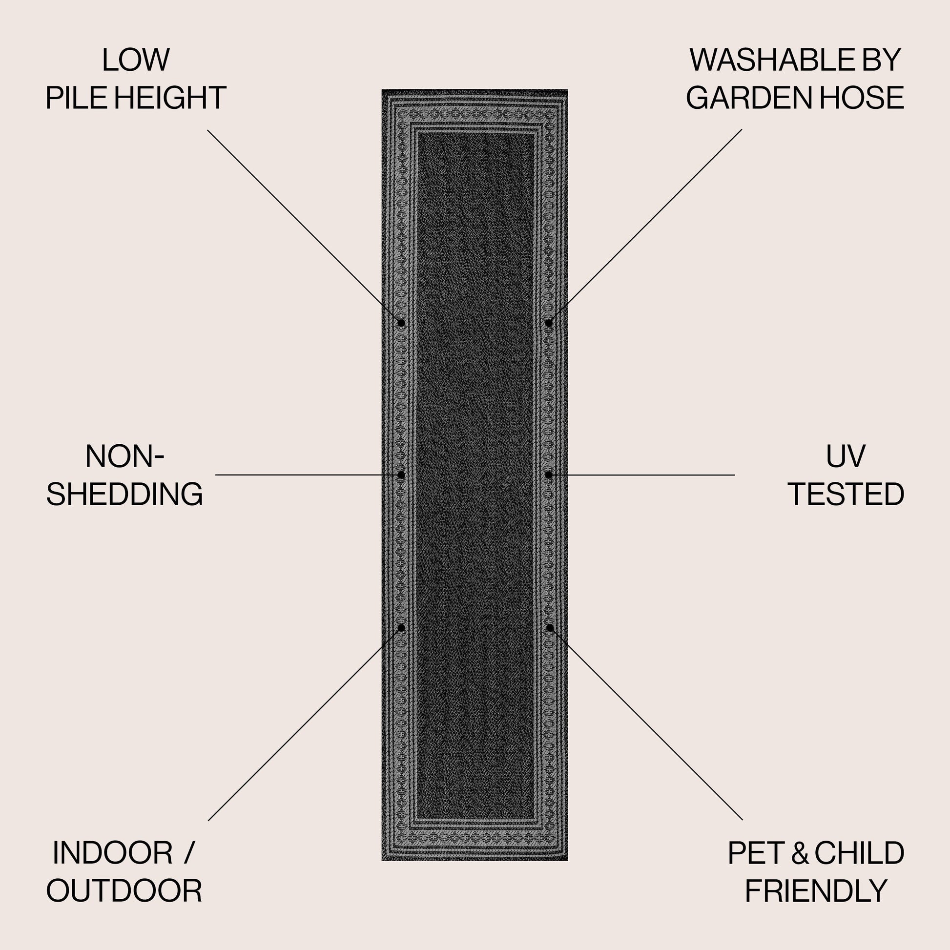 Ce tapis uni unique, orné d'une bordure géométrique en losanges, allie classicisme et modernité. Son design bicolore est tissé dans un tissu résistant à poils courts, idéal pour l'intérieur comme pour l'extérieur. Ce tapis, adapté aux animaux de compagnie, apportera une touche d'originalité à votre salon, salle à manger, chambre ou véranda.