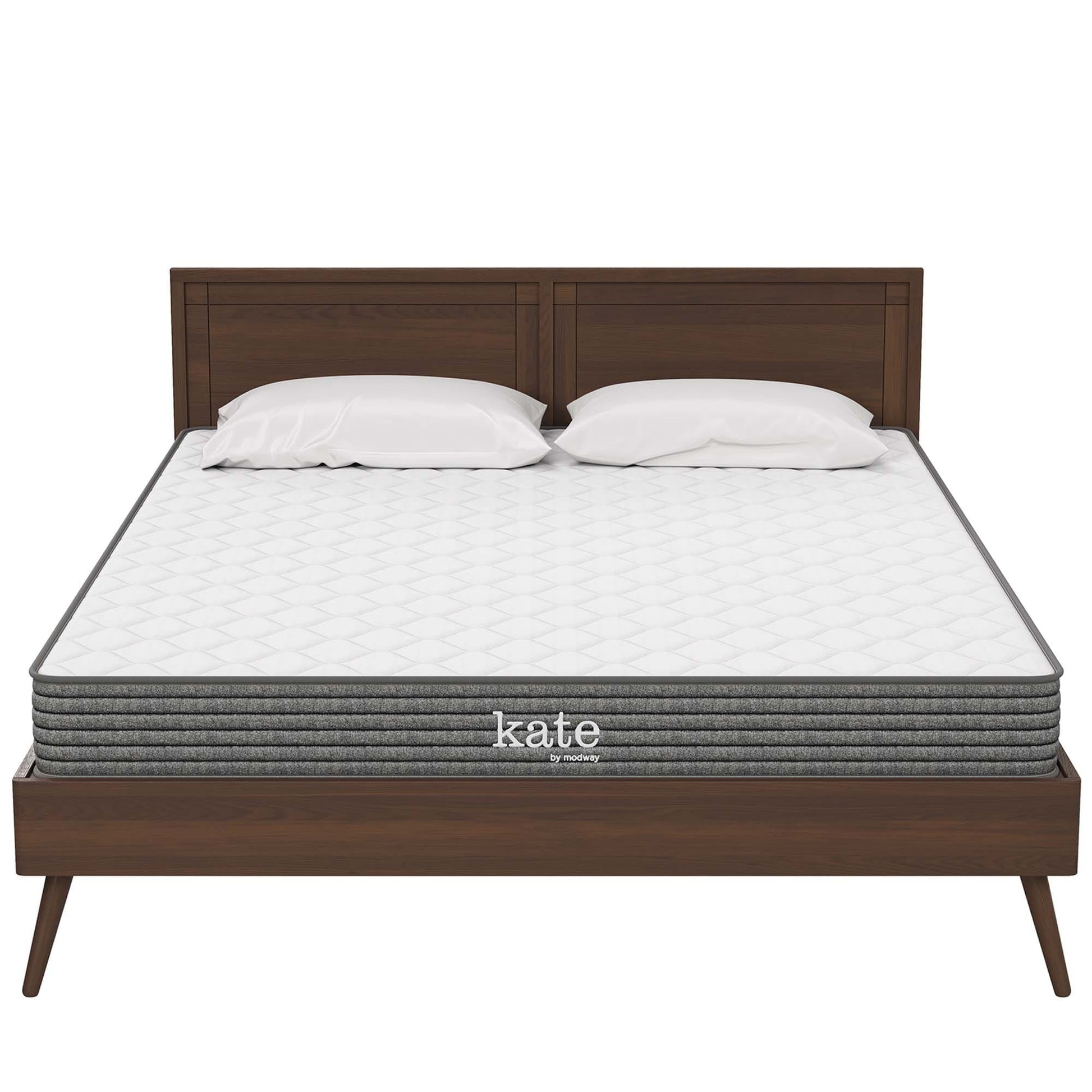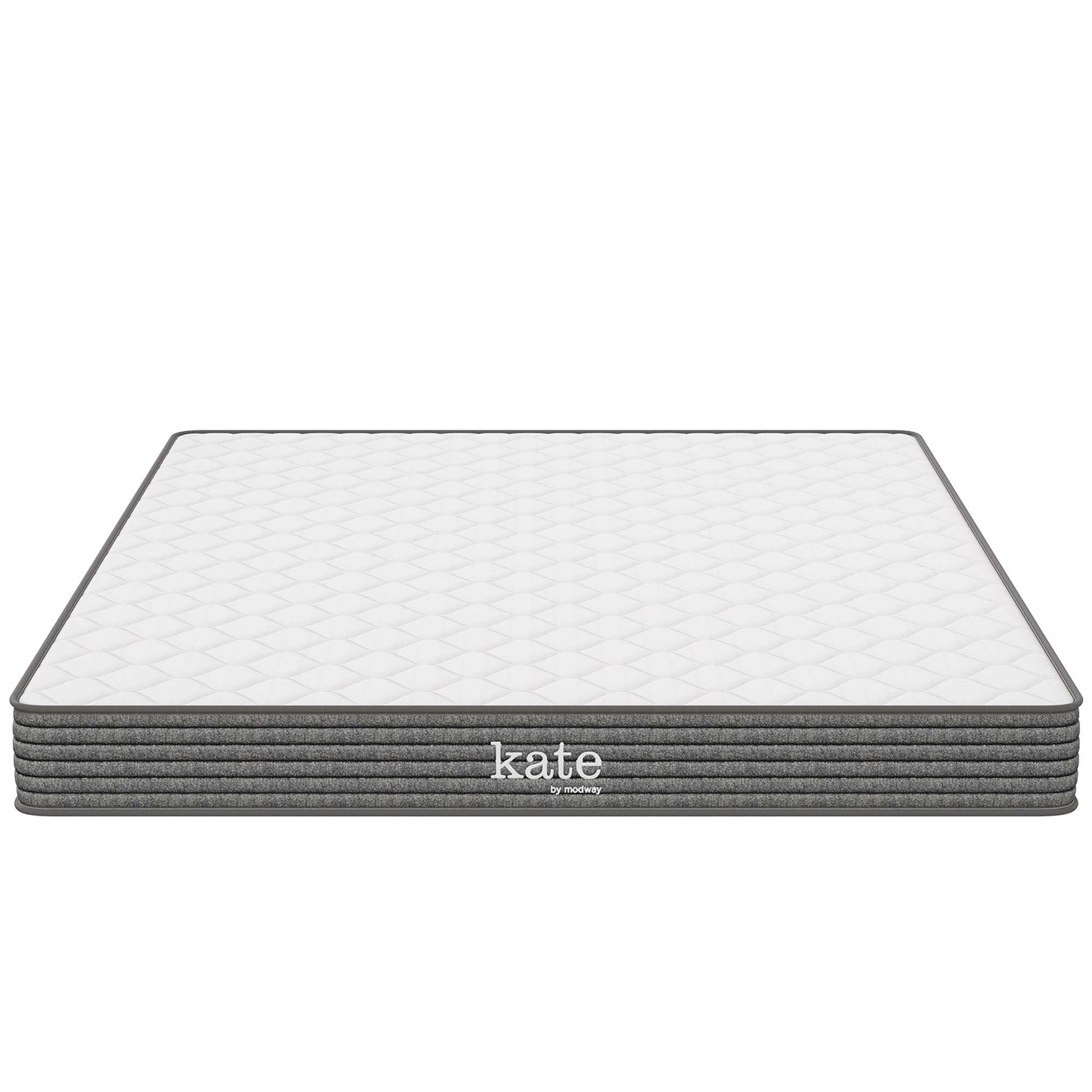 Profitez d'une nuit de sommeil réparatrice avec le matelas Kate, conçu pour votre confort. Doté d'un système de ressorts alliant le soutien classique des ressorts en acier à une luxueuse couche de mousse moelleuse, ce matelas offre un soutien optimal et un confort exceptionnel. Pour un confort accru, Kate est équipé de deux doublures en feutre, placées respectivement au-dessus et en dessous des ressorts, afin de répartir uniformément le poids et de soulager les points de pression sur les hanches, le dos et les épaules. Recouvert d'une barrière ignifugée en tissu gris, conforme aux normes de sécurité, le matelas Kate est idéal pour toutes les chambres. Livré compressé et roulé dans un carton facile à transporter pour une installation simplifiée, il faut généralement compter 2 à 3 heures pour que le matelas reprenne sa forme initiale. Ce matelas est garanti 10 ans. Sommier non inclus.