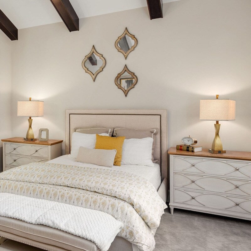Avec son pied de lampe en spirale au design architectural et ses abat-jour cubiques, cet ensemble de lampes est idéal pour tous les espaces de vie. Le pied carré, équipé d'un port USB et d'un port USB-C, le rend également parfait pour un bureau à domicile. Sa finition vieillie et ses accessoires contrastés lui confèrent un style champêtre classique, apportant une touche décontractée et aérée à votre intérieur.