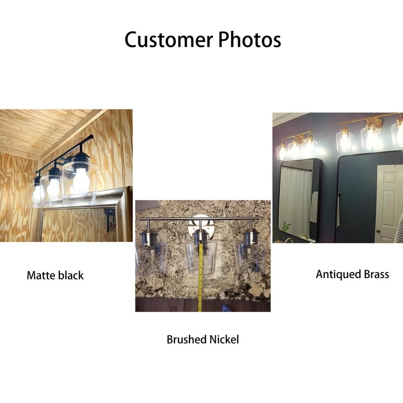 - Applique de salle de bain avec trois abat-jour en verre soufflé transparent en forme de gobelet