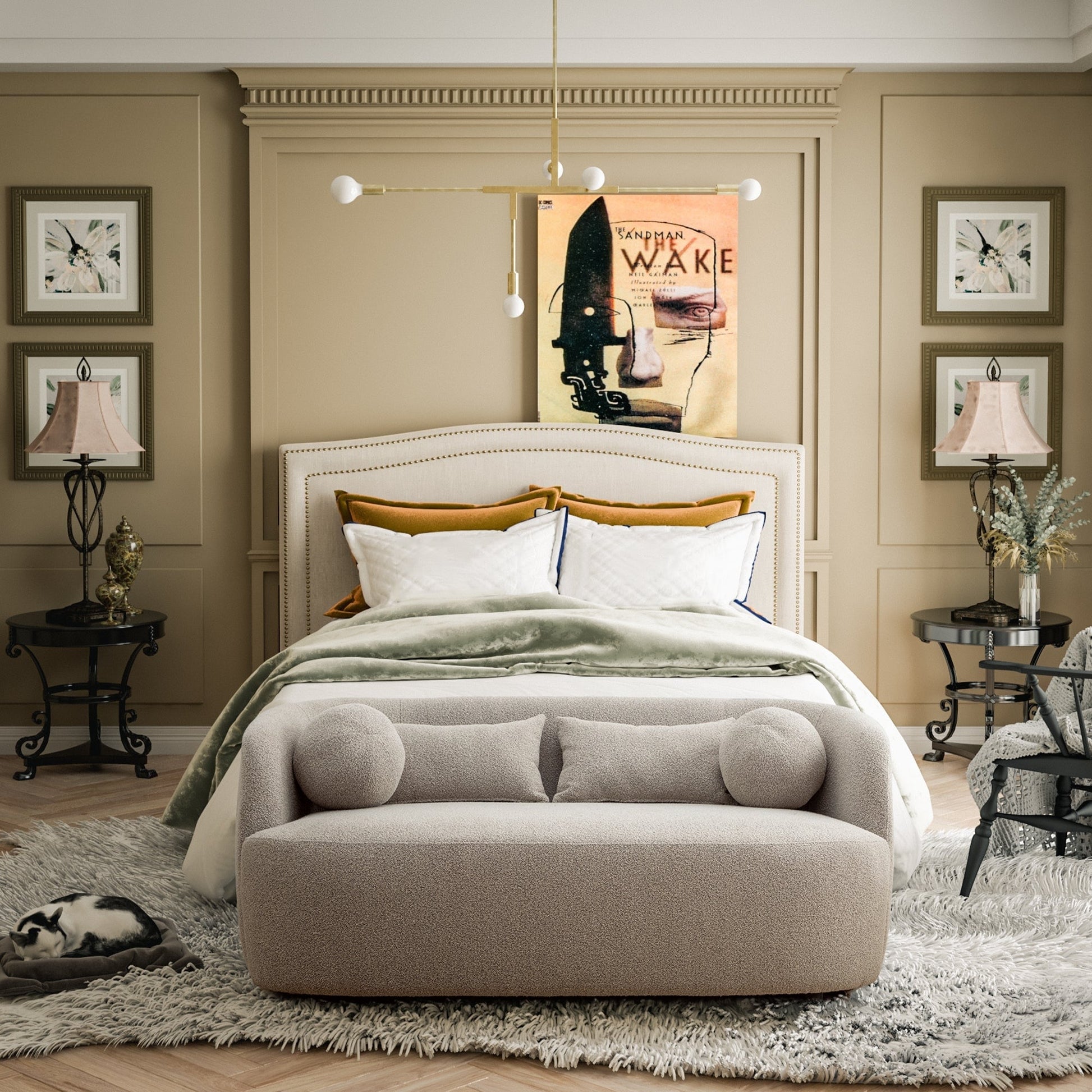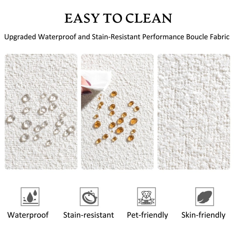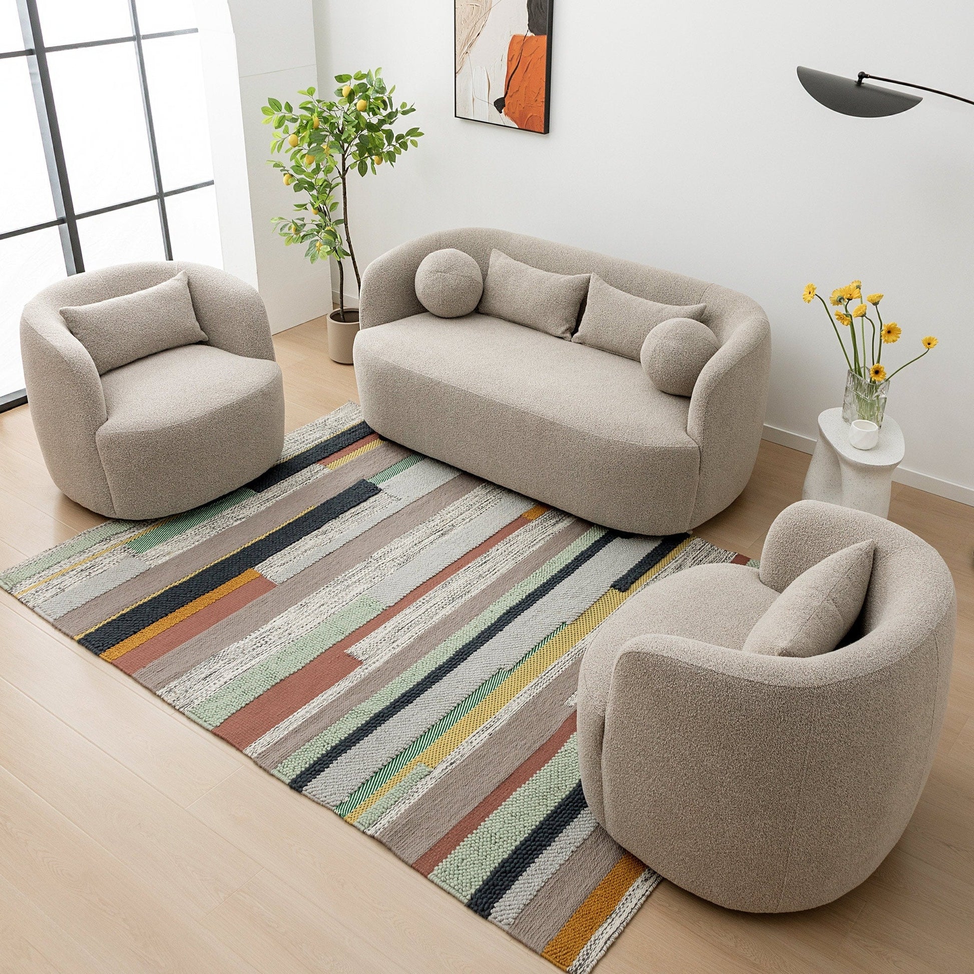 Ce canapé causeuse est un meuble magnifique inspiré du design moderne du Moyen Âge. Il est fourni avec quatre coussins, deux coussins carrés et deux coussins sphériques, offrant un confort et un soutien exceptionnels pour le dos et la nuque. Grâce à ses dimensions compactes, ce canapé bouclé est idéal pour les petits espaces et peut accueillir confortablement jusqu'à deux personnes. Sa structure robuste et naturelle est recouverte d'un rembourrage en mousse et d'un tissu bouclé résistant, garantissant confort et durabilité.