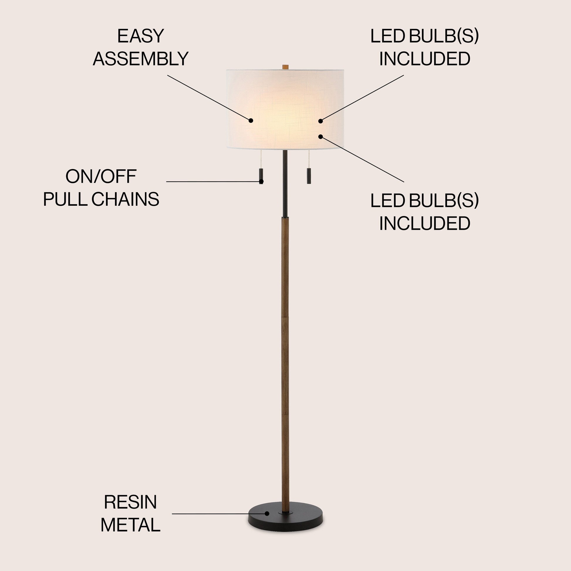 Lampe de sol à LED Koda 61 rustique en fer avec chandelier et chaînes de traction, finition bois marron/noir par JONATHAN Y
