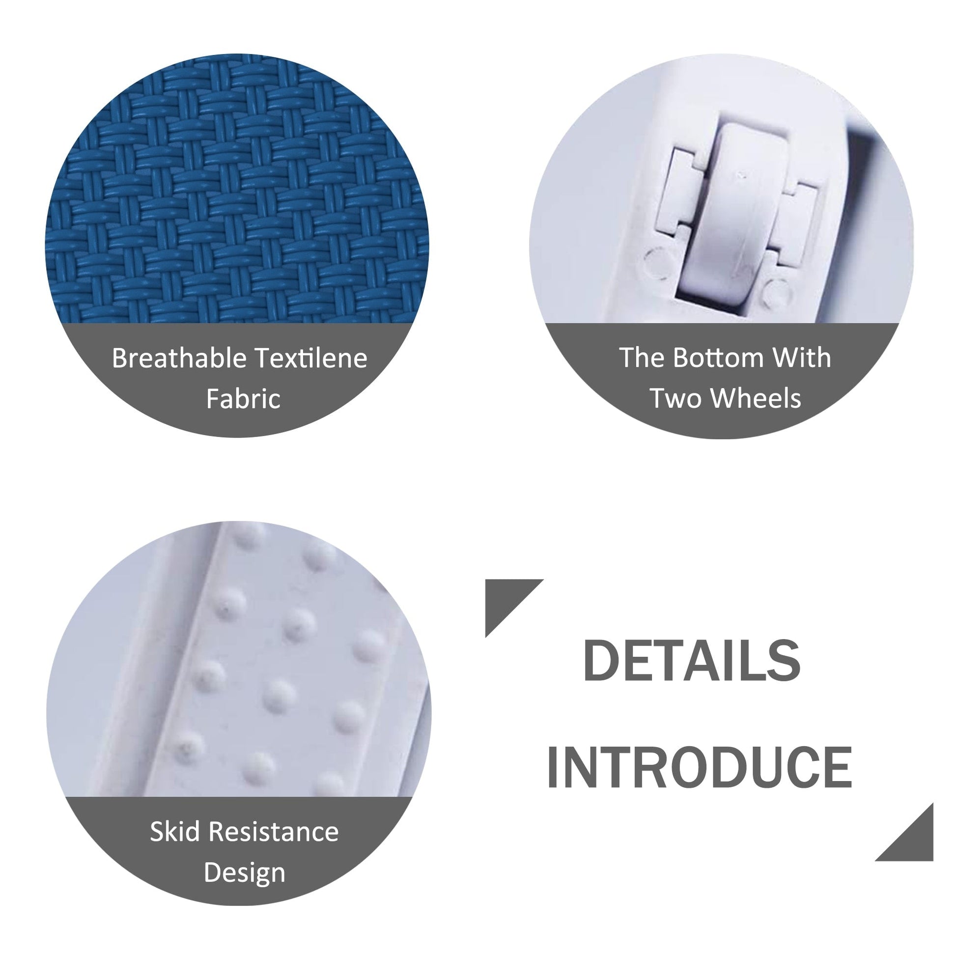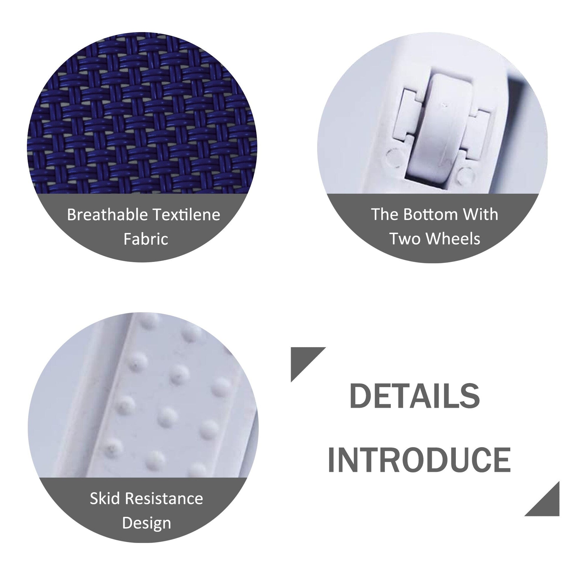 - DURABLE : Fabriqué à partir d'un mélange de maille et de tissu polyester sur un cadre en aluminium pour plus de durabilité et de solidité. Les pieds sont en résine polypropylène robuste de haute qualité, tandis que le cadre est en aluminium. Résistant aux UV et à l'eau, il ne rouille pas et ne se détériore pas.