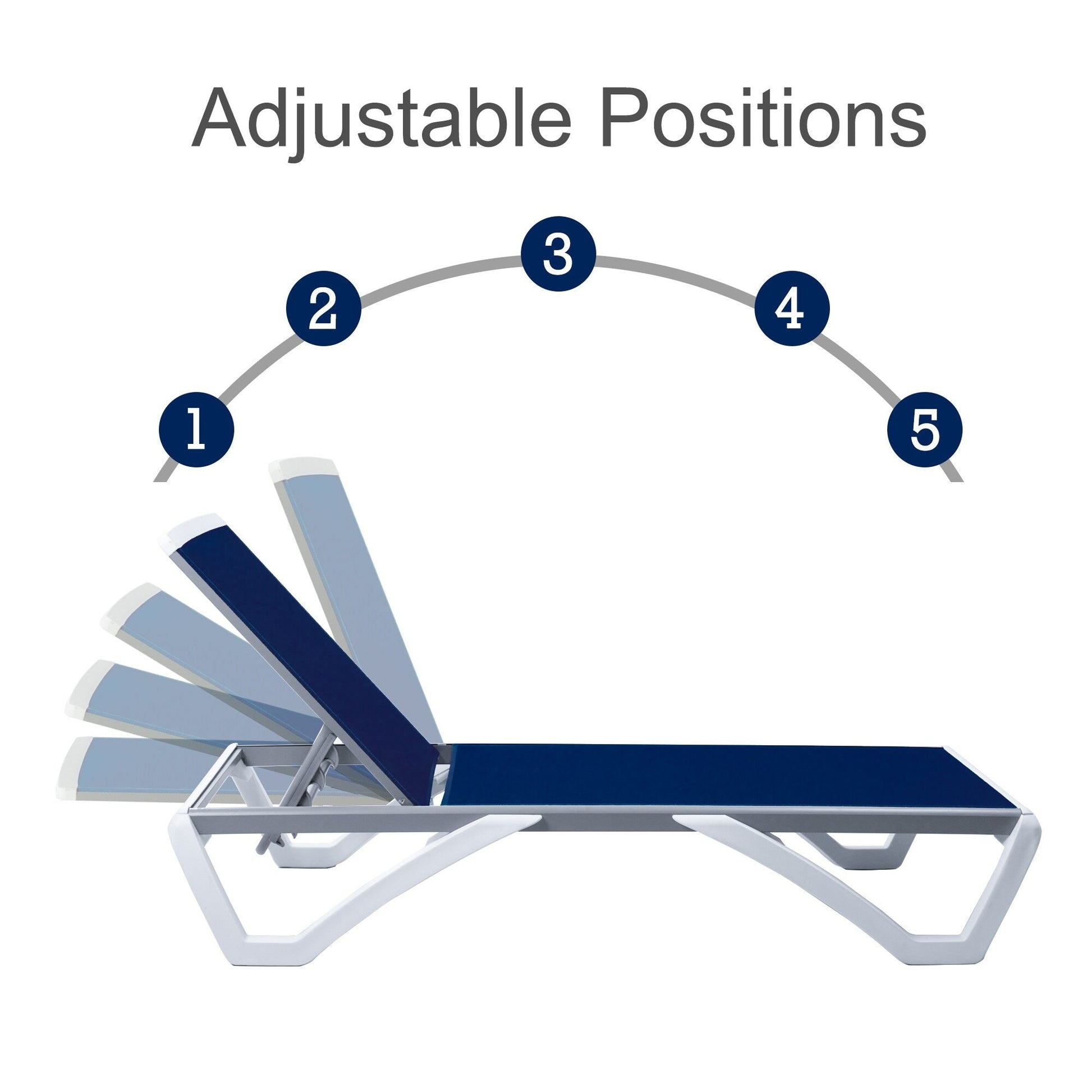 - CONFORTABLE : La toile s'adapte à votre corps et ses alvéoles laissent respirer les fortes chaleurs. Le dossier réglable vous permet de choisir parmi cinq niveaux de confort personnalisés. Vous pouvez vous allonger sur le ventre pour profiter du soleil.