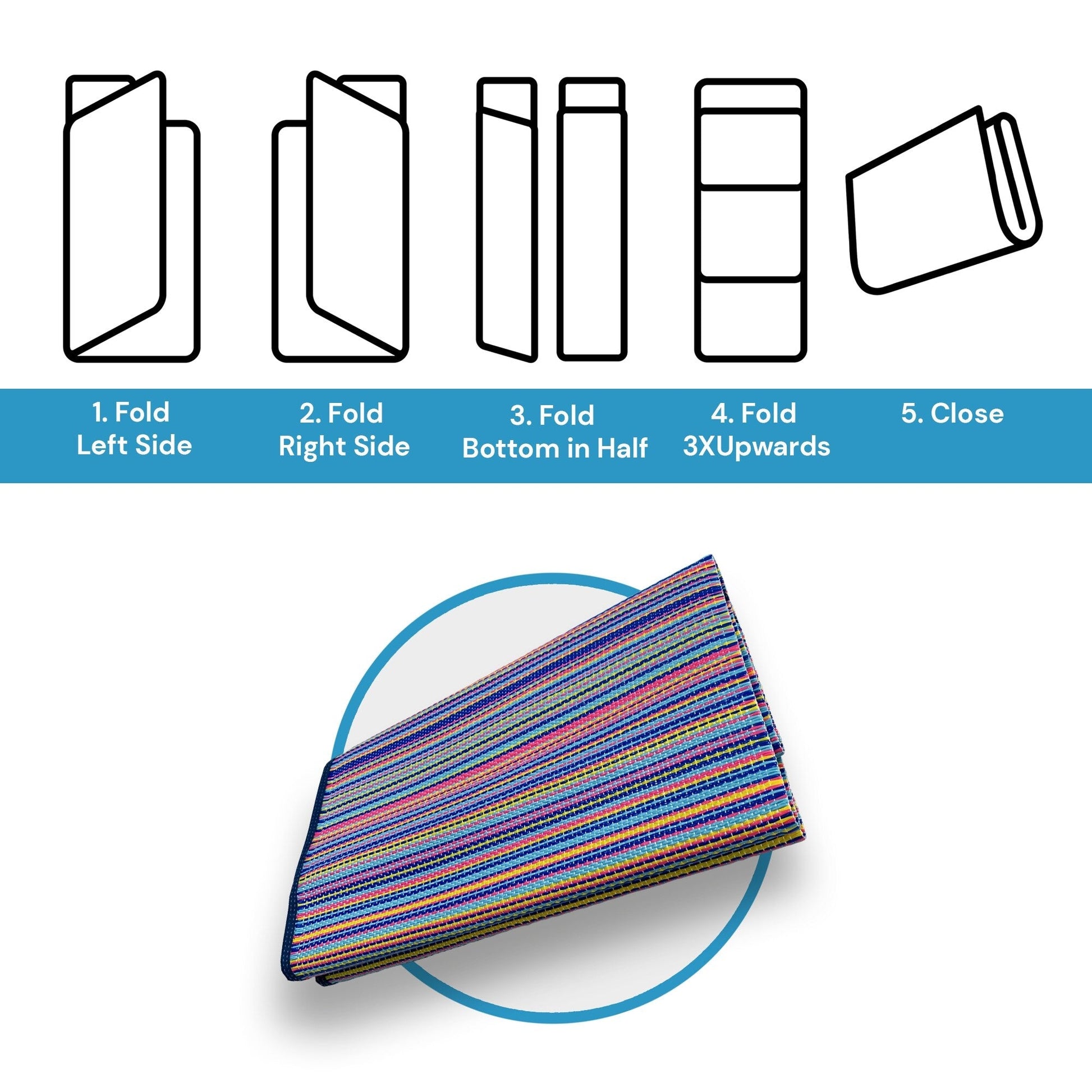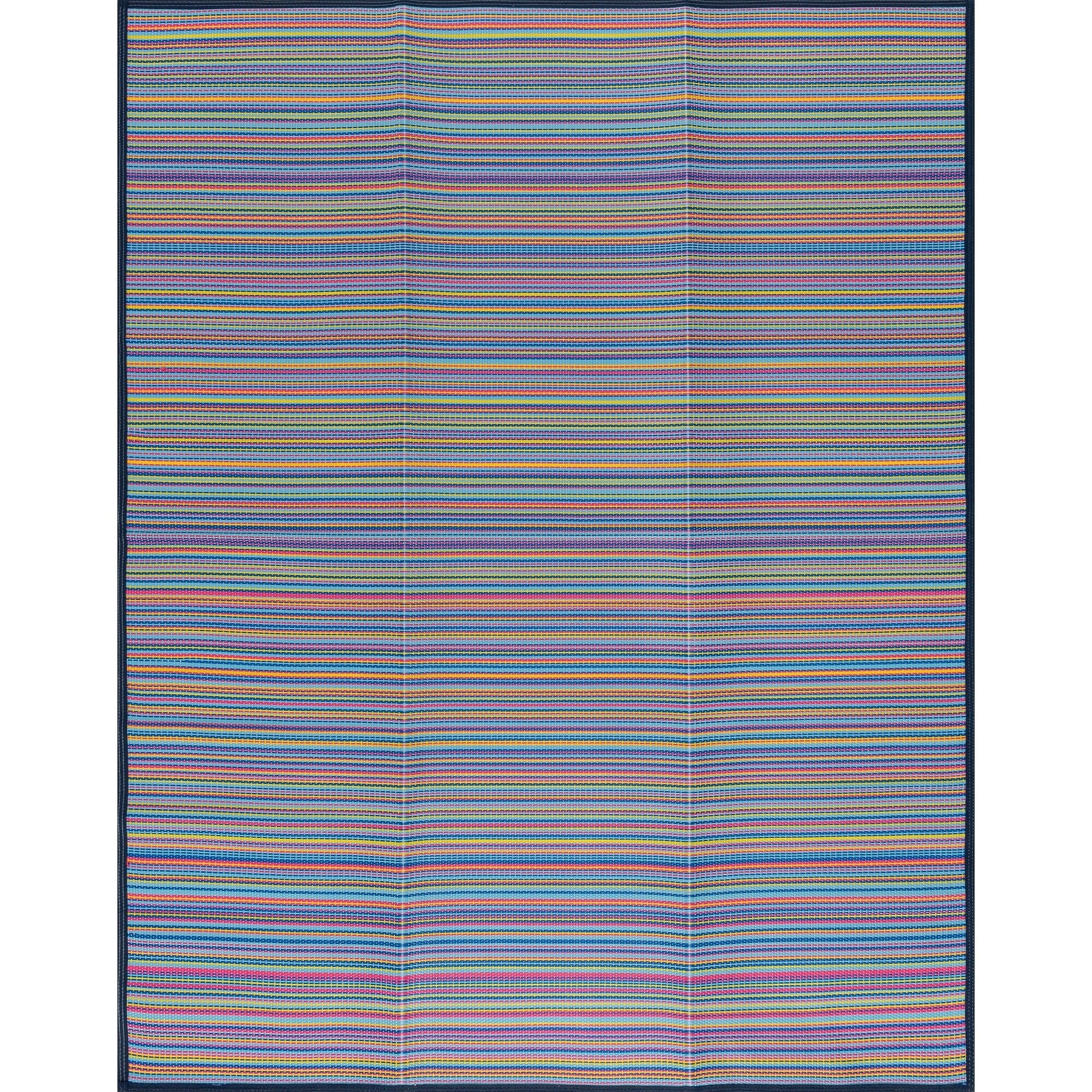 Ce tapis d'extérieur pliable, imperméable et multi-usage est idéal pour toutes vos aventures. Portable et réversible, il est parfait pour la salle de jeux, le sport, la piscine, le camping ou les pique-niques. Son motif à rayures colorées lui confère un charme unique. Naturellement résistant aux taches et sans traitement supplémentaire, il convient aux enfants et aux animaux. Aspirez-le ou secouez-le pour enlever les débris. Nettoyez les taches localement ou lavez-le à l'eau ; rincez-le au jet d'eau. Laissez-le sécher complètement.