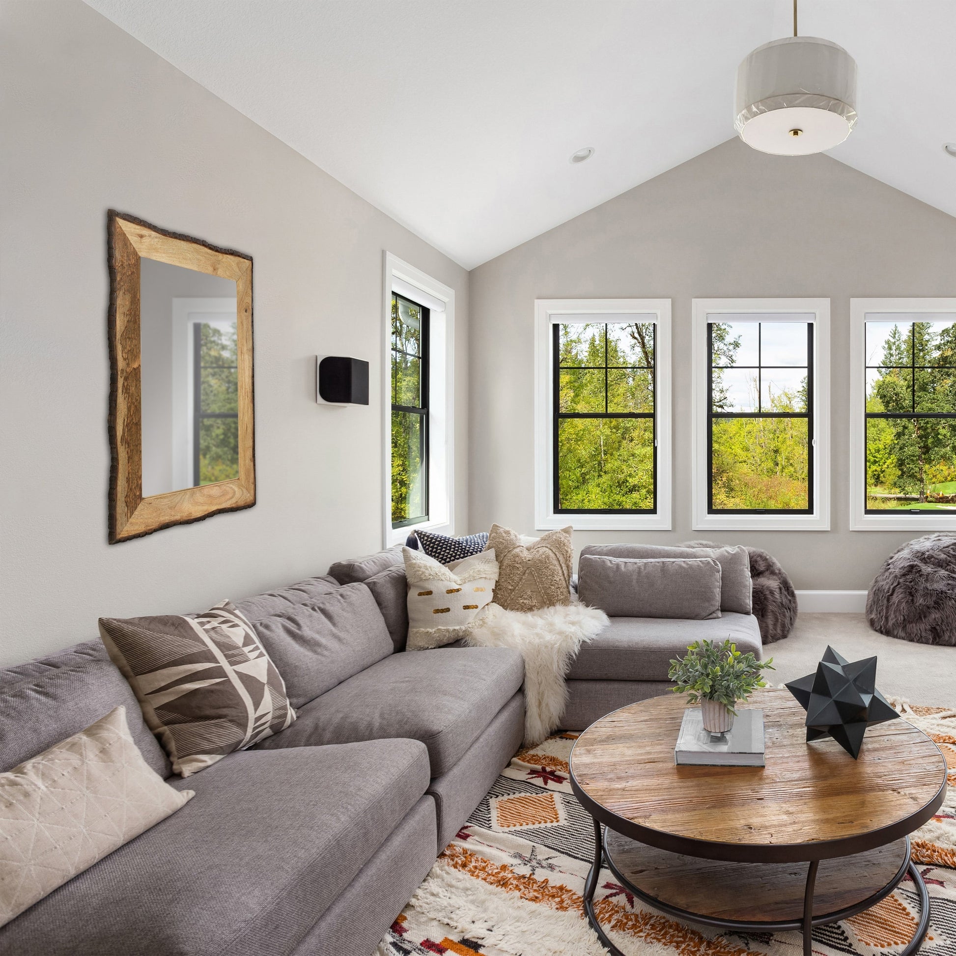 - Doté d'un cadre en bois bicolore et d'un verre réfléchissant