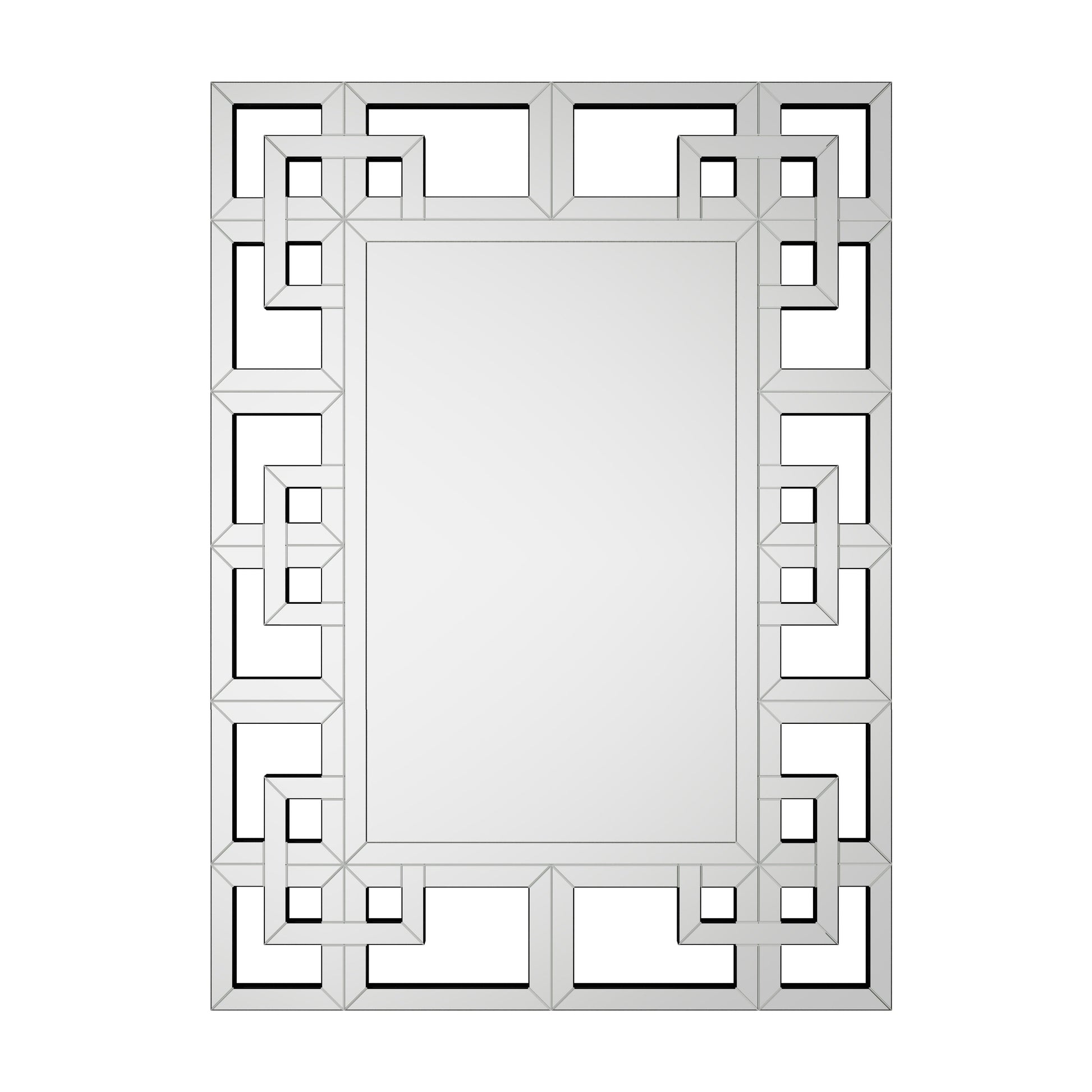 Ce miroir contemporain éblouissant sublimera n'importe quel mur et attirera tous les regards. Ses détails géométriques ajourés et ses finitions argentées lisses lui confèrent un style unique. Apportez une touche d'élégance et de raffinement à votre intérieur avec ce grand miroir mural. Dans votre salon, il impressionnera vos invités et donnera du caractère à votre pièce. Parfait pour une décoration contemporaine et glamour, ce miroir rectangulaire est encadré d'une bordure en treillis composée de segments de miroir biseautés à la main. Il sera du plus bel effet au-dessus de votre meuble-lavabo ou de votre console d'entrée. Vous pouvez l'installer à l'horizontale ou à la verticale.