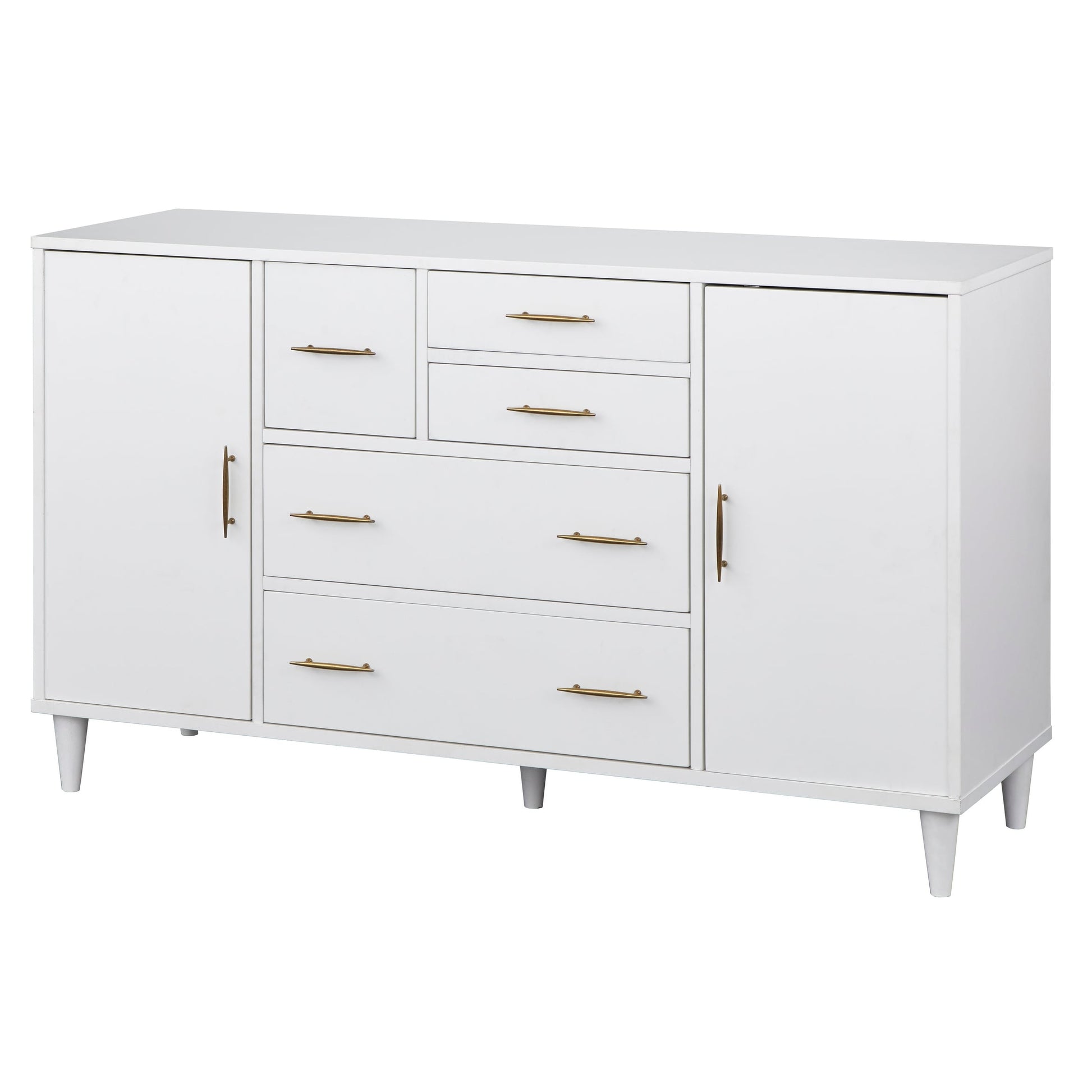 Doté d'un charmant design moderne du milieu du siècle alliant style et rangement, ce charmant buffet répondra à tous vos besoins en matière de salle à manger. Une série de tiroirs et d'armoires de différentes tailles offrent des options d'organisation polyvalentes pour les couverts, le linge de maison, les bols de service et autres articles divers. Les ouvertures d'aération permettent également de gérer les câbles des appareils électroniques.