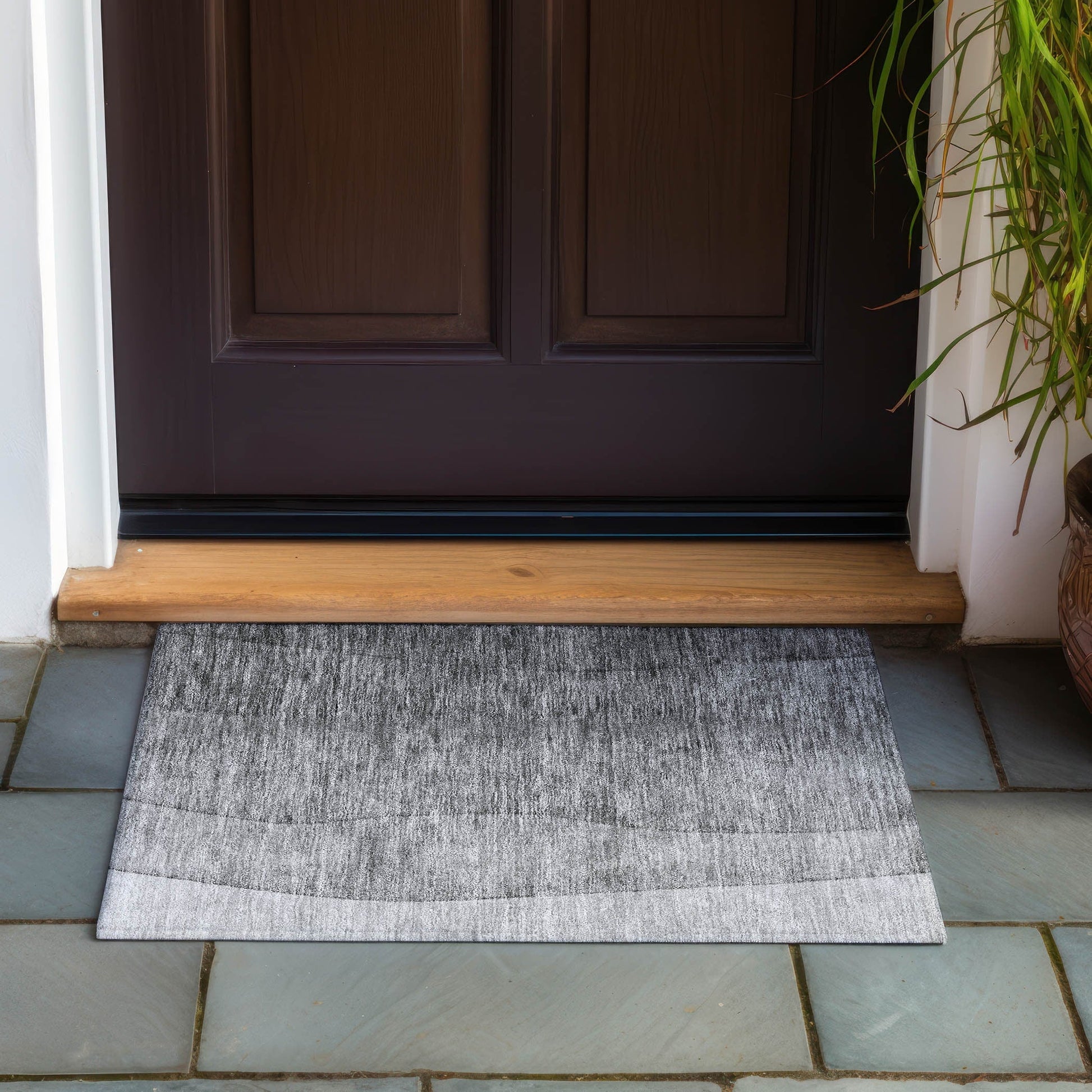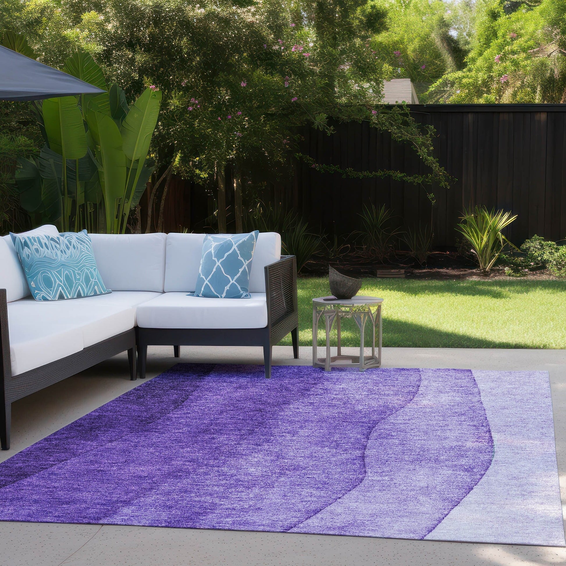 Plongez dans un univers de couleurs avec notre tapis à l'effet ombré envoûtant. Ce chef-d'œuvre au design transitionnel s'intègre harmonieusement à tous les styles de décoration. Traité anti-UV pour une utilisation intérieure et extérieure, il offre une polyvalence infinie. Son design ultra-fin est doté d'un envers antidérapant intégré, vous évitant ainsi l'achat d'une sous-couche. Grâce à sa finesse, il sèche rapidement après la pluie ou un nettoyage extérieur. De plus, il est lavable en machine et parfaitement adapté aux familles avec animaux de compagnie. Les tapis de grande taille peuvent ne pas convenir aux machines à laver domestiques. Dans ce cas, il est possible de les laver dans une machine à laver industrielle ou de les rincer au jet d'eau à l'extérieur avec de l'eau et du savon doux. Séchage à l'air libre uniquement. Tous les tapis exposés longtemps à un ensoleillement intense et direct peuvent se décolorer avec le temps. Nos tapis sont particulièrement adaptés aux espaces extérieurs couverts et aux zones non couvertes bénéficiant d'un ensoleillement direct modéré.