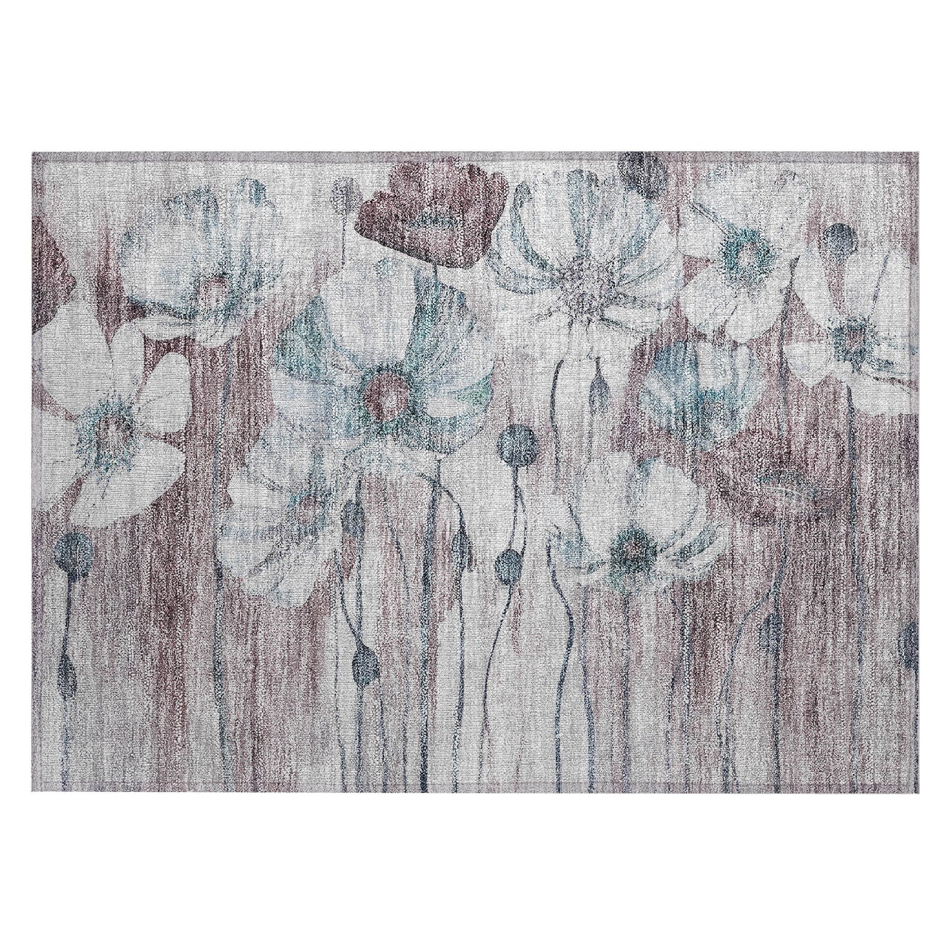 Tapis Chantille moderne à motif floral, lavable en machine, pour intérieur/extérieur