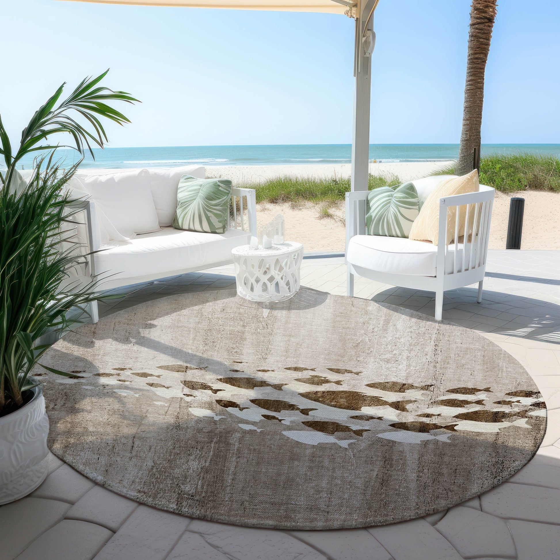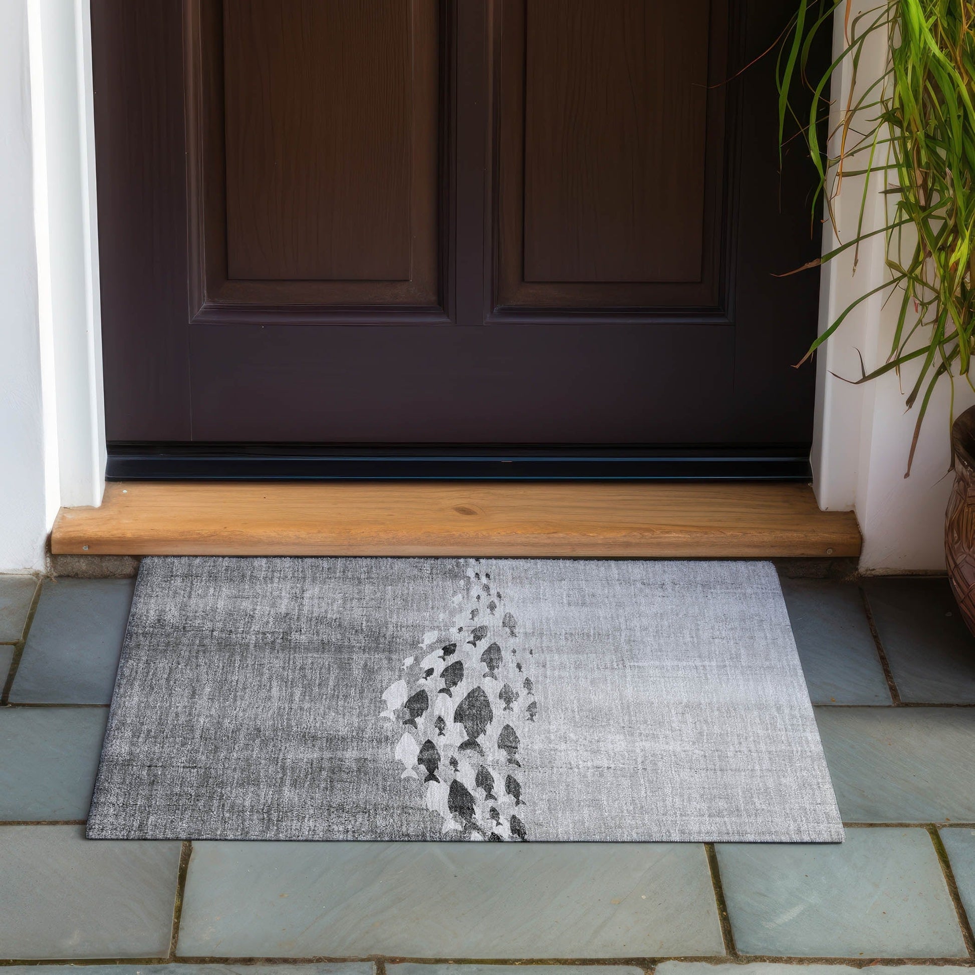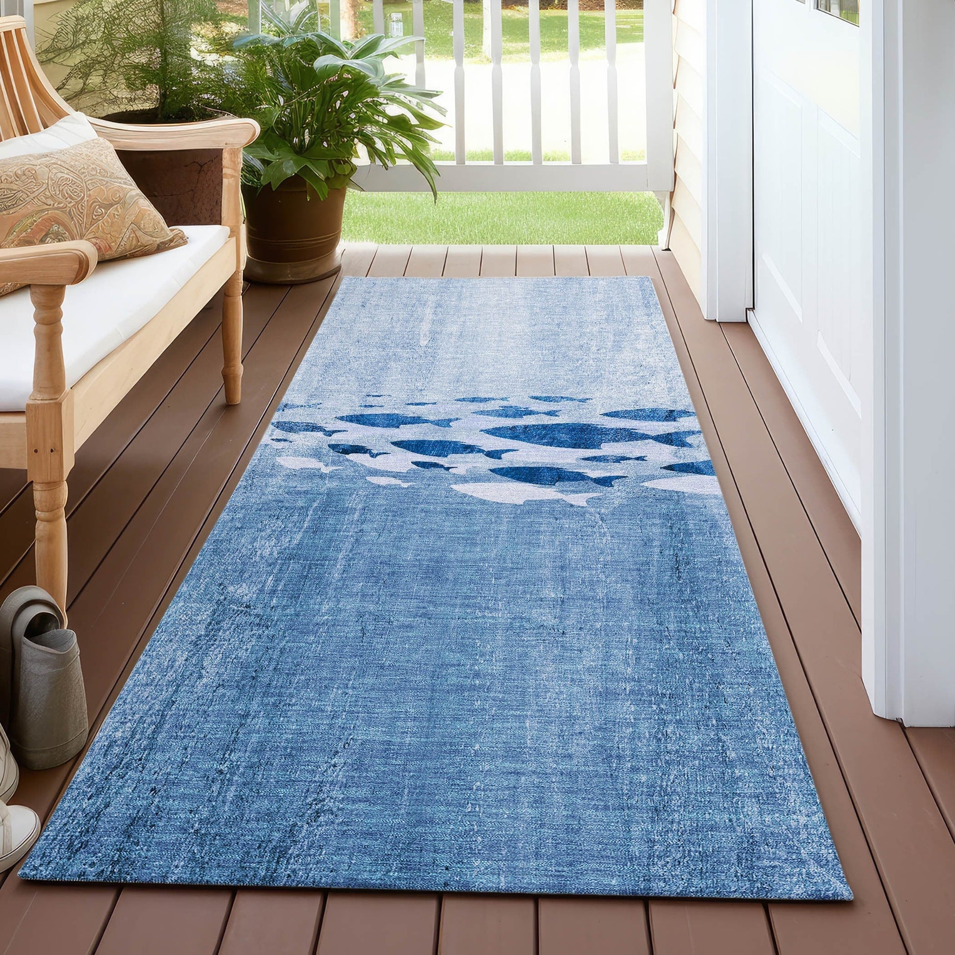 Laissez-vous transporter par la mer avec notre tapis de transition, orné d'un banc de poissons dans un captivant dégradé ombré. Ce tapis intègre harmonieusement des éléments nautiques à un intérieur moderne. Stabilisé aux UV, il convient aussi bien à l'intérieur qu'à l'extérieur. Sa finesse exceptionnelle lui confère un envers antidérapant intégré, vous dispensant ainsi de l'achat d'une sous-couche. Après la pluie ou un nettoyage extérieur, son profil ultra-fin assure un séchage rapide. Lavable en machine, il est idéal pour les familles avec enfants et animaux. Les tapis de grande taille peuvent toutefois ne pas convenir aux machines à laver domestiques. Dans ce cas, un lavage en machine industrielle ou un simple jet d'eau à l'eau savonneuse douce est recommandé. Séchage à l'air libre uniquement. Une exposition prolongée et intense au soleil peut entraîner une décoloration des tapis. Pour une meilleure tenue dans les espaces extérieurs couverts ou à l'abri du soleil, privilégiez les zones moins ensoleillées.