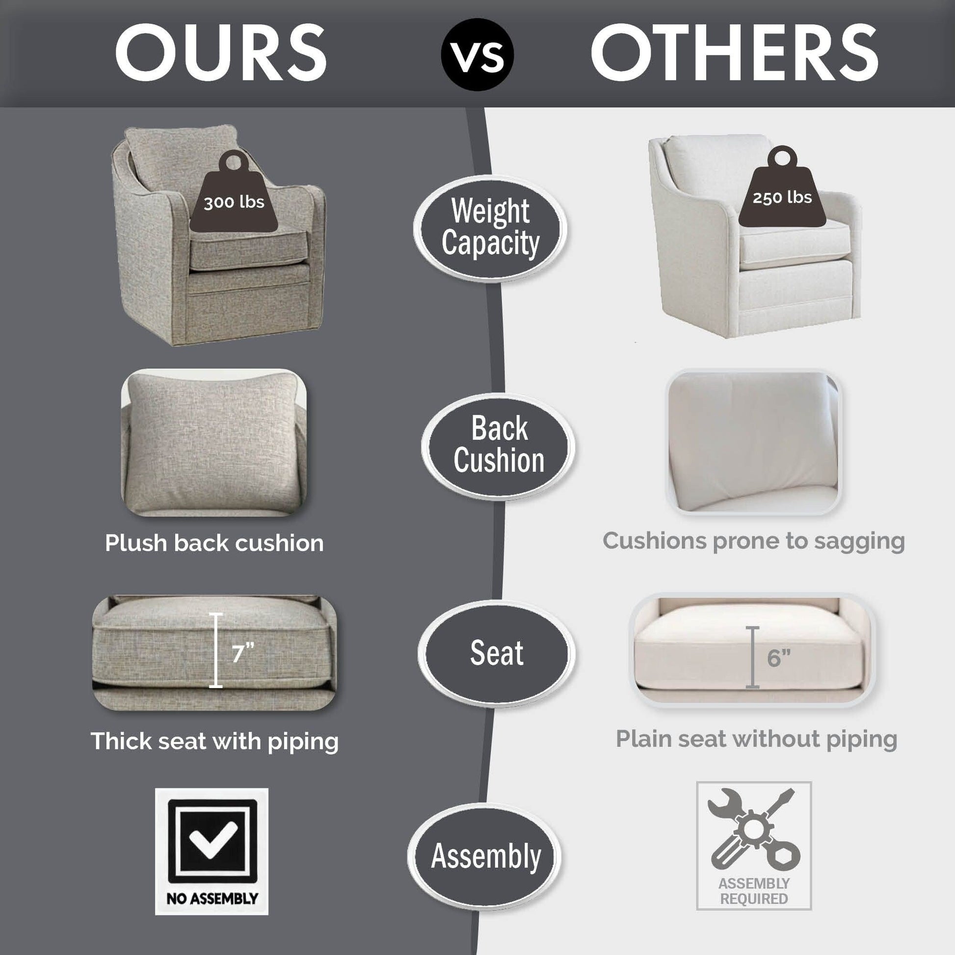 - Sa structure en contreplaqué renforcée par du bois massif et son piètement pivotant en métal résistant à la corrosion lui confèrent une grande durabilité et supportent jusqu'à 136 kg (300 lbs).