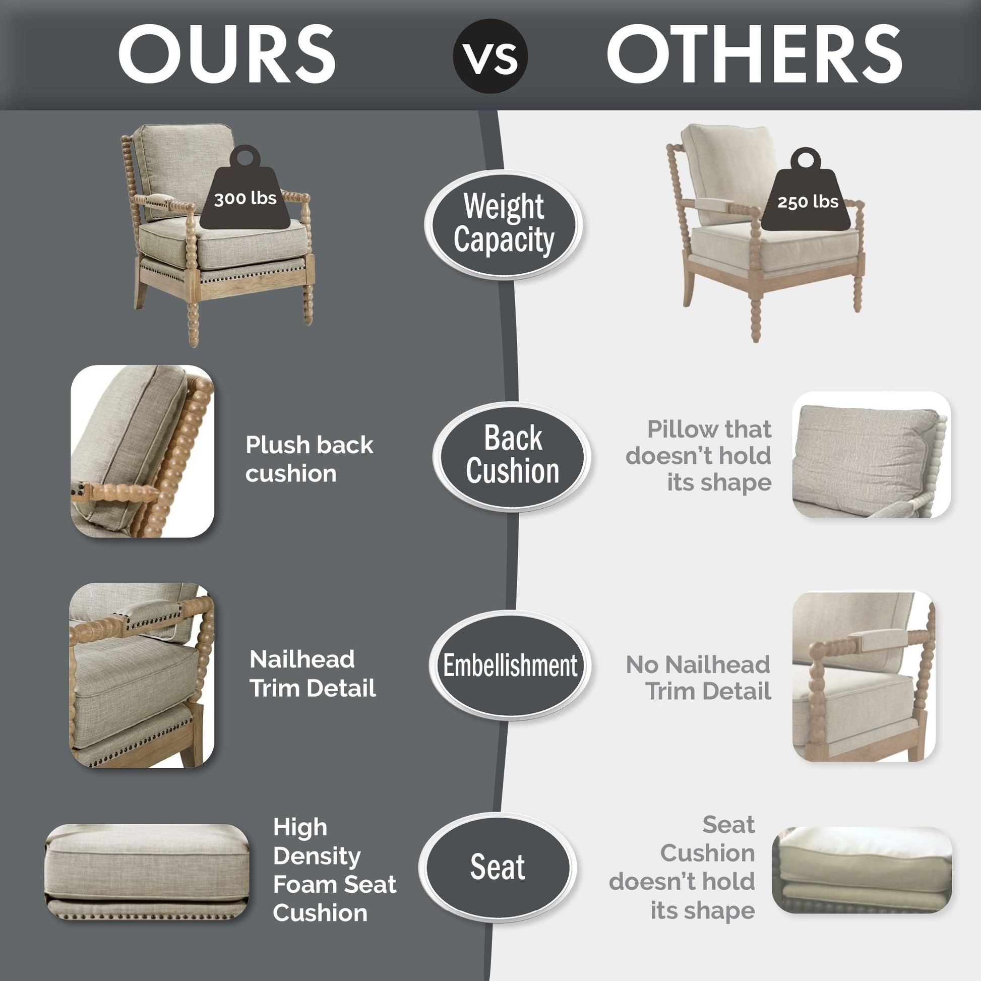 - Fauteuil classique mais décontracté avec un design à dossier ouvert et des détails en bois tourné sur les pieds avant pour un attrait intemporel