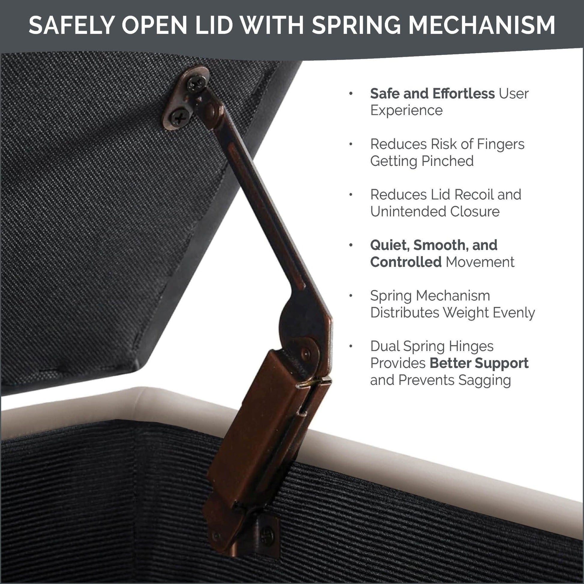 - Construction de qualité avec couvercle et côtés rembourrés, pieds en bois massif et mouvement silencieux, fluide et contrôlé grâce à des charnières à ressort