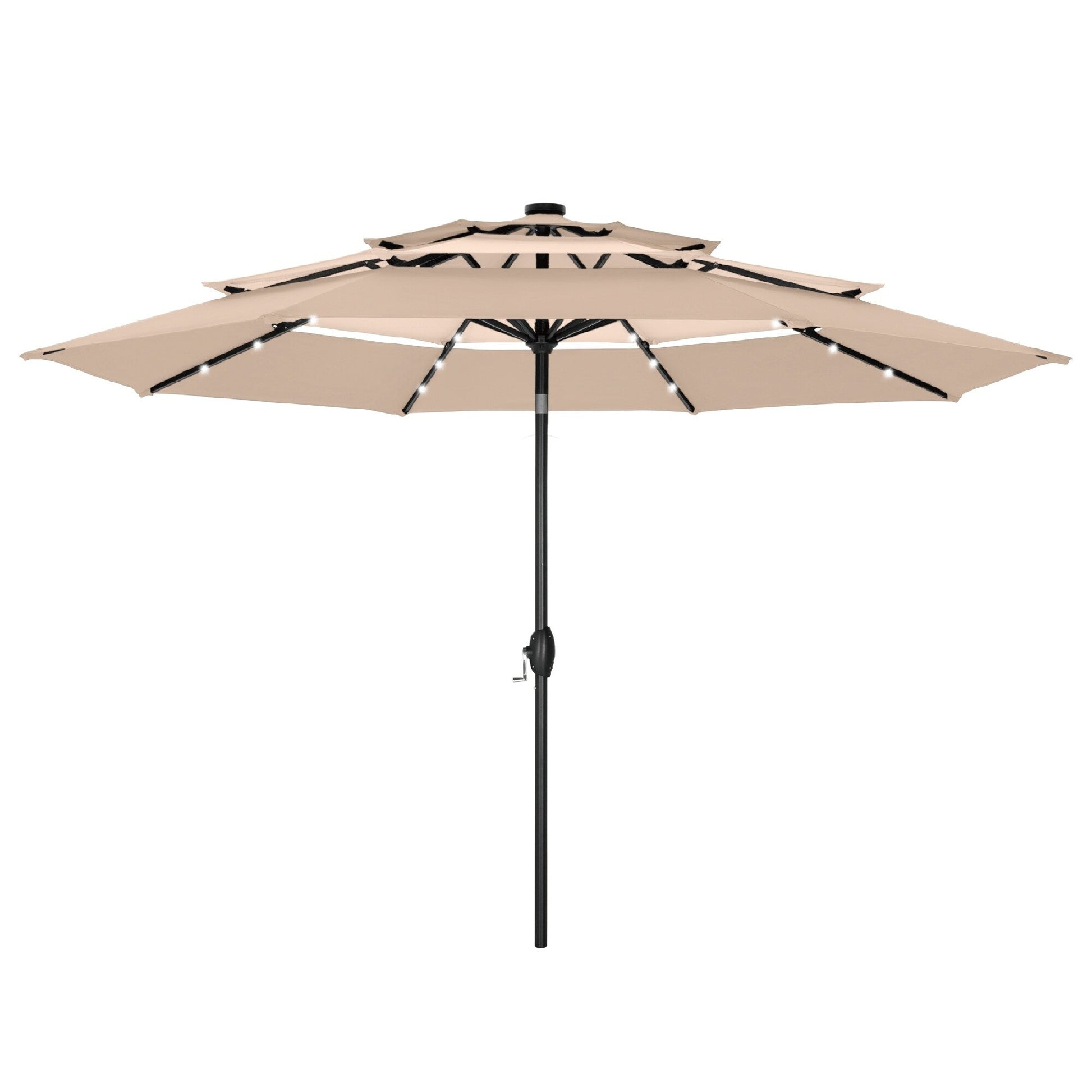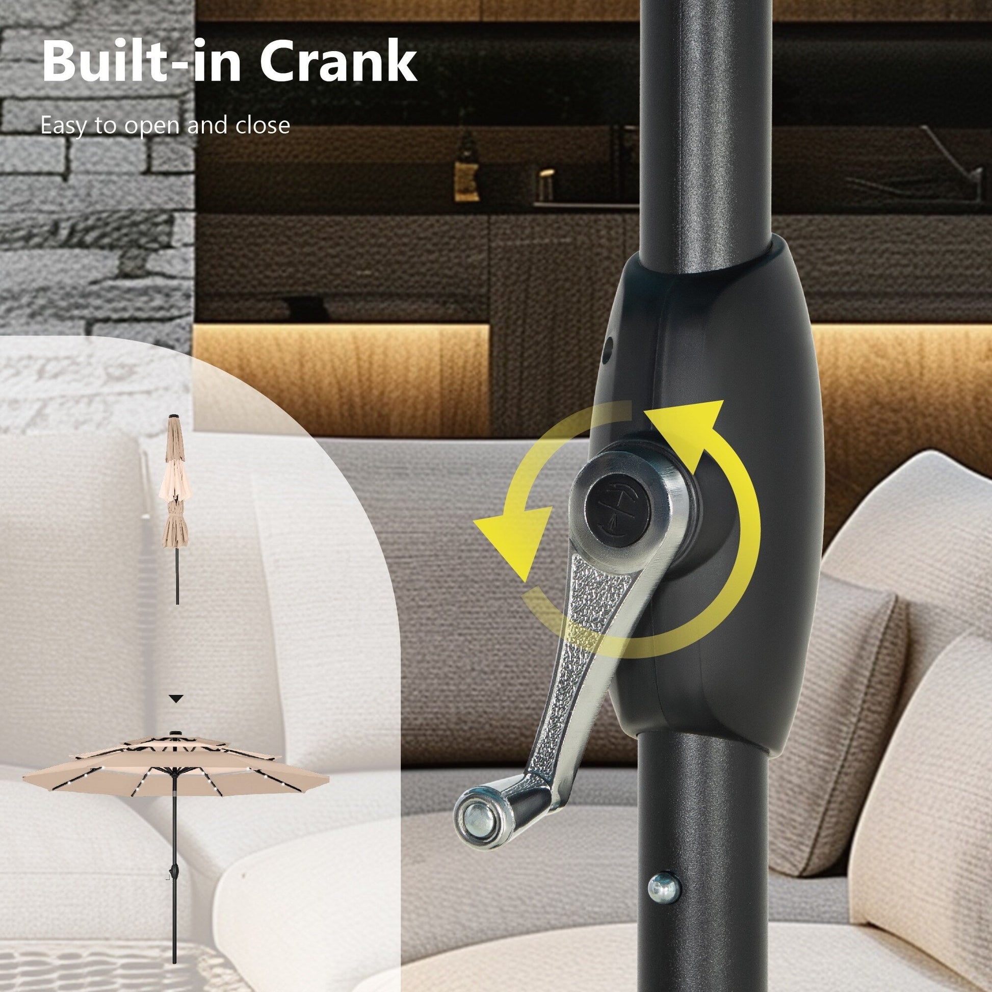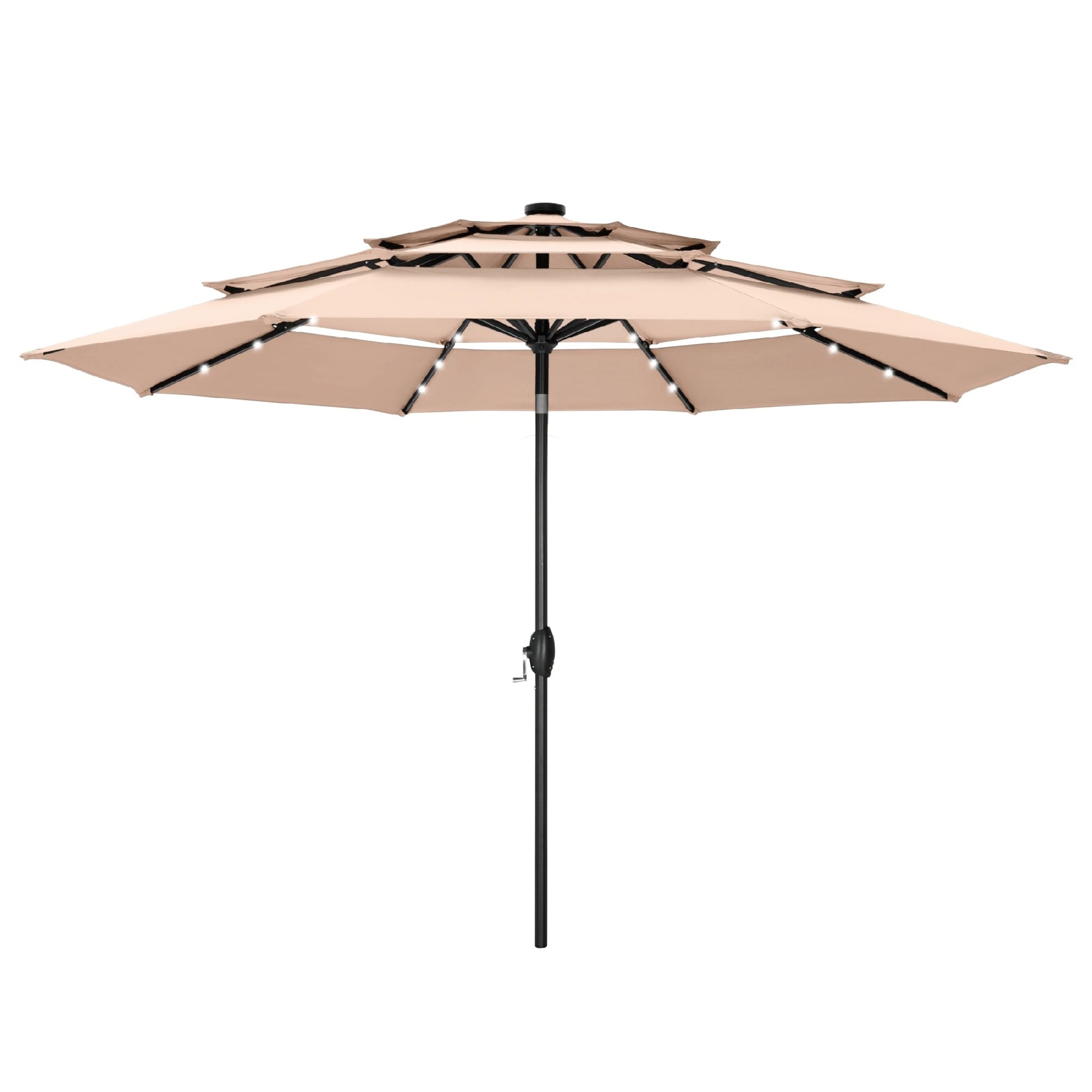 Parasol de terrasse inclinable à 3 niveaux de 10 pieds de MAISON ARTS, parasol d'extérieur à double ventilation avec lumières LED