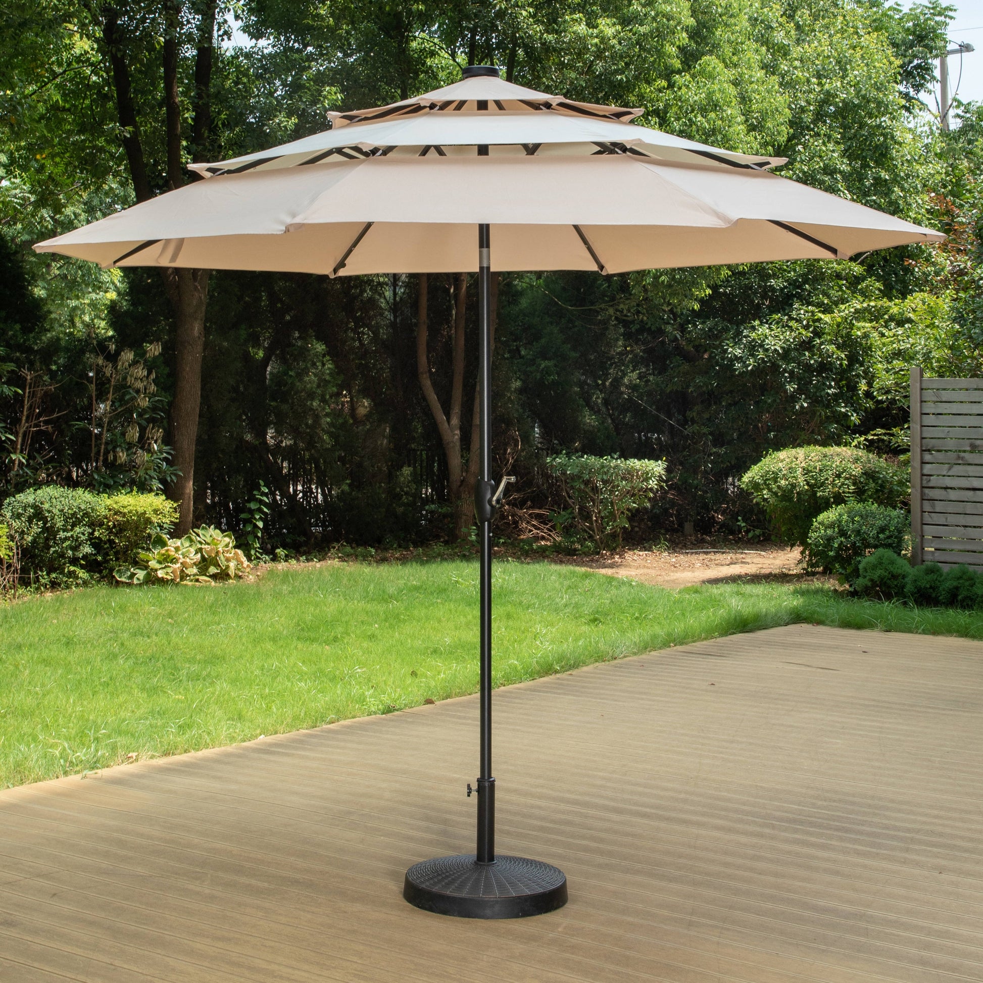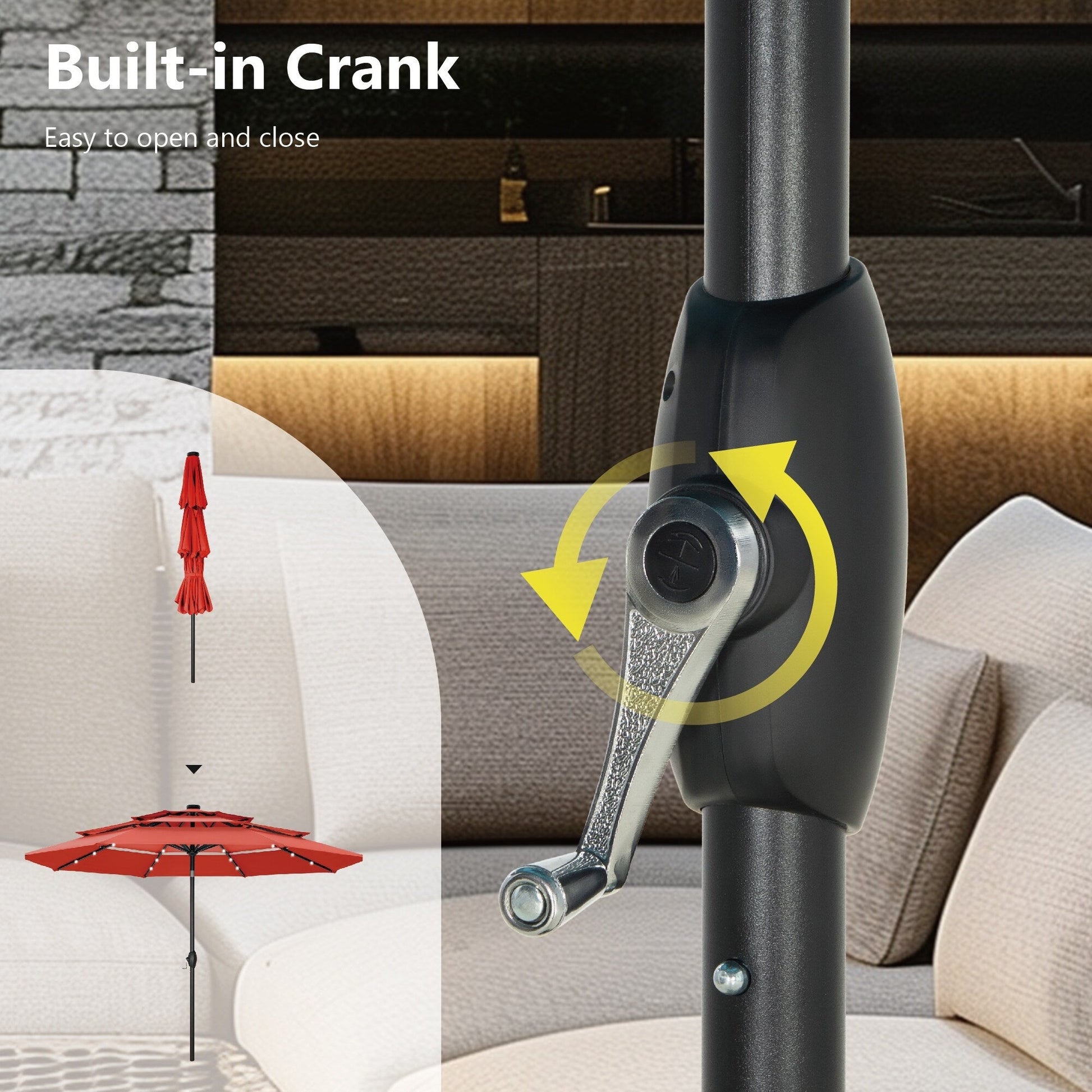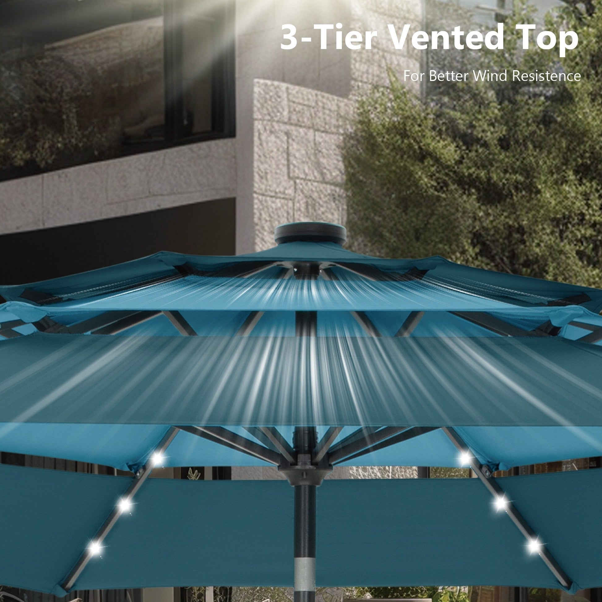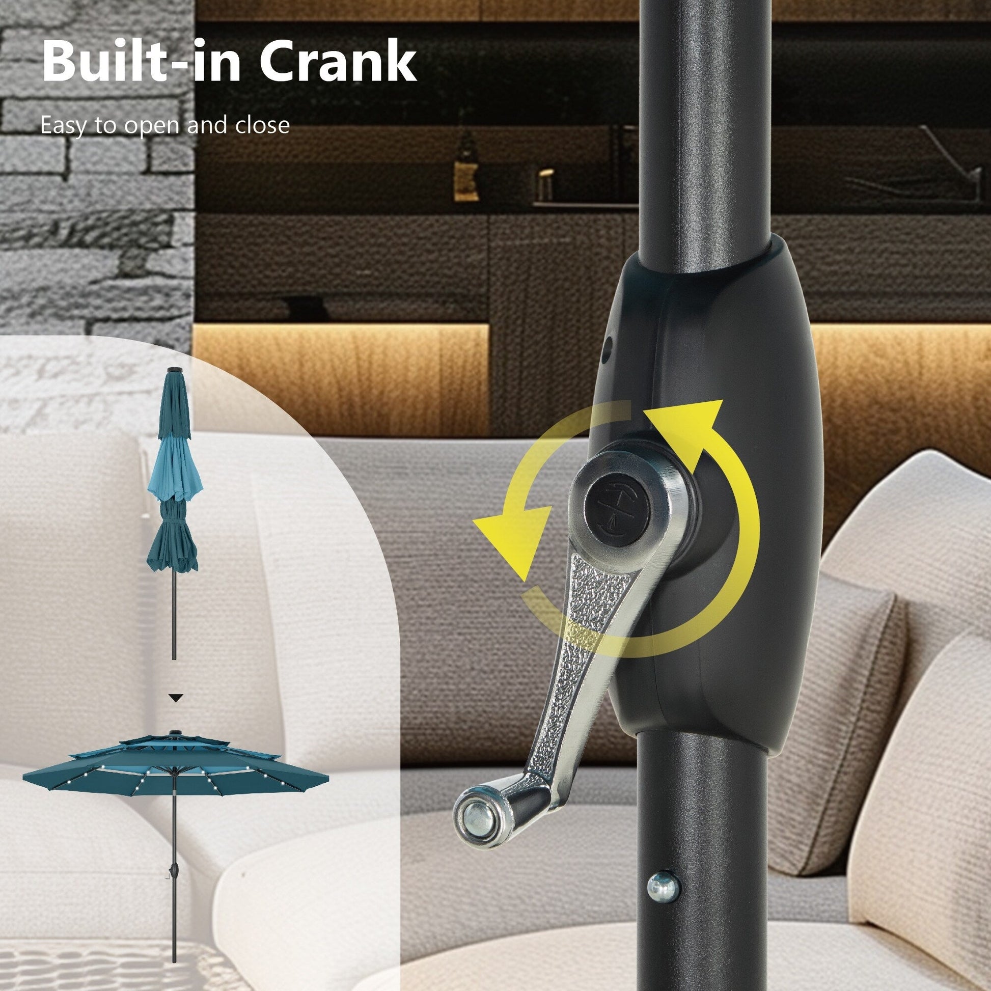 Parasol de terrasse inclinable à 3 niveaux de 10 pieds de MAISON ARTS, parasol d'extérieur à double ventilation avec lumières LED