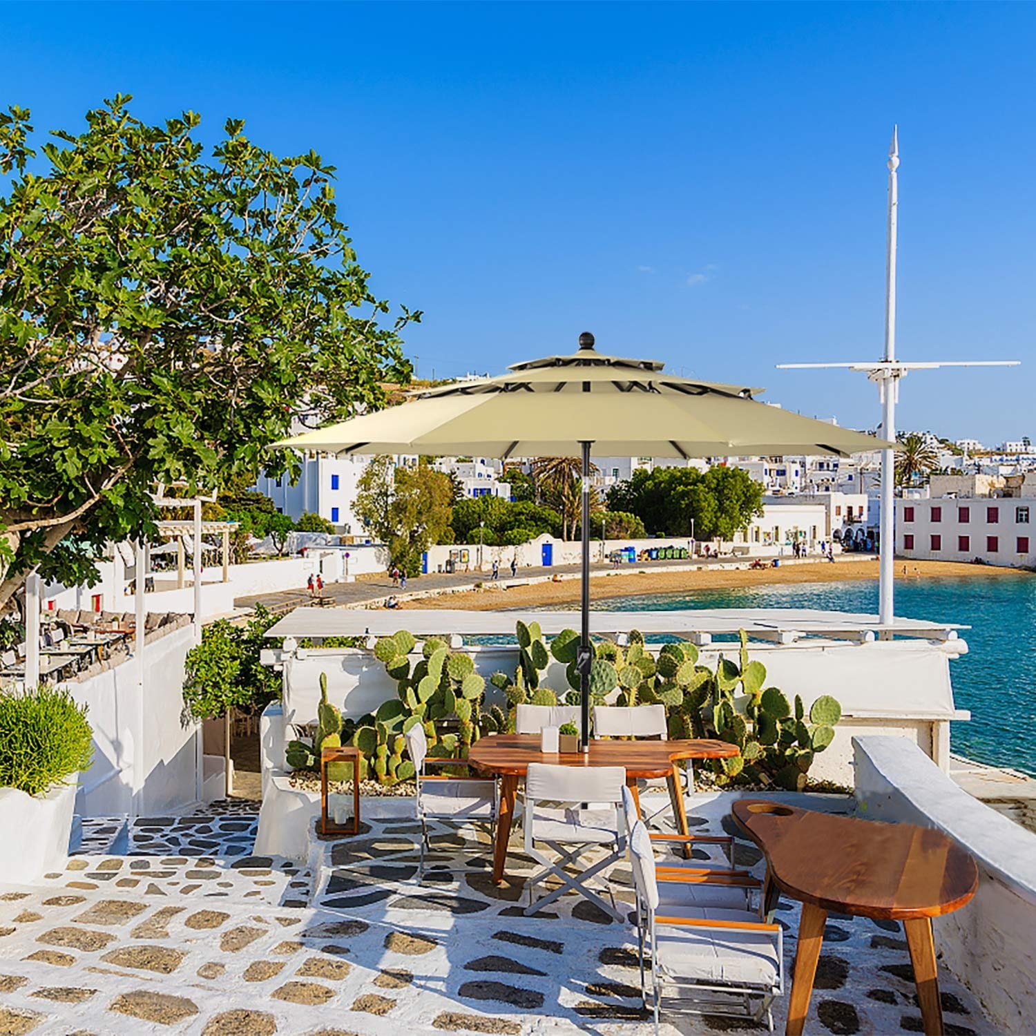 Parasol d'extérieur MAISON ARTS de 3 m (10 pi) à 3 niveaux, ventilé, avec inclinaison automatique et manivelle.