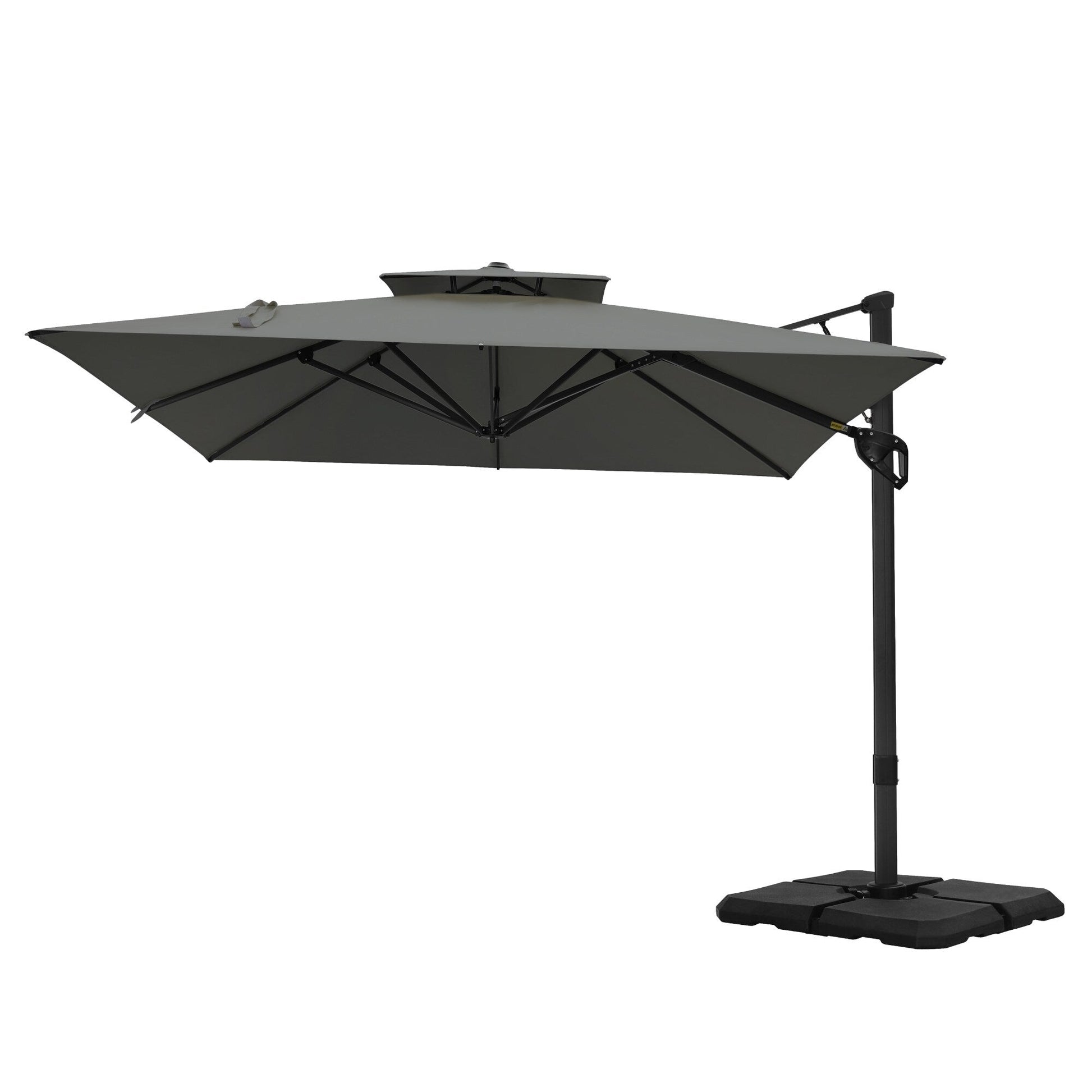 3. Équipé d'un moyeu rotatif à 360 degrés, le parasol pivote librement sans déplacer la base. Il permet de régler la position de l'ombre par simple rotation de la base.