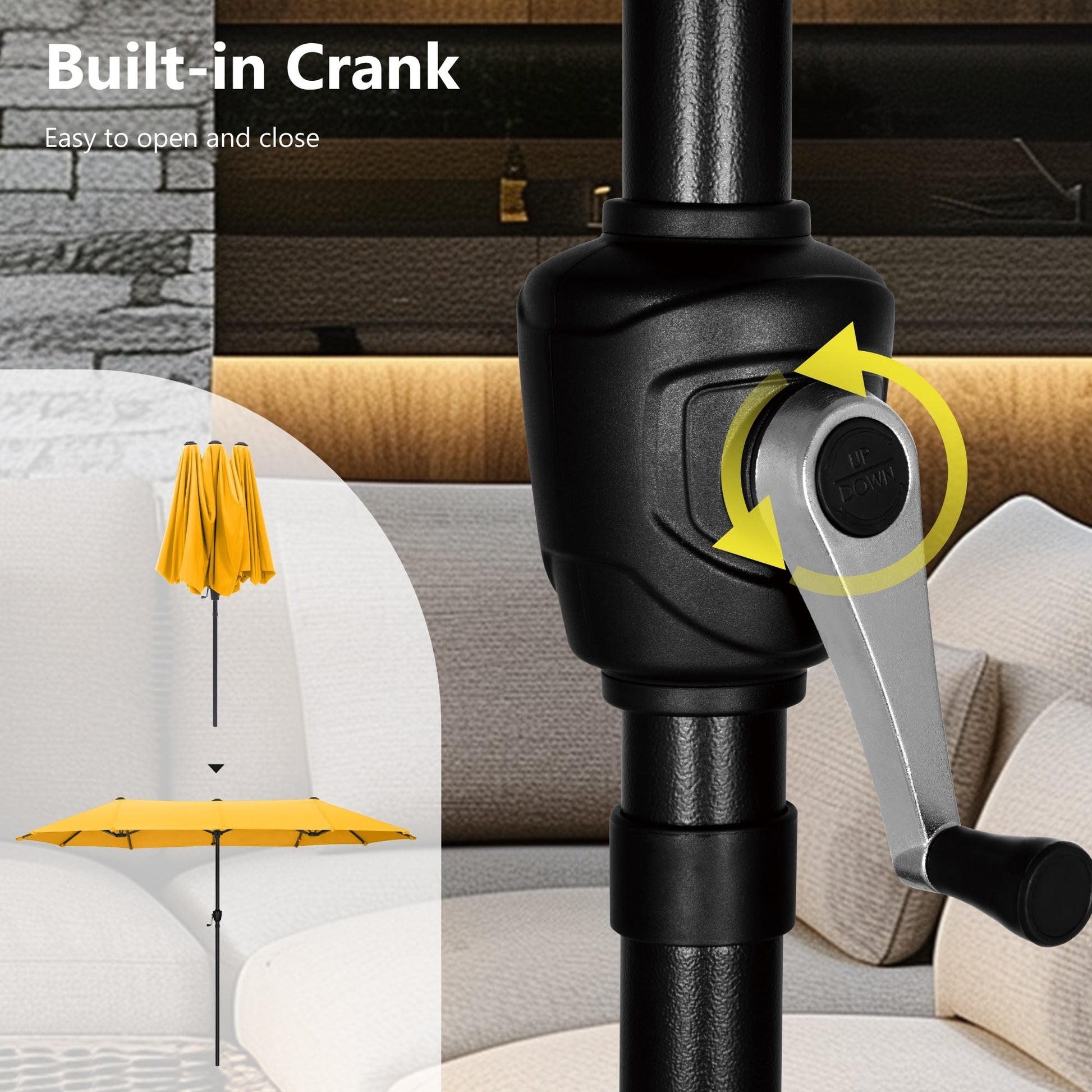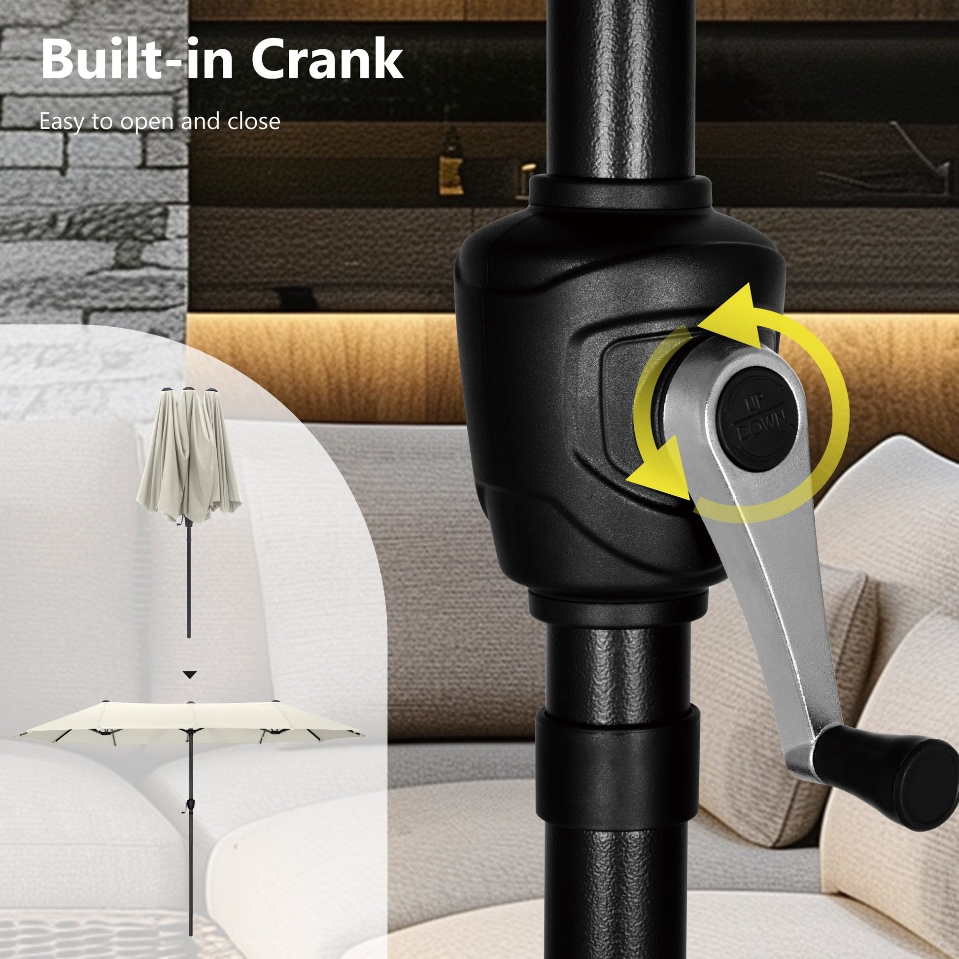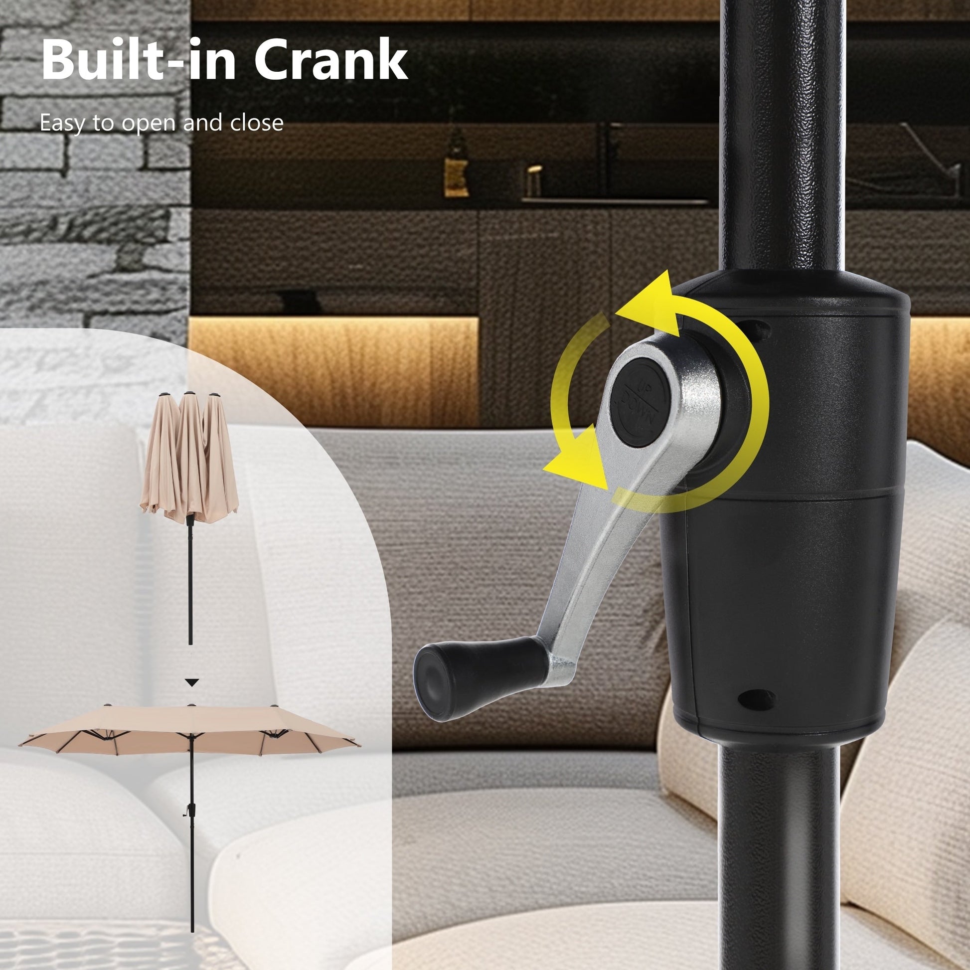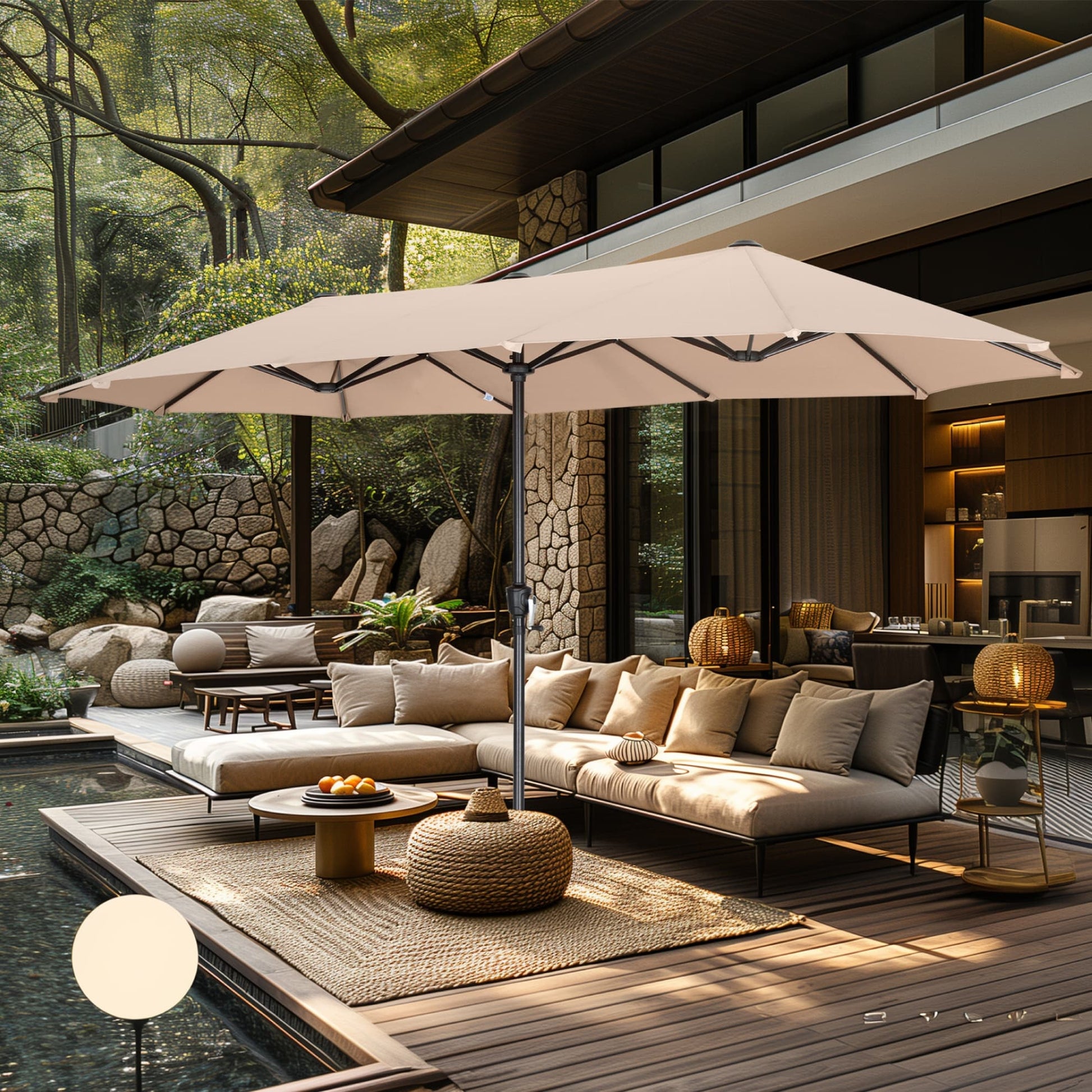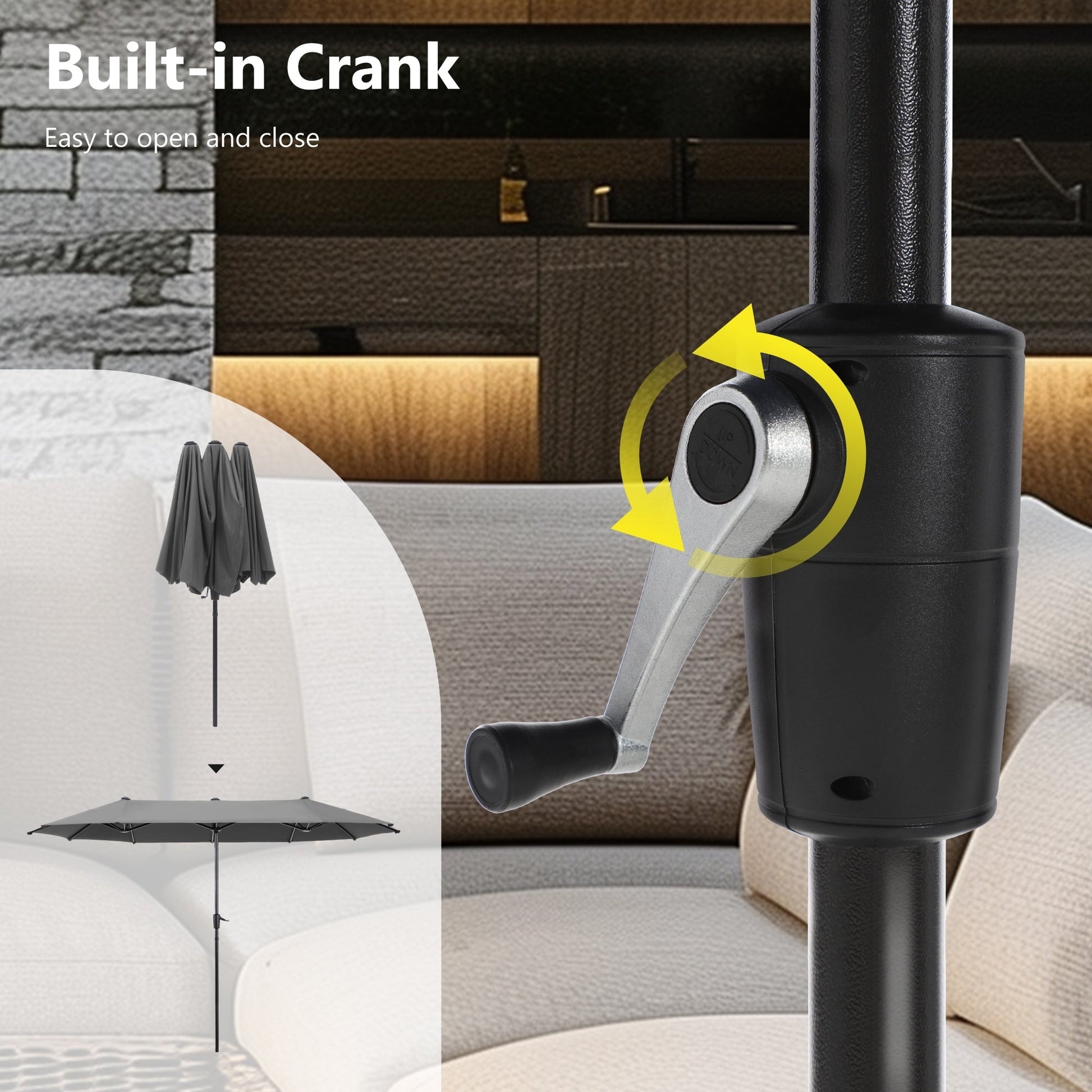 Parasol de terrasse double face extra large de 4 m (13 pi) avec manivelle, MAISON ARTS