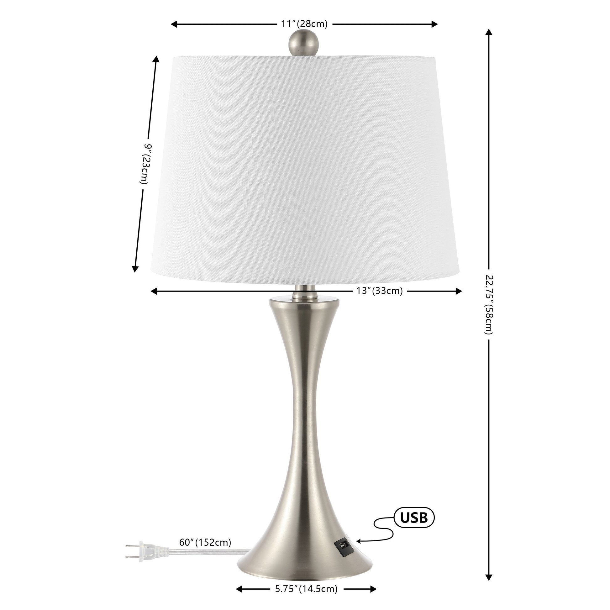 - Lampe : 22,75 pouces de hauteur x 13 pouces de largeur x 13 pouces de profondeur