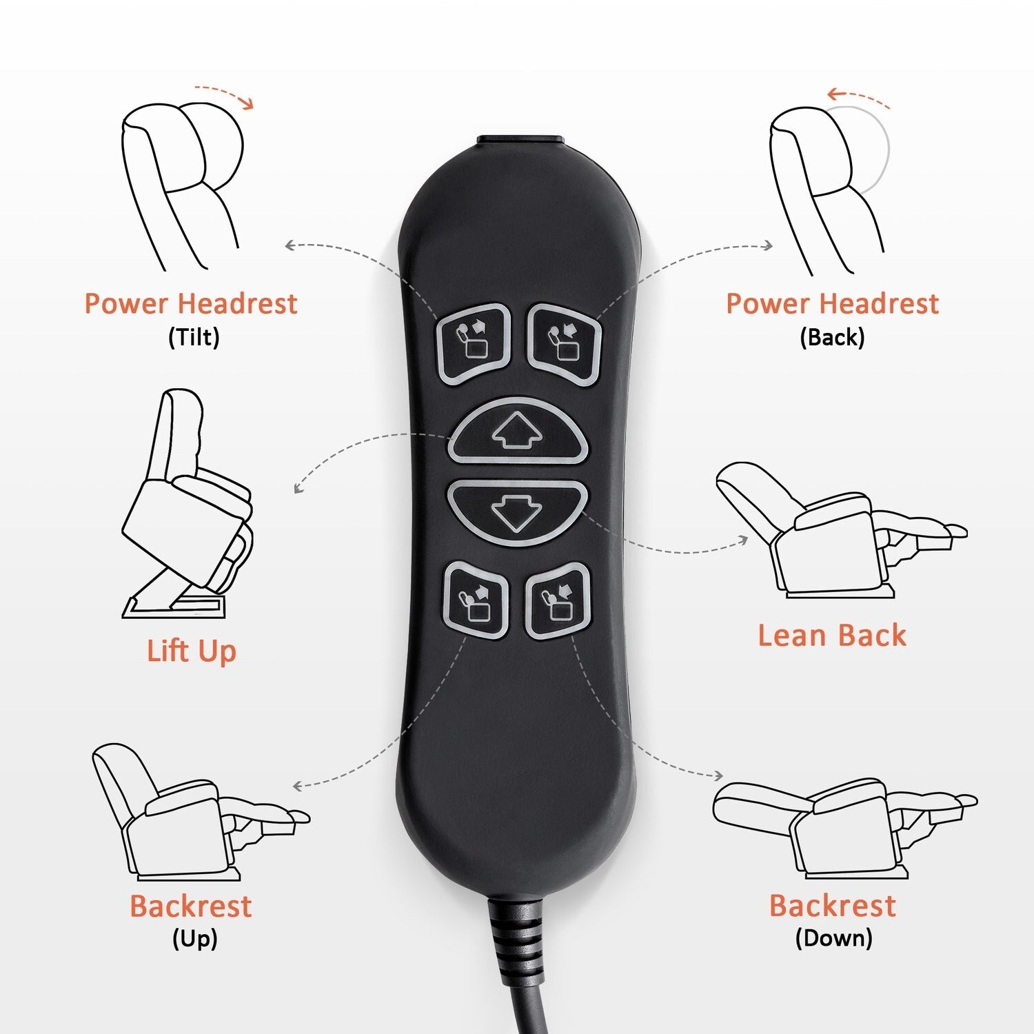 - Appuie-tête électrique : Si les appuie-tête réglables peuvent être utilisés pour un confort personnalisé en position assise droite, ils sont spécialement conçus pour permettre à une personne inclinée de regarder droit devant elle – par exemple vers la télévision – sans se faire mal à la tête ni au cou.