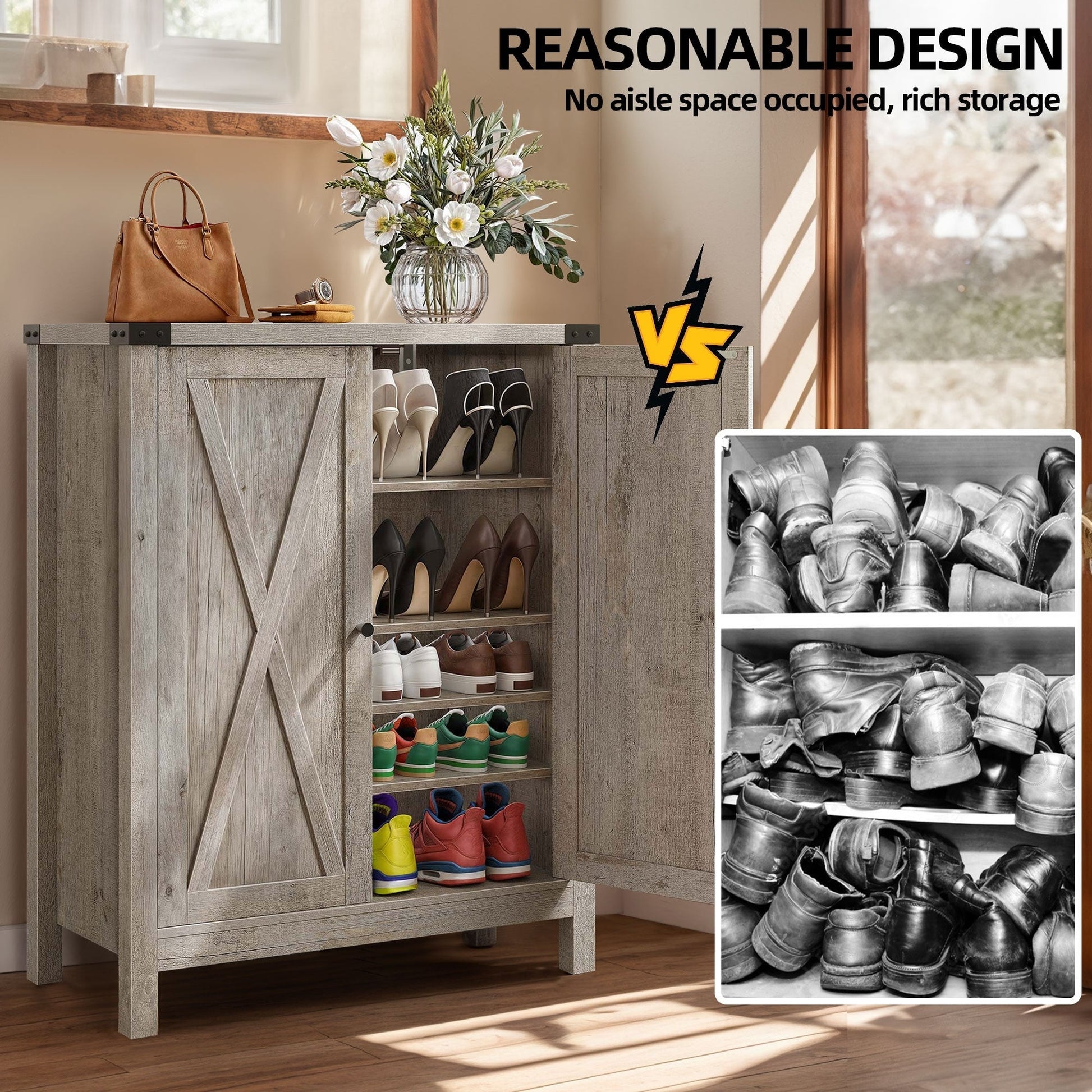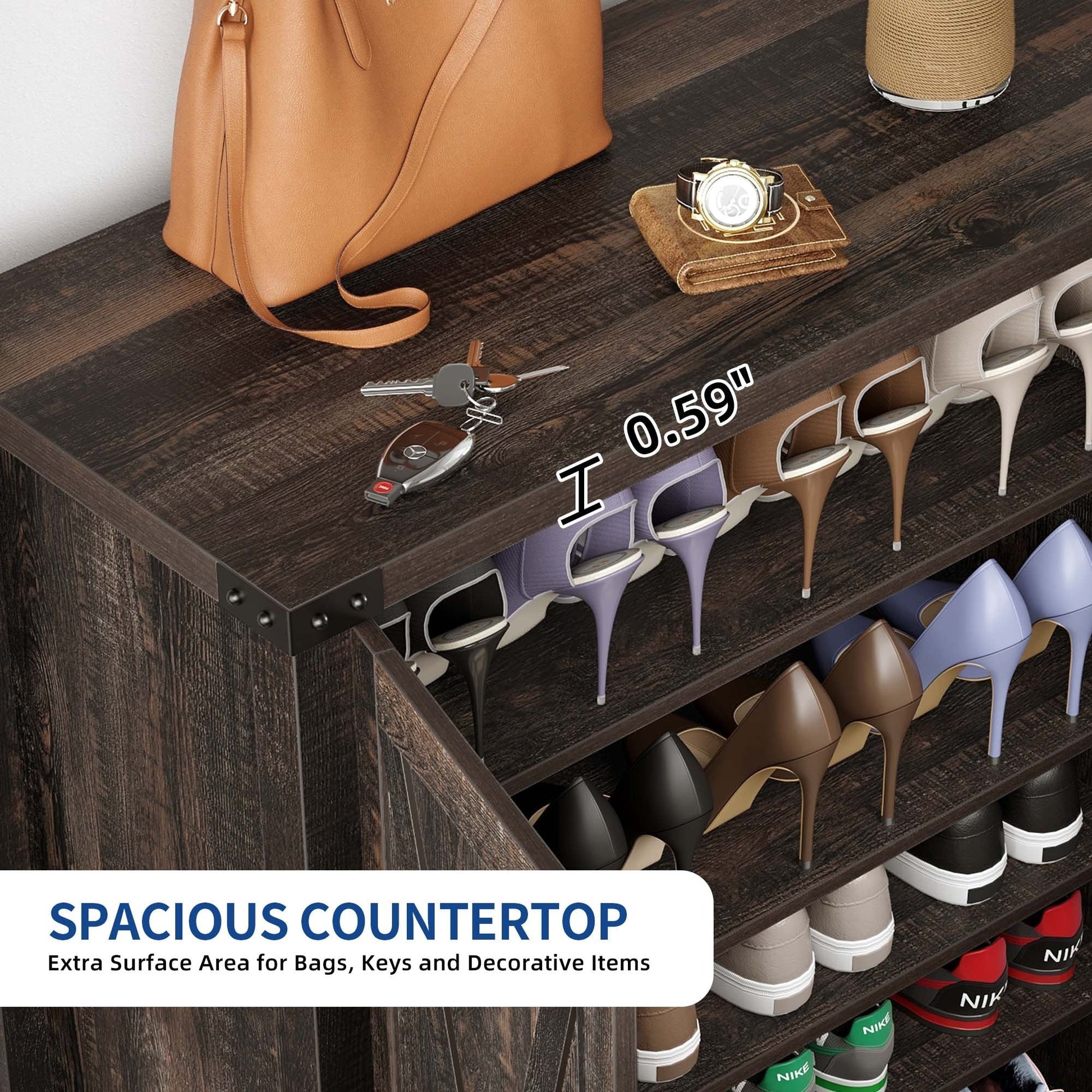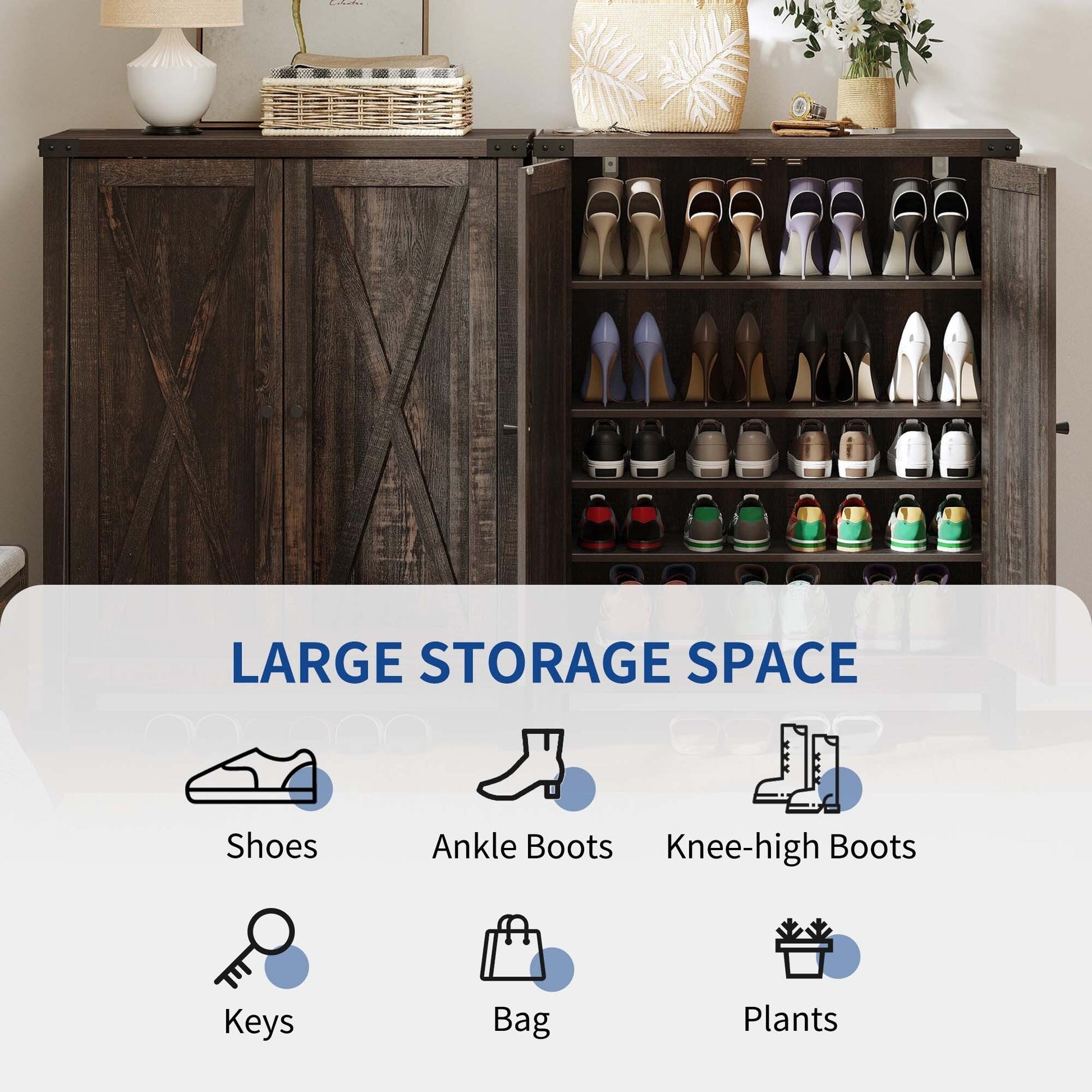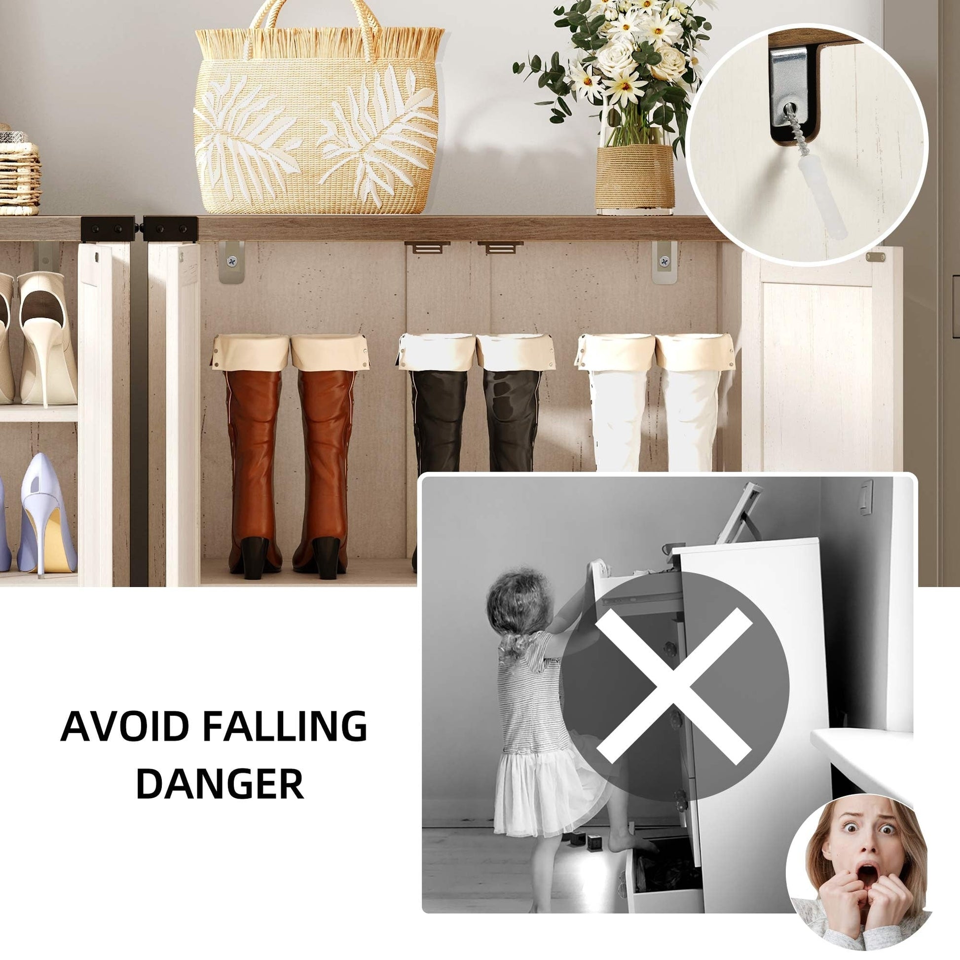 Optimisez le rangement de votre maison avec notre spacieux meuble à chaussures. Doté de 5 étagères pouvant accueillir 15 à 20 paires de chaussures et d'un plateau pratique pour les petits objets, il deviendra vite un indispensable. Son élégant motif en X lui confère un charme rustique, tandis que les 1re et 3e étagères réglables s'adaptent à tous les types de chaussures. Fabriqué en MDF résistant avec des pieds en bois robustes, il est conçu pour une stabilité et une durabilité optimales. N'oubliez pas d'installer le kit anti-basculement fourni pour plus de sécurité.