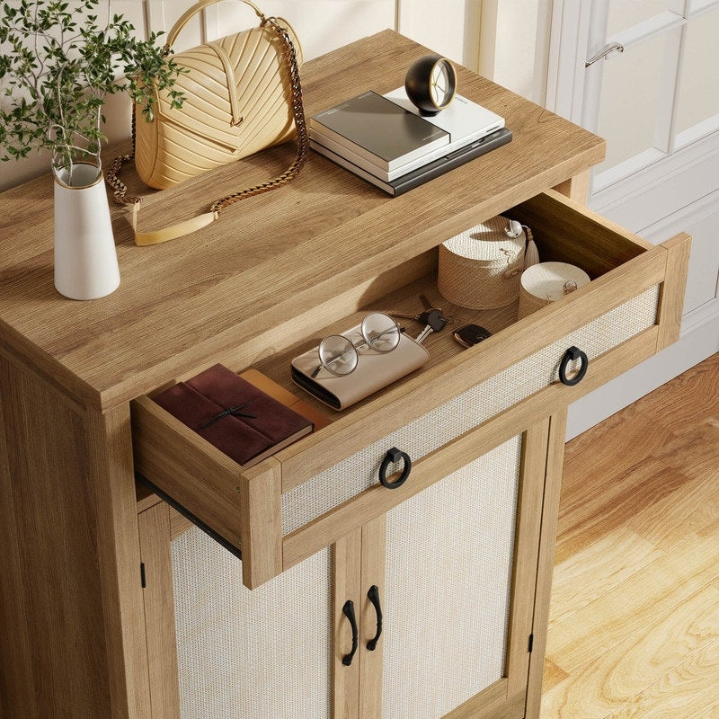 - Un grand espace de rangement peut accueillir 15 à 20 paires de chaussures et de petits objets.