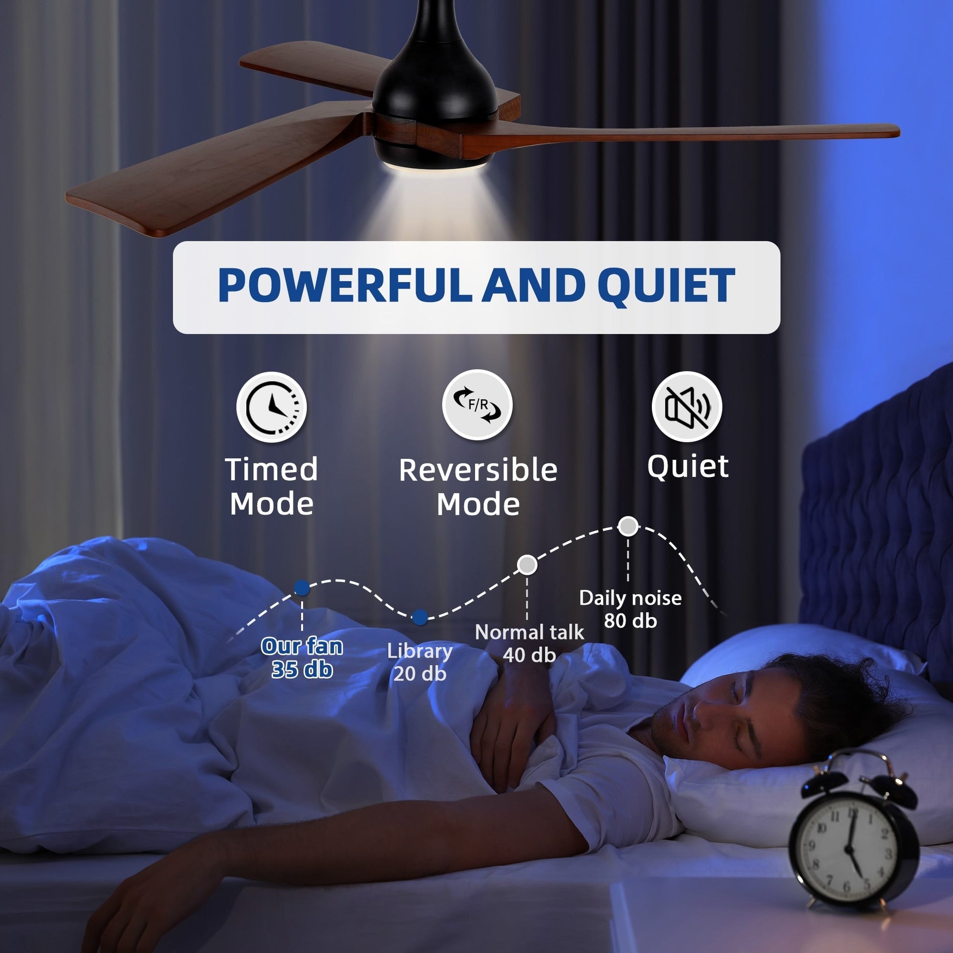 Ventilateur de plafond moderne Moasis 52 avec télécommande, éclairage et 5 pales en bois massif