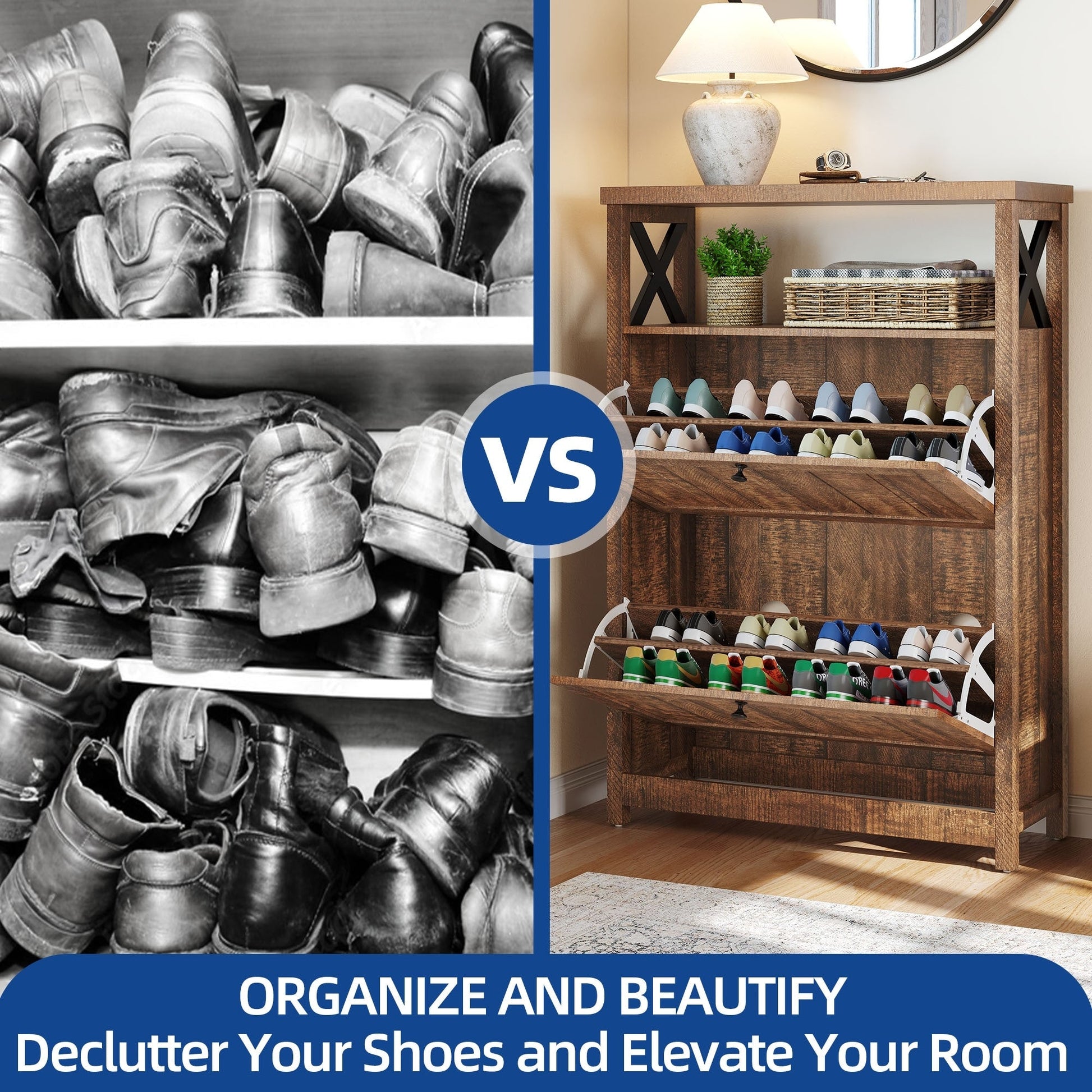 - Les tiroirs à chaussures à rabat peuvent contenir de 12 à 16 paires, les protégeant ainsi de la poussière et du désordre.