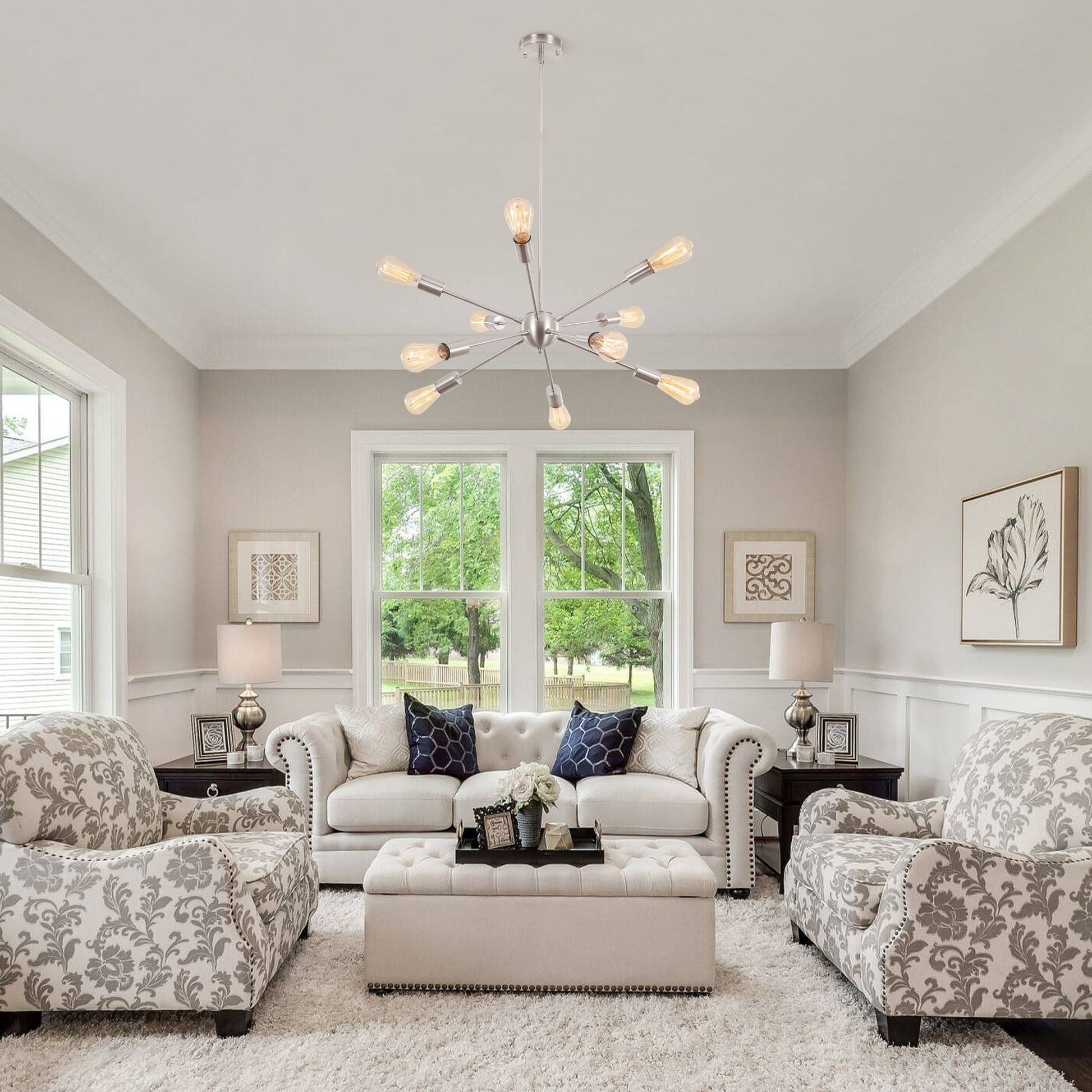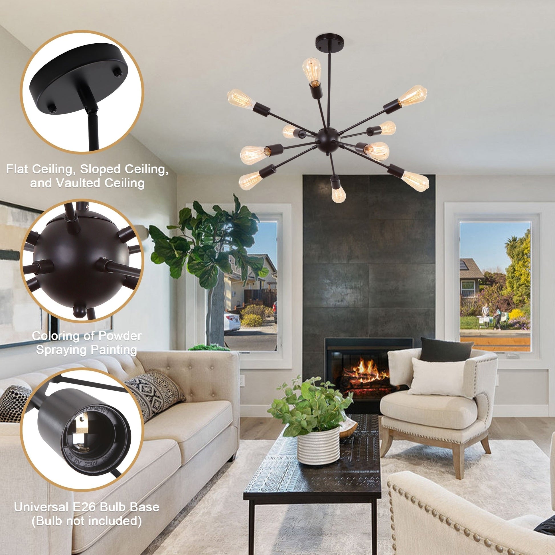 - 💡 Ampoules requises et compatible avec un variateur : Cette lampe Sputnik nécessite 10 ampoules standard E26. Elle est compatible avec les LED, les ampoules fluocompactes et les halogènes, et est entièrement compatible avec un variateur et des ampoules compatibles pour créer une ambiance confortable. (Variateur et ampoules non inclus)