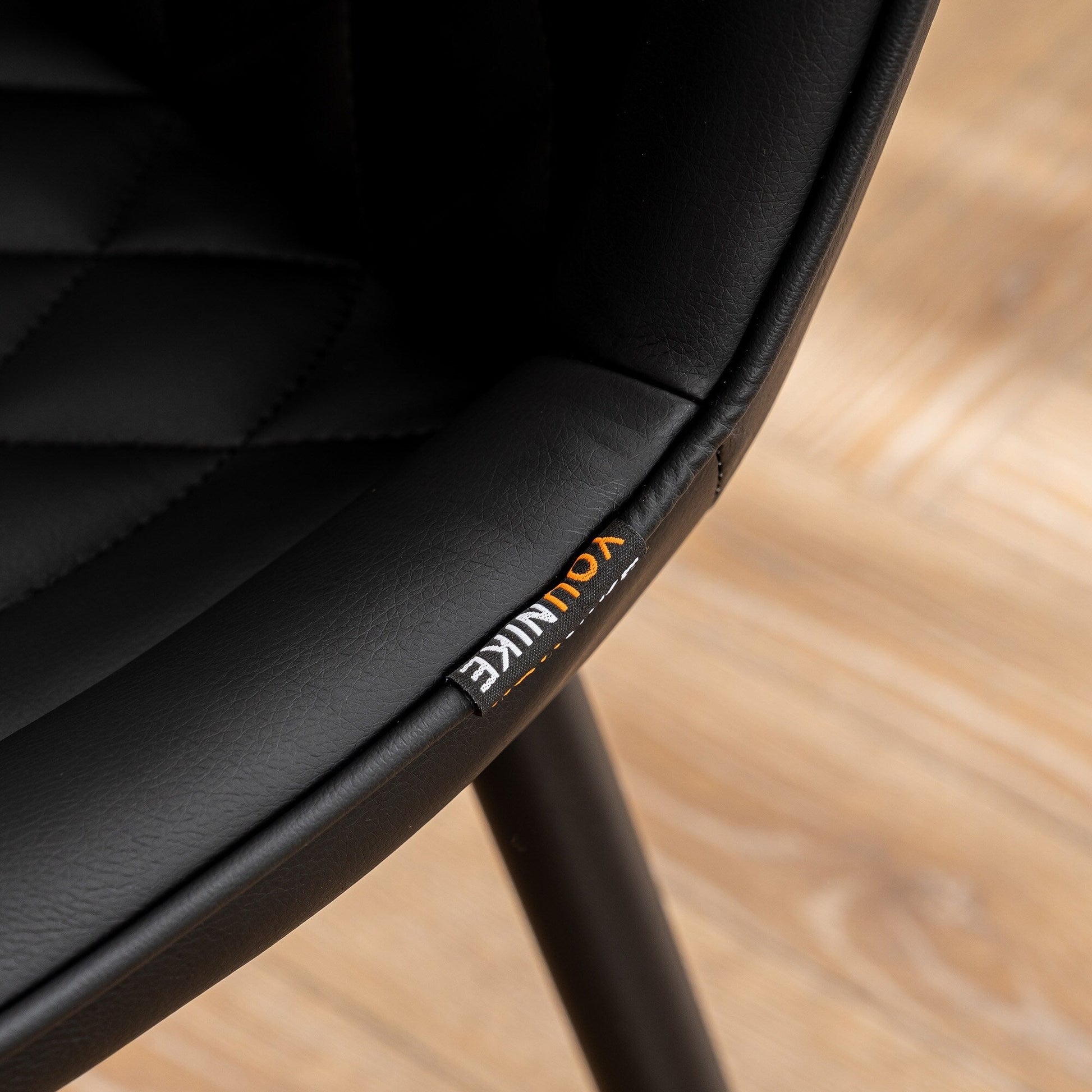 Fonction : Dossier ; Motif en queue de poisson ; Résistant aux rayures ; Peinture triple couche ; Sans accoudoirs ; Siège rembourré ; Quatre pieds en métal ; Cuir ; Imperméable ; Installation facile