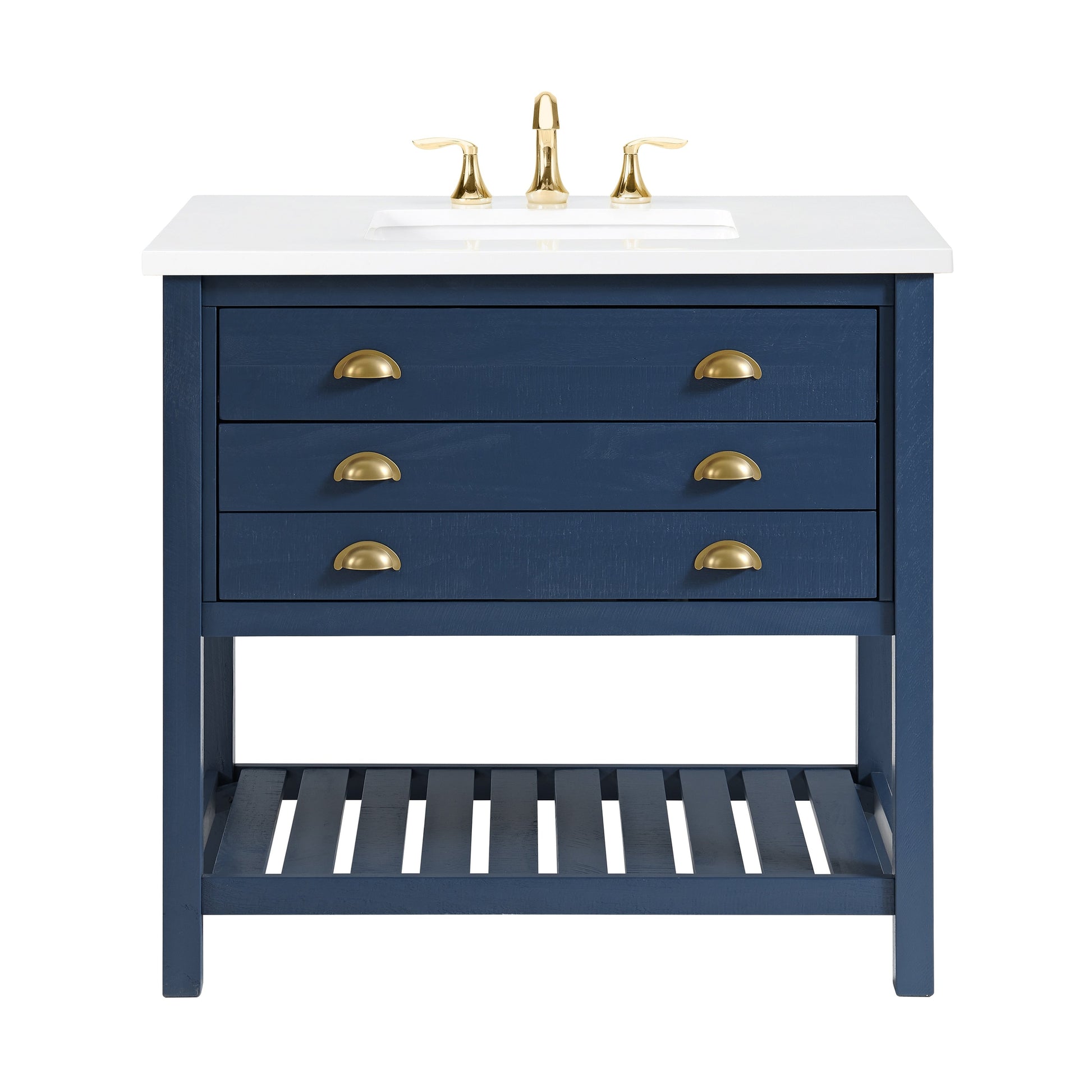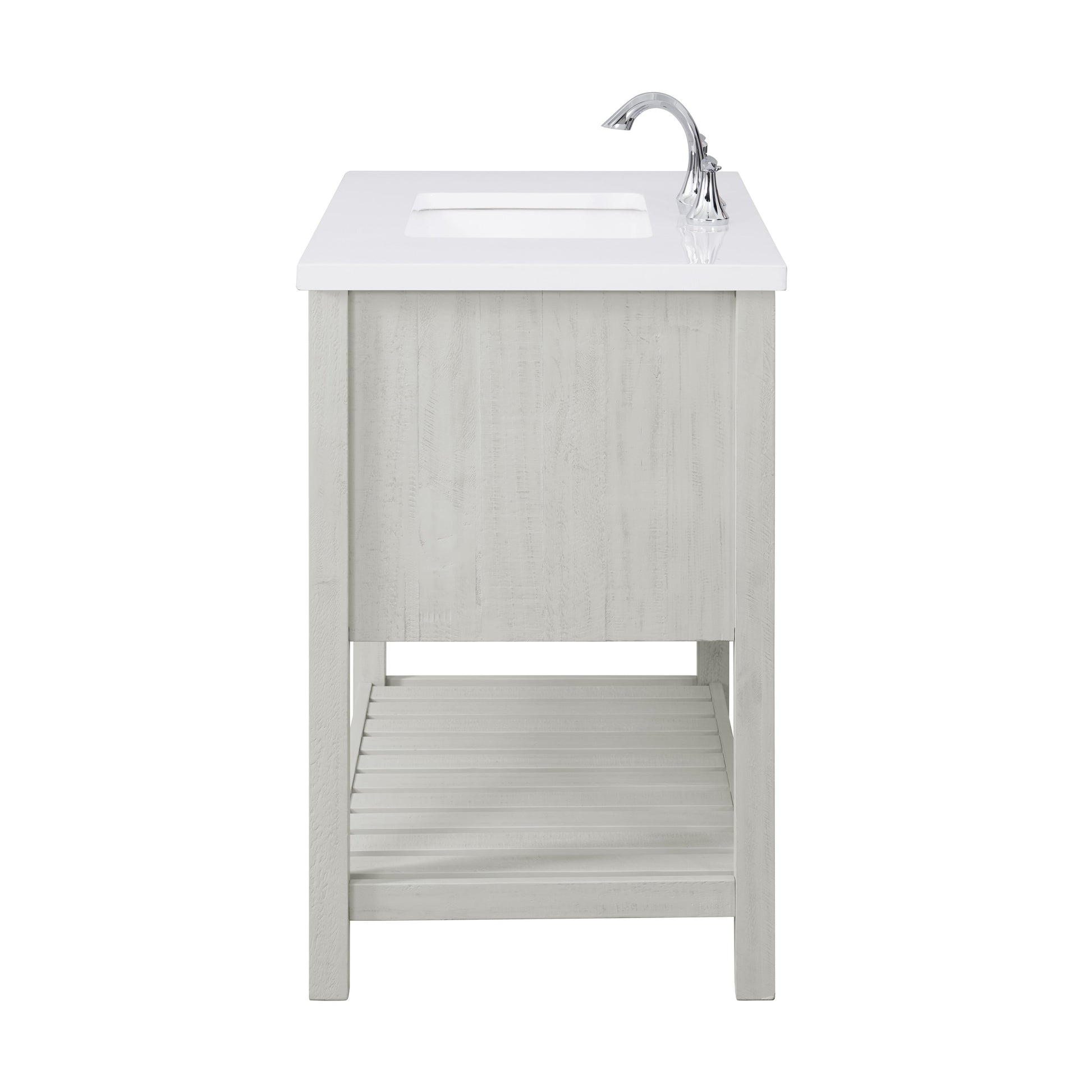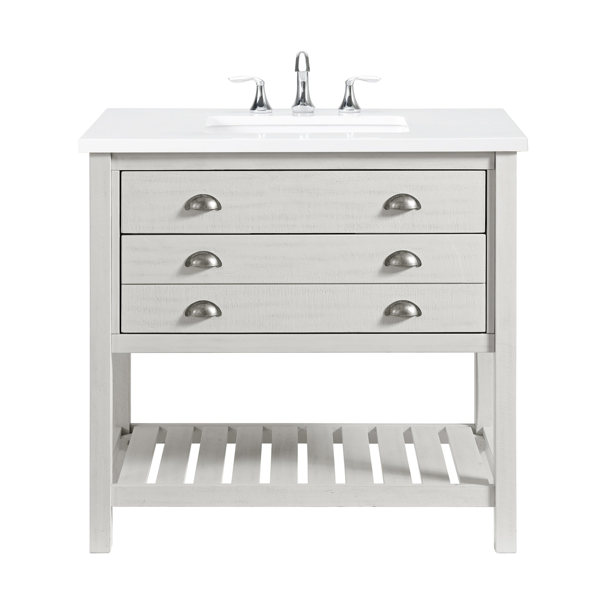 Transformez votre salle de bain en une oasis de charme côtier avec le meuble-lavabo simple Monterey de 9,4 m. Fabriqué en pin massif durable, ce meuble-lavabo simple est doté d'un plateau en similimarbre blanc massif avec des trous pré-percés pour un robinet de 2,4 m (robinetterie non incluse). Un tiroir séparé de belle taille et un tiroir supérieur rabattable offrent un grand espace de rangement pour les produits de toilette. Une étagère inférieure à lattes offre un espace de rangement supplémentaire pour les serviettes, le linge de maison et autres articles.