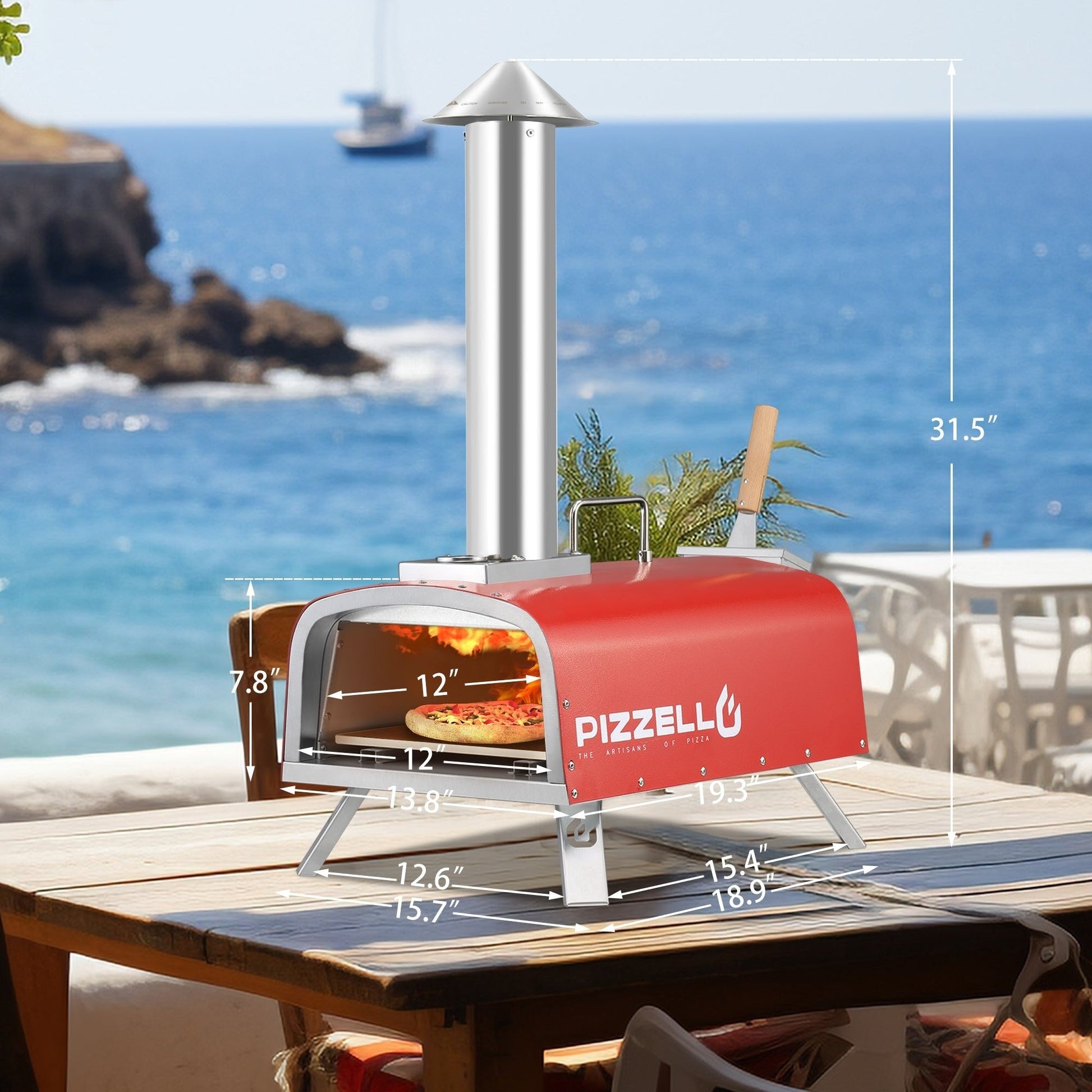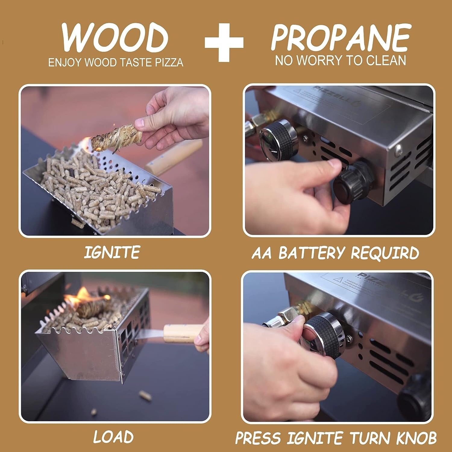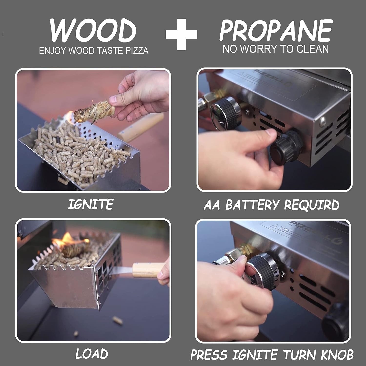 Four à pizza extérieur multicombustible, machine à pizza cuite sur pierre avec brûleur à gaz et boîte à bois - 12 pouces