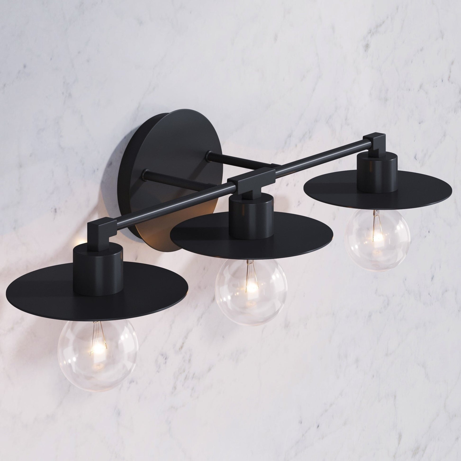 Applique murale de salle de bain Nathan James Pattinson à 3 lumières avec structure en métal et abat-jour fin