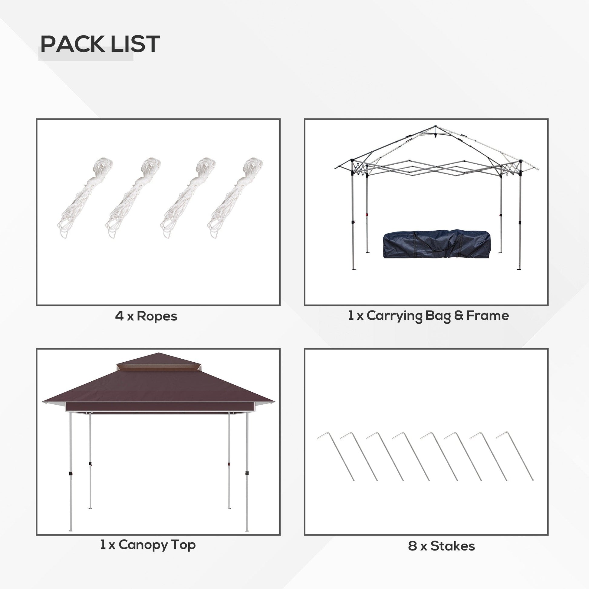 Montez, dépliez et dépliez facilement avec Outsunny. Cet auvent instantané se monte rapidement et offre une protection solaire spacieuse. Les parois latérales en maille respirante offrent un espace confortable pour s'asseoir. Le dessus ventilé de notre tente de réception pliable est également équipé d'un filet, qui, associé aux cordes et aux piquets de soutien, assure une structure plus stable et résiste mieux au vent. Une fois le montage terminé, dépliez la tente et repartez avec le sac de transport inclus.