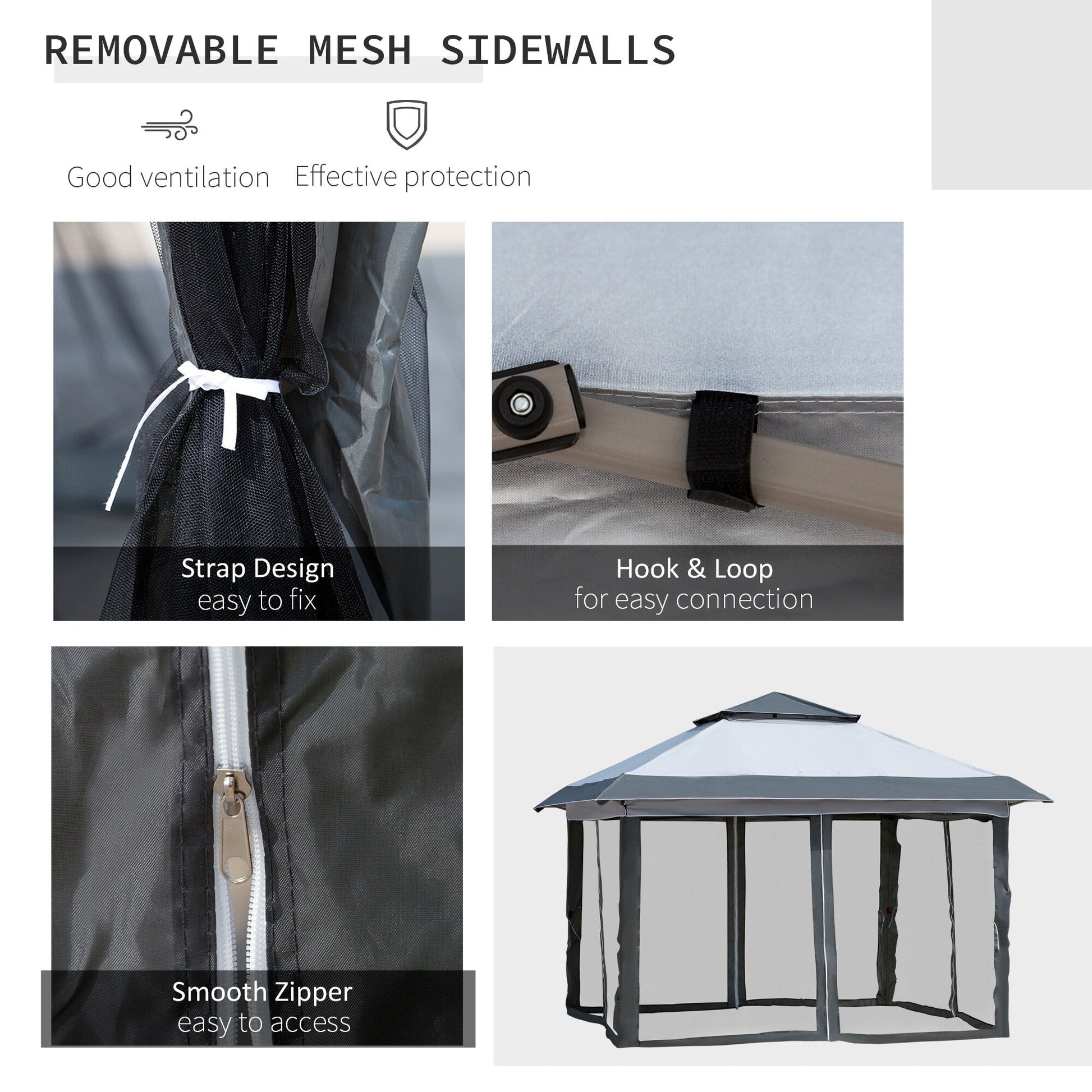 Outsunny 12' x 12' Pop Up Canopy Sun Shade Tente instantanée pliable avec filet latéral en maille, hauteur réglable sur 3 niveaux