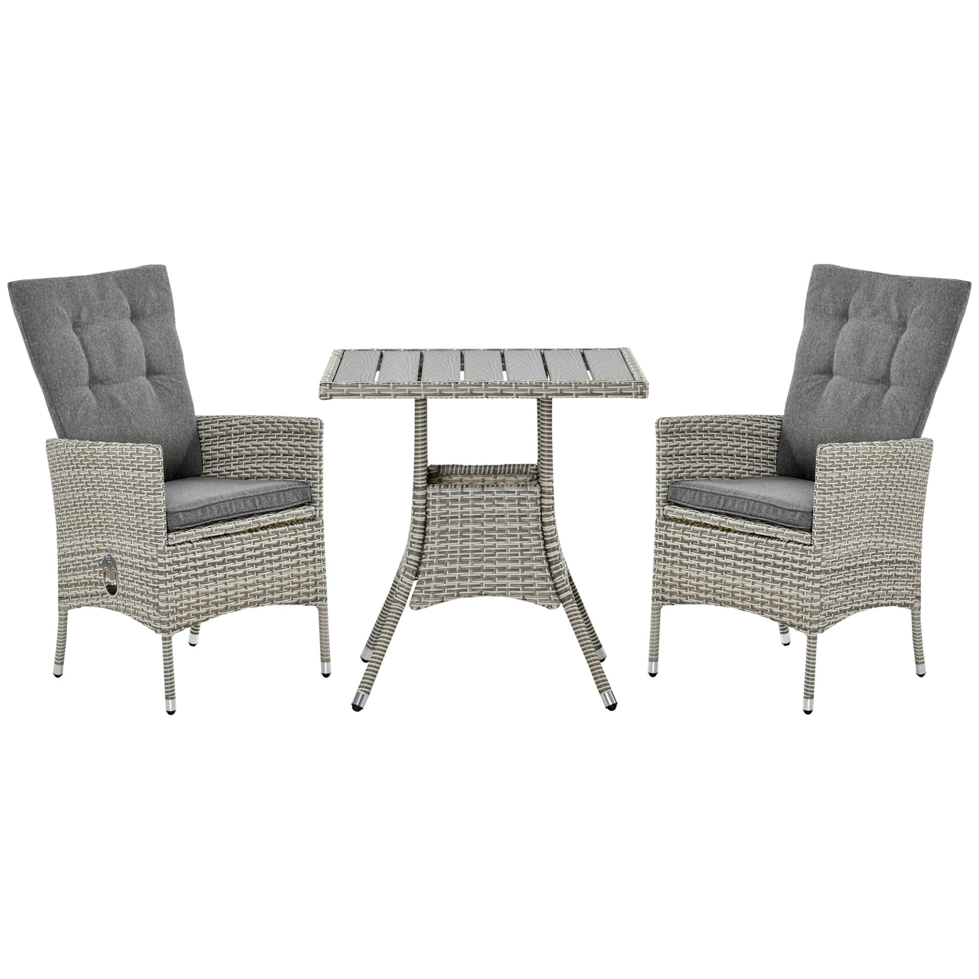 Ensemble de 3 canapés de patio Outsunny en rotin synthétique, chaises inclinables d'extérieur, table basse avec plateau en plastique grain de bois