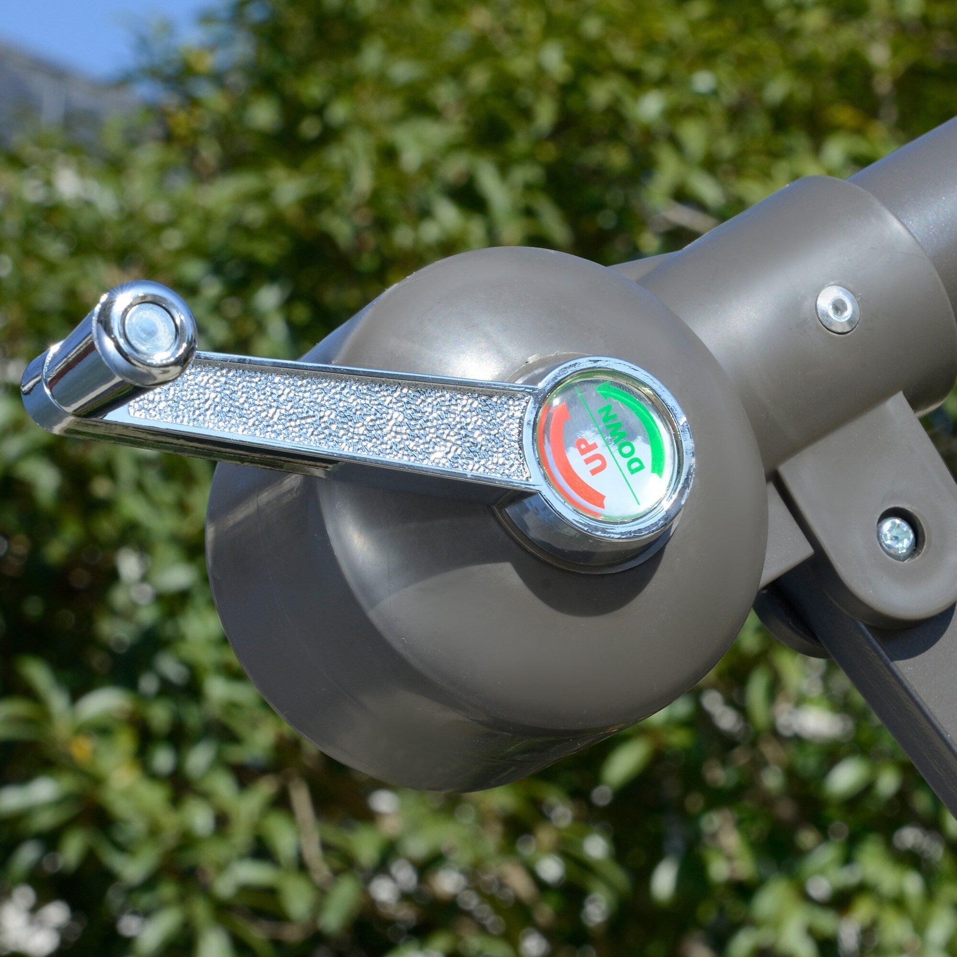 Parasol déporté Outsunny 9' à 2 niveaux avec manivelle, base en croix et 8 baleines, pour jardin et terrasse.