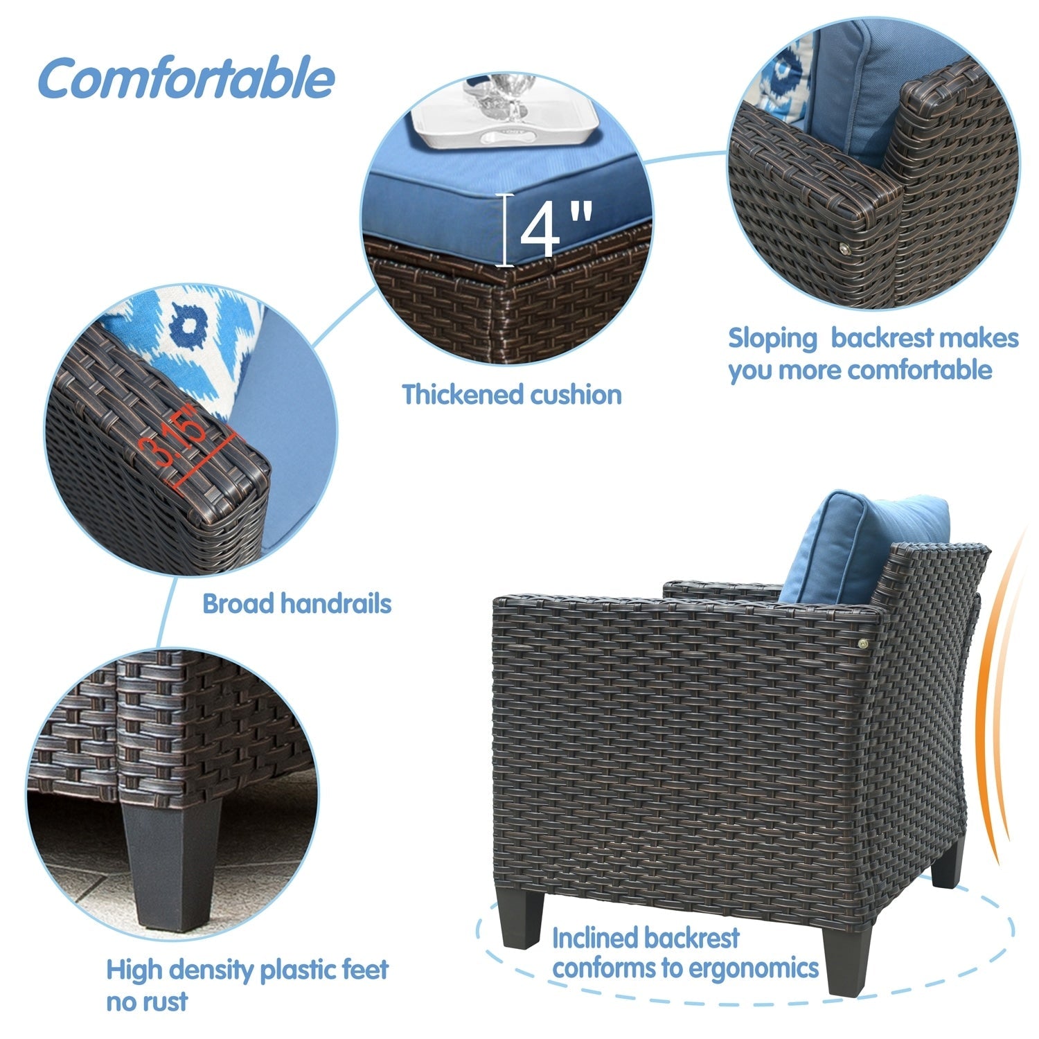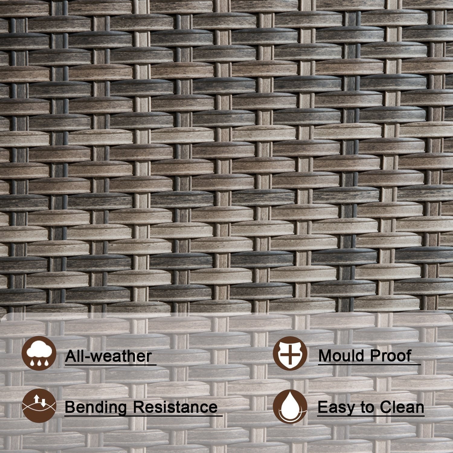 - Conception en osier durable : Sa construction robuste et résistante aux intempéries garantit une longue durée de vie, une résistance à la décoloration et aux intempéries. Cet ensemble est conçu pour résister aux conditions extérieures pendant des années.