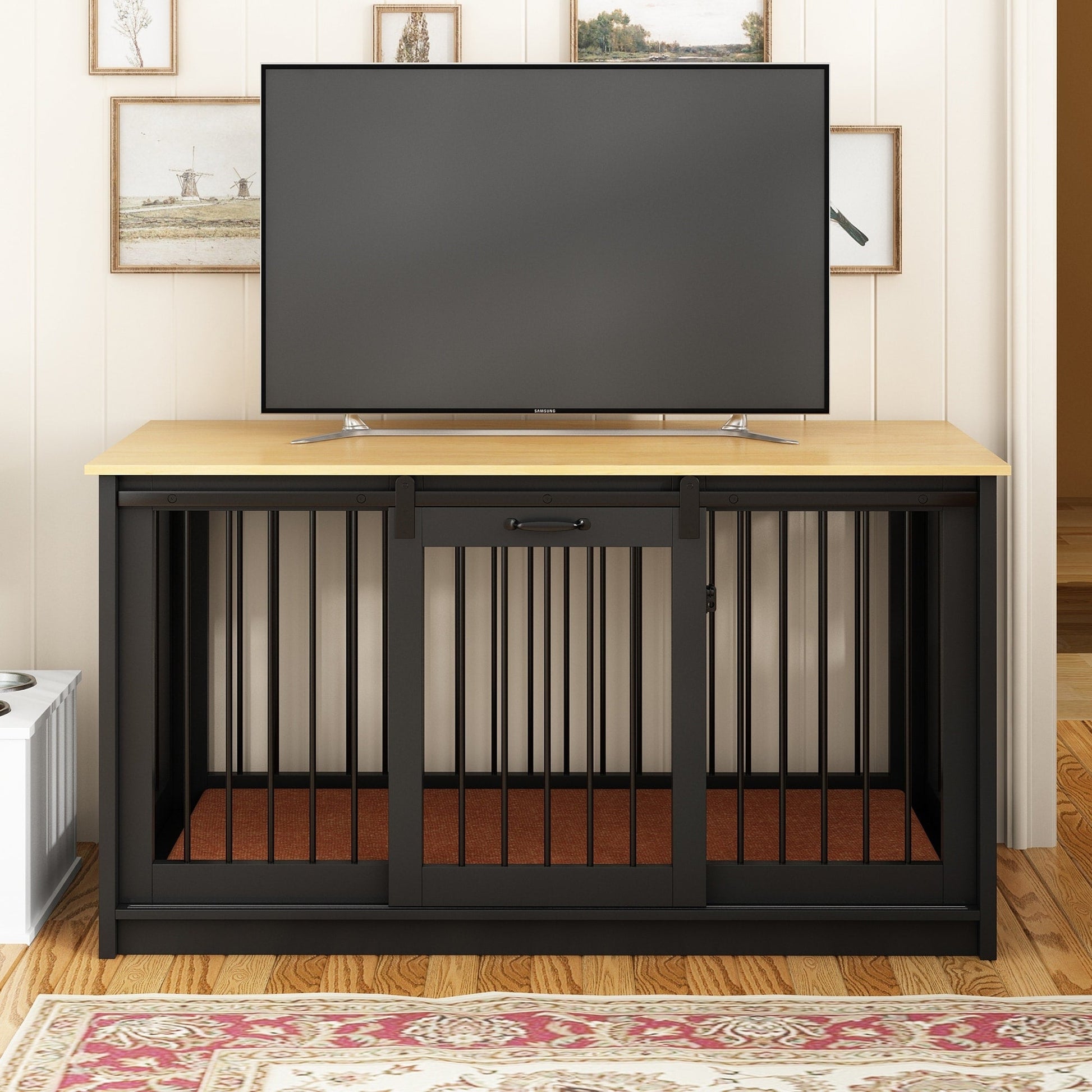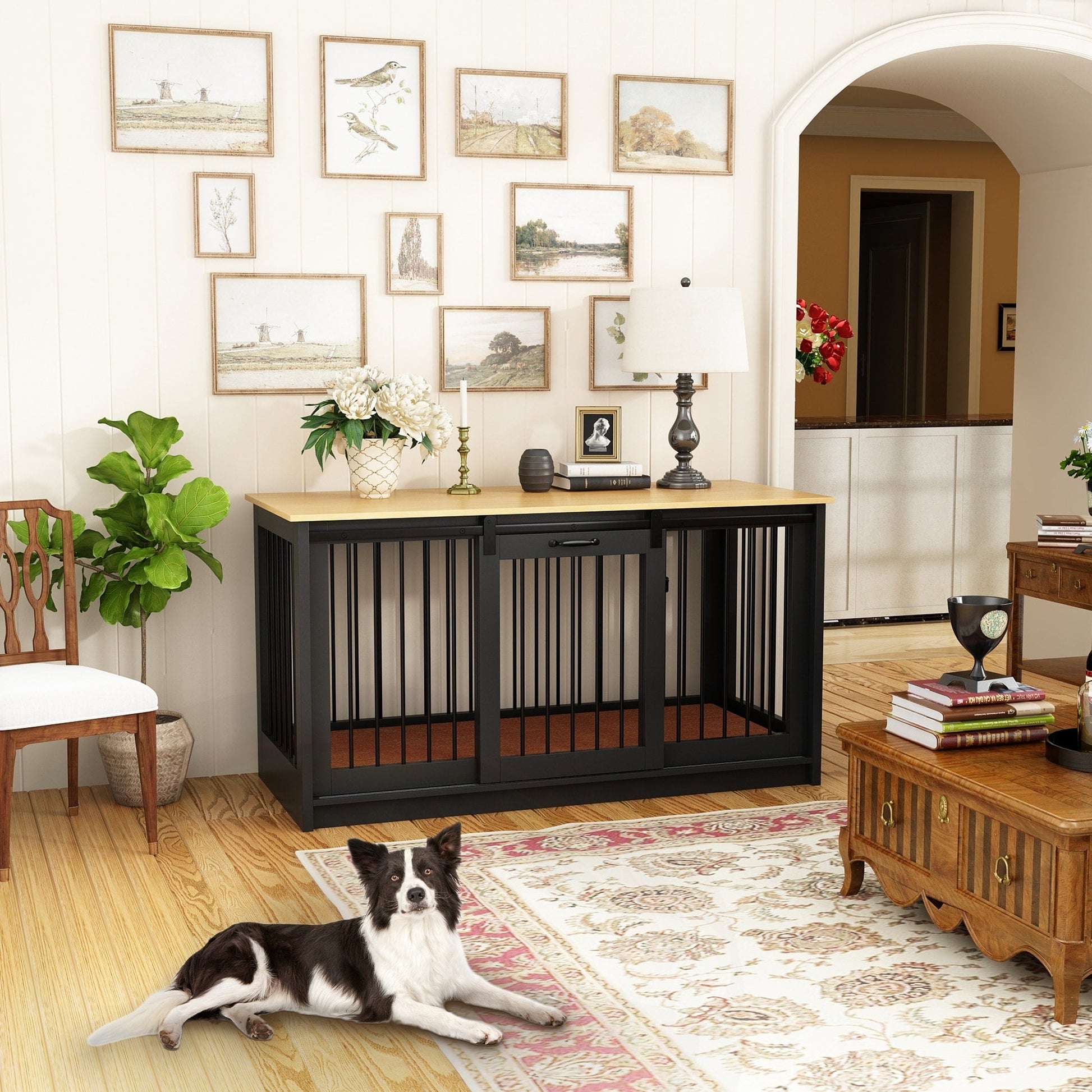 Surface de table élégante : le dessus de la cage offre un espace généreux pour les accessoires ou les souvenirs de votre chien, transformant la cage en un meuble fonctionnel qui met en valeur la personnalité de votre animal.