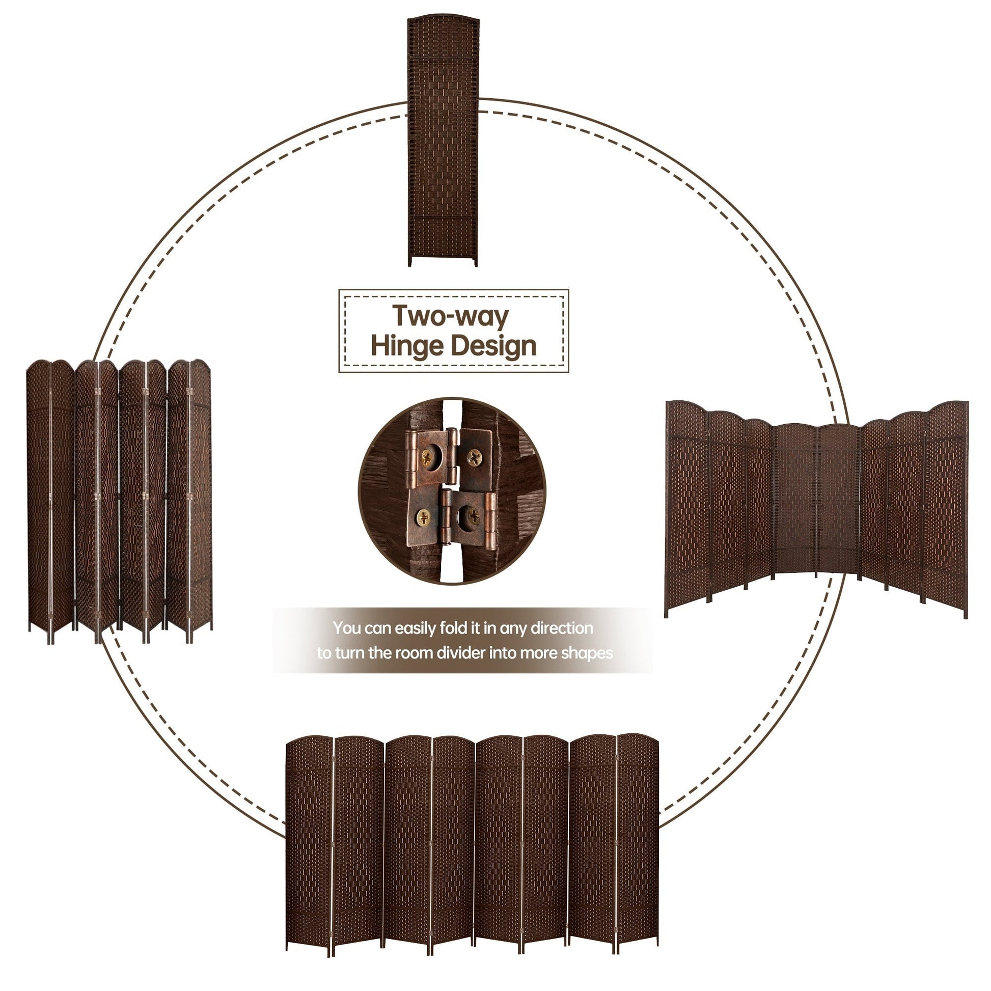 Paravent de séparation de pièce de 6 pieds de haut en fibre tissée, écran de confidentialité autoportant, écran pliant
