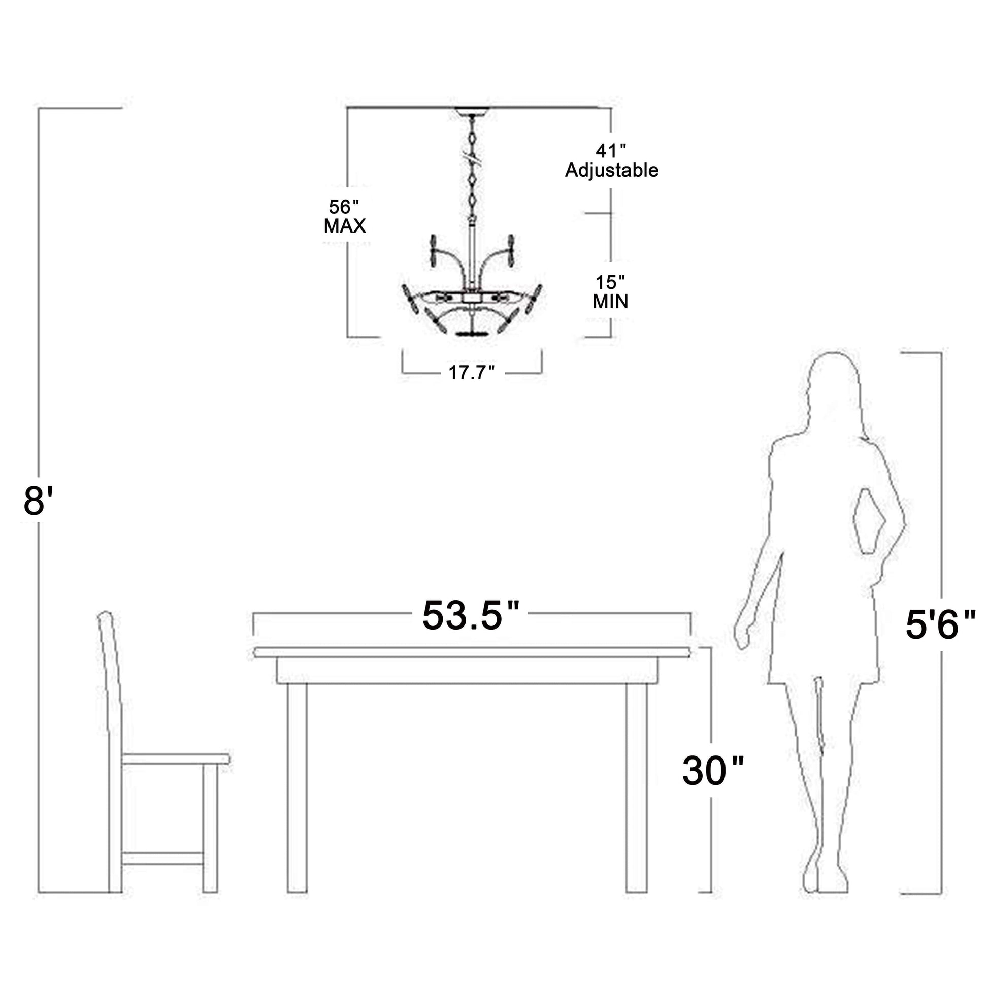 - Hauteur de suspension maximale (du plafond au bas du luminaire) : 56 pouces, qui peut être raccourcie.